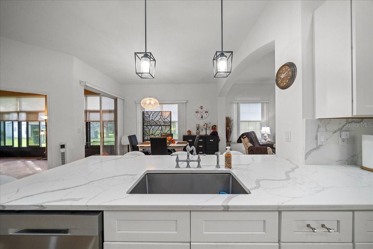 Welcome to the popular Grand Cypress floor plan, featuring incredible upgrades throughout! This beautiful 3-Bedroom, 2-Bath home will wow you the moment you arrive with its freshly painted exterior, brand-new roof (2021), updated exterior lighting, and refreshed landscaping. Step inside to find a bright, open-concept living space—perfect for entertaining family and friends. The living room boasts a custom shiplap fireplace with a new 50" TV, and the main living areas feature waterproof luxury vinyl plank flooring (2021). The entire interior was freshly painted in 2021, giving the home a modern, cohesive look. The kitchen makeover is stunning, showcasing solid wood soft-close cabinetry, quartz countertops and backsplash, and brand-new stainless steel appliances (2021)—including a stove with a built-in air fryer! An entertainer’s bar area adds even more appeal, complete with ample storage, a new wine fridge, and another 50" TV. The spacious master suite features high ceilings and an impressive en suite bath with a new quartz-topped vanity, updated plumbing fixtures, and custom mirrors. The second bathroom also shines with new tile flooring, a quartz vanity, custom mirror, and sliding glass shower doors. Enjoy year-round relaxation in your enclosed lanai with glass sliders, or step out to the new 10x25 aluminum birdcage (2023) with a concrete slab, aluminum roof, and a 4-person hot tub—ideal for unwinding at the end of the day. Additional upgrades include a brand-new HVAC system (2024) for comfort and peace of mind. Located in The Plantation, you’ll love the resort-style amenities: three clubhouses, heated pools, bocce ball, pickleball, tennis, horseshoes, two full-size golf courses, and an on-site restaurant. HOA fees: Main HOA: $165/month , Glendale community: $310/quarter (includes weekly lawn maintenance)