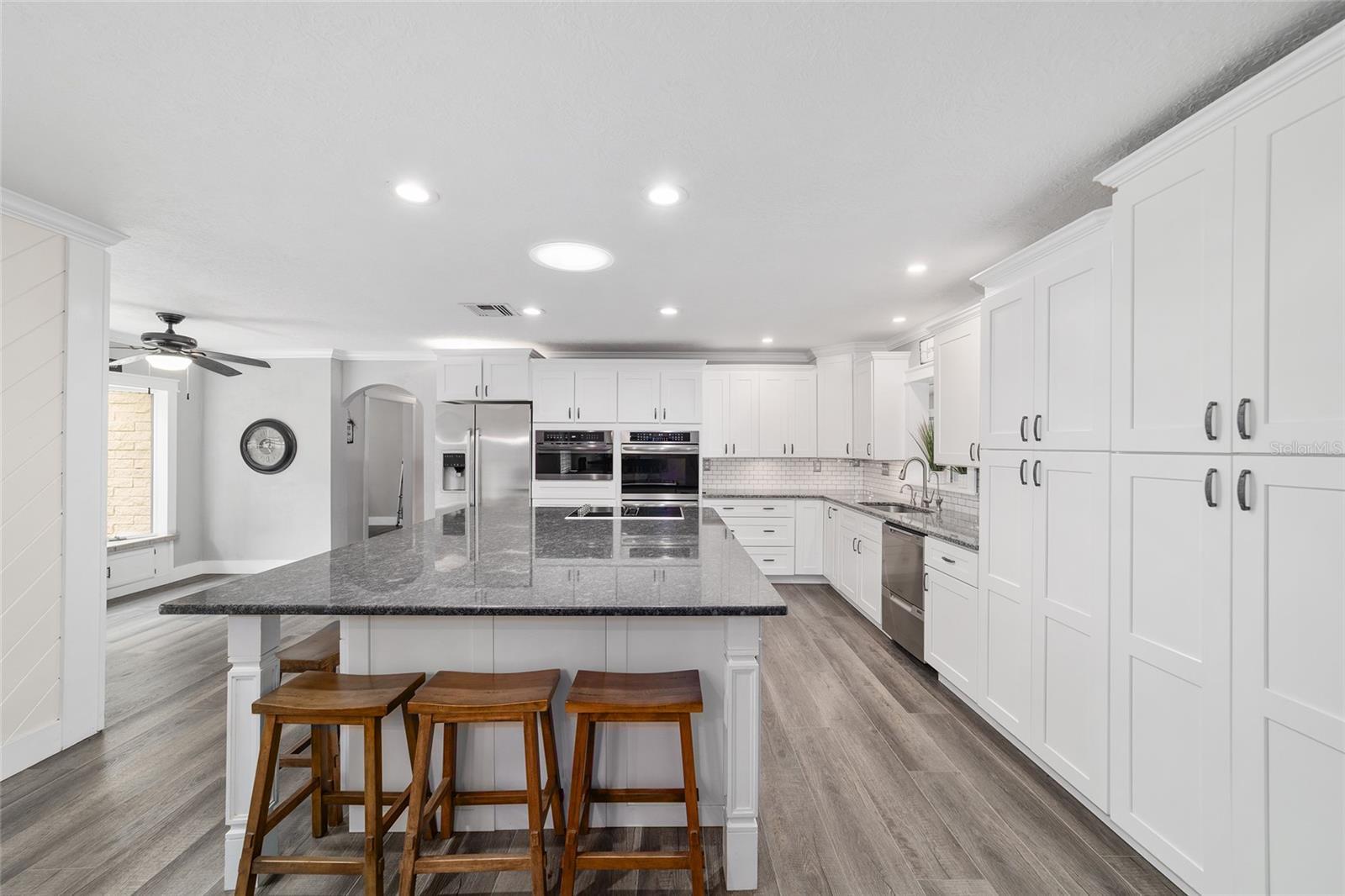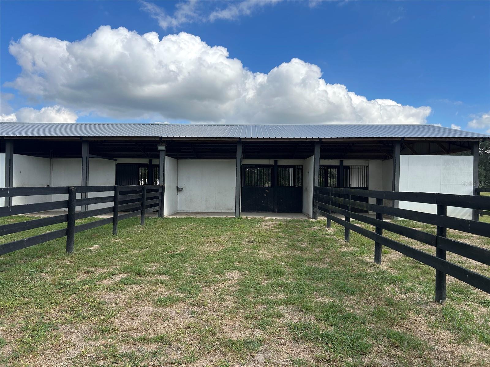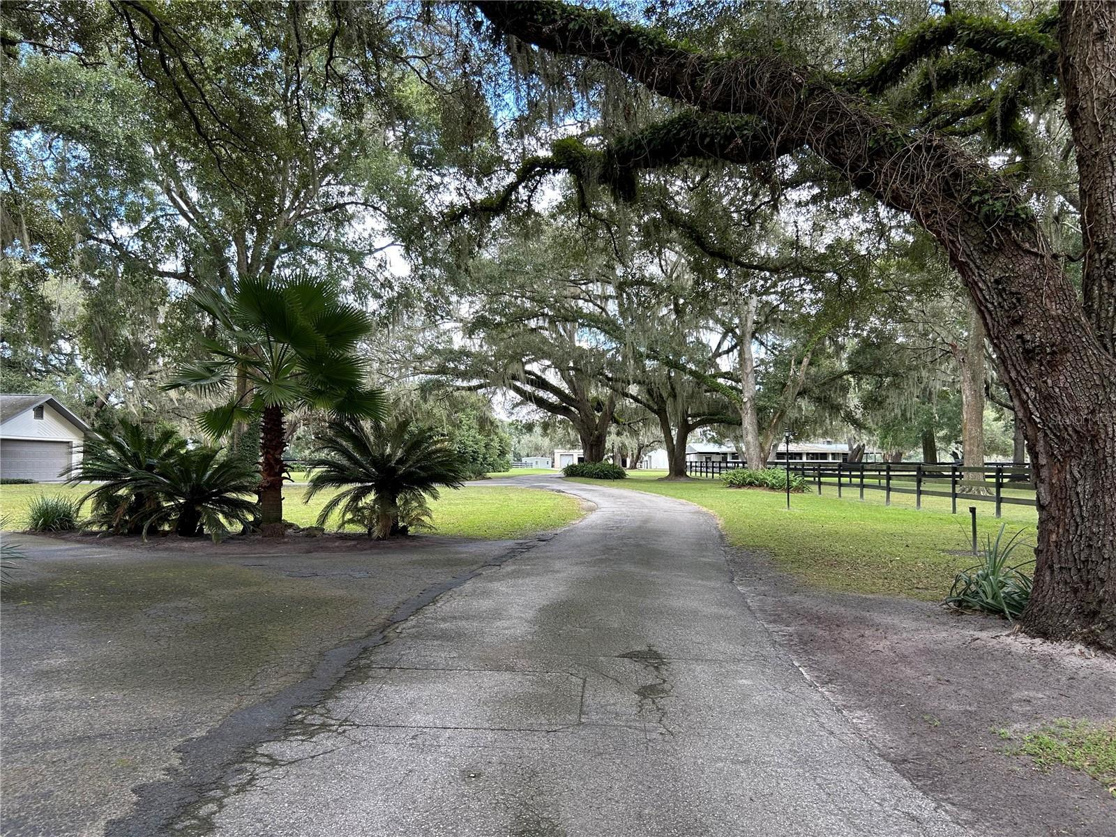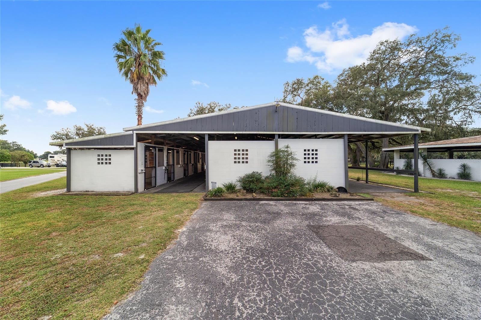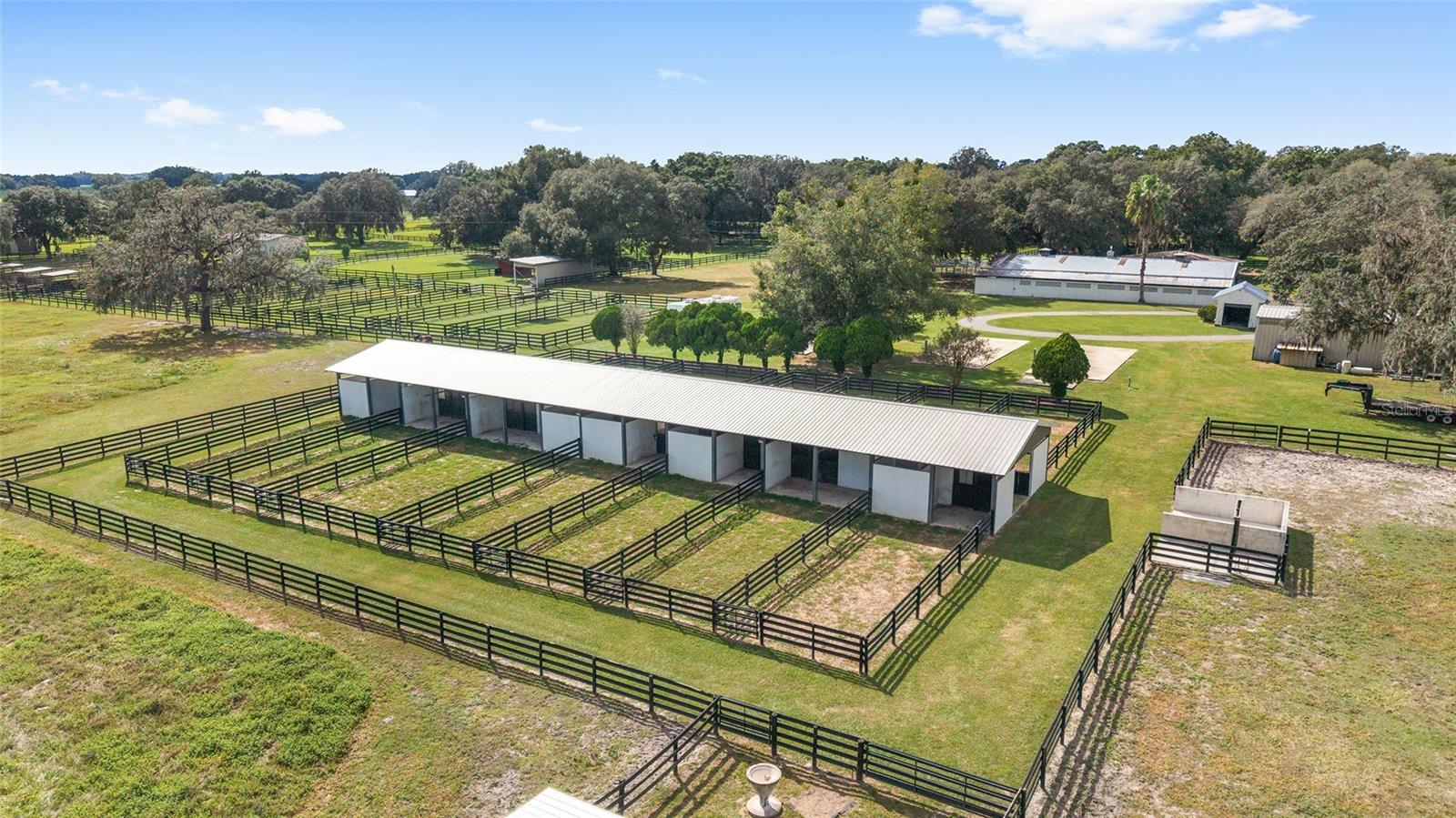 ‘Tis the Season for the Perfect Farm! If you’ve been searching for an absolutely stunning Training, Boarding, or Homestead Farm. THIS IS IT! As you enter through the gated entrance, you’ll be greeted by 27.4 acres of prime pastureland dotted with majestic granddaddy oaks. The paved driveway winds its way to a charming three-bedroom, three-bath pool home, gracefully set among mature trees and beautifully irrigated landscaping with a circular drive. This well-maintained home features a New HVAC heat pump (2024), luxury vinyl plank flooring throughout (with porcelain tile in two bedrooms) and countless thoughtful upgrades. Step inside through the garage into the laundry/mudroom—a perfect spot to leave those barn boots behind. Sliding barn doors lead into the gourmet kitchen, complete with granite countertops, a massive 6' x 8' center island with electric downdraft cooktop, double wall ovens, custom wood cabinetry, pantry, and pull-out drawers. Enjoy your morning coffee in the cozy breakfast nook with bay window or the dining room with a dedicated coffee station. The great room showcases a stone fireplace and Cypress wood beams, while the office/den features a large picture window overlooking the scenic grounds. The primary suite offers sliding doors to the pool, a spacious walk-in closet, and an en suite bath with dual solid-surface sinks, water closet, and a walk-in shower. The two guest bedrooms are generous in size; one features a pocket door connecting to a full bath with granite counters. The Florida room opens to the extended lanai and heated saltwater pool, with a third full bath conveniently located nearby. ADDITIONAL HOME HIGHLIGHTS INCLUDE: :Kinetico water treatment system with reverse osmosis :New pool pump (2025) :New HVAC heat pump (2024) :New Roof (2018.) :EQUINE FACILITIES. Equestrians will love the exceptional amenities this property provides. :Main Barn (16 stalls.) :Concrete block center-aisle design. :16 matted 12x12 stalls with automatic waterers, electric, fans, and fly spray system, Feed room, tack room, office, bathroom, washer/dryer, and hay storage. :Second Barn (14 stalls). Includes run-ins for added horse comfort. PROPERTY FEATURES: Total of 30 stalls, ,6 small paddocks ,8 large paddocks ,4 extra-large fields. :Lighted outdoor arena. :Exerciser-(horse walker.) :Covered 50-ft concrete block irrigated round pen. :4 RV hookups (20x50 concrete slabs, 30 & 50 amp, water & sewer.) :6 additional RV hookups (30 amp, water & sewer.) :5 septic systems with drain fields. :Majority of fencing has been replaced and repainted within last 3 years. :Three-bay steel building with roll-up doors and workshop area. :Well house and equipment shed. :Automatic waterers in all paddocks. This property truly offers everything you need for a successful equine operation, private retreat, or country estate — all nestled under the timeless beauty of Florida’s oak canopy. This is a must see!!