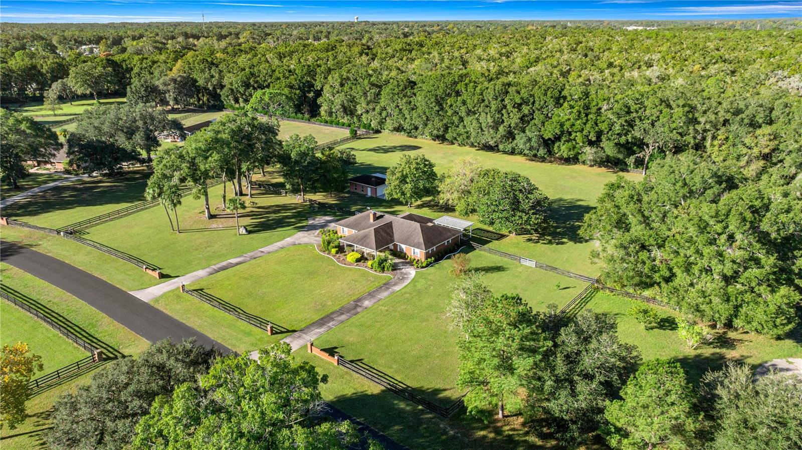 Beautiful COUNTRYSIDE FARMS OF OCALA, a wonderful Equine Community, just off Hwy 200. This mini-farm of 3.41 acres, fenced, featuring a brick house of 2,190 sq ft and a detached 2 cars garage/workshop. Just 20 minutes from WEC-World Equestrian Center and 20 minutes to Historic Downtown Ocala, this location is privileged. As you get to the property you'll appreciate the circular driveway, the front lawn, the garden and the very convenient drive thru front porch. The house is kept in an excellent condition: custom working wood burning fireplace with built in bookcases, ceramic tiles thru out living spaces and carpet only in the 3 bedrooms, crown molding and great finishes, all new LED lighting, screened Florida room/rear porch with hurricane shutters, a pergola and 2 cars garage. Roof May 2011, Carrier A/C-heat pump August 2021, Electric Water Heater 2024, Washer & Dryer 2021, Dishwasher 2021.