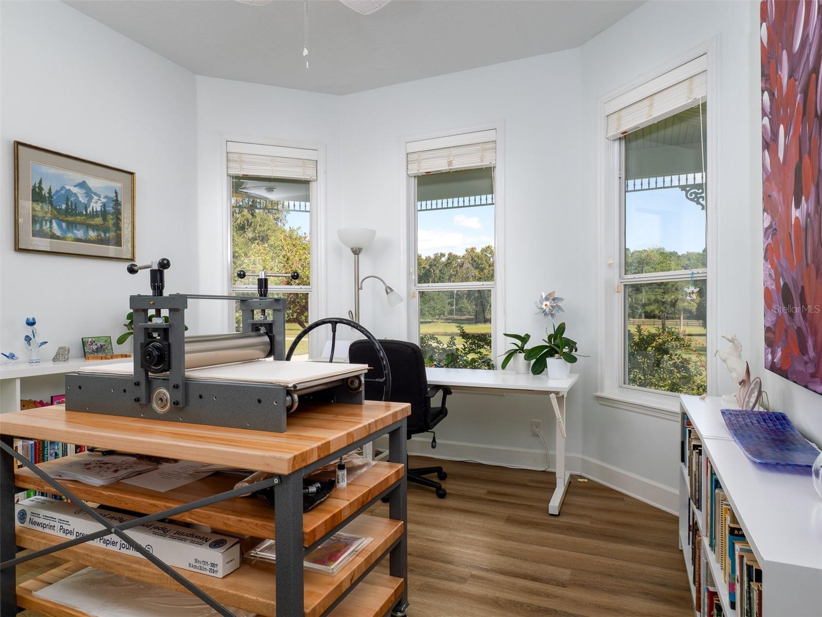 - Ceiling Fans(s), Crown Molding, Eat-in Kitchen, High Ceilings, Kitchen/Family Room Combo, Open Floorplan, PrimaryBedroom Upstairs, Solid Wood Cabinets, Stone Counters, Thermostat, Walk-In Closet(s), Window Treatments