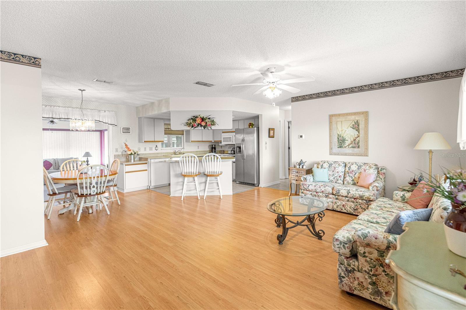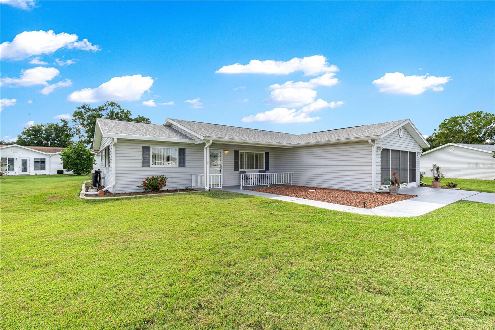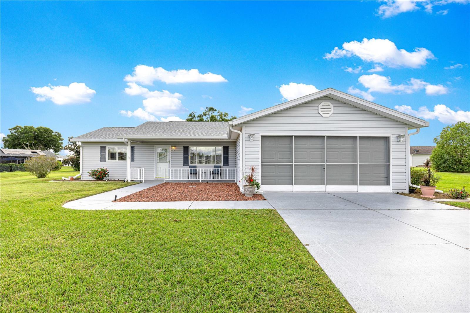 Welcome home to this immaculately maintained and sparkling clean expanded Chestnut II floor plan, perfectly situated in the highly sought-after 55-plus golf cart community of Spruce Creek South in the heart of Summerfield, Florida—just minutes from The Villages, shopping, dining, and medical facilities. From the moment you arrive, you’ll appreciate the excellent curb appeal. A welcoming front porch invites you to relax and enjoy your morning coffee or evening conversation with neighbors. The beautifully maintained exterior reflects true pride of ownership, complemented by, low-maintenance landscaping and a convenient deeper driveway. Step inside to find a bright, open floor plan designed for both comfort and entertaining. The living and dining areas flow seamlessly together, creating a spacious atmosphere filled with natural light. The kitchen features a breakfast bar, perfect for casual meals or social gatherings, and opens directly to the main living area for an easy, connected feel. This home offers two living spaces, including a heated and cooled Florida room—ideal for use as a second family room, office, or hobby space. Just beyond, you’ll find an additional enclosed Lanai, offering a tranquil spot to unwind or enjoy indoor-outdoor living year-round. The primary suite is generously sized with a large walk-in closet and a private en-suite bath, providing a relaxing retreat at the end of the day. The guest bedroom and full hall bath are perfect for visitors, offering privacy and comfort. Practicality meets peace of mind with a long list of recent updates, including a new roof (2022), HVAC system (2024), water heater (2025), electrical panel (2025), and a septic system pumped and inspected in 2024. There’s also a whole-house water purifier system, and the indoor laundry room includes a utility sink and extra cabinetry for added storage. The turnkey option means, this home can be move-in ready, allowing you to start enjoying the Spruce Creek South lifestyle immediately—complete with golf, community pool, fitness room, social clubs, and endless activities. This lovingly cared-for home combines thoughtful updates, a versatile floor plan, and inviting spaces both inside and out. Don’t miss your chance to make it yours! PROFESSIONAL PHOTOS COMING SOON!