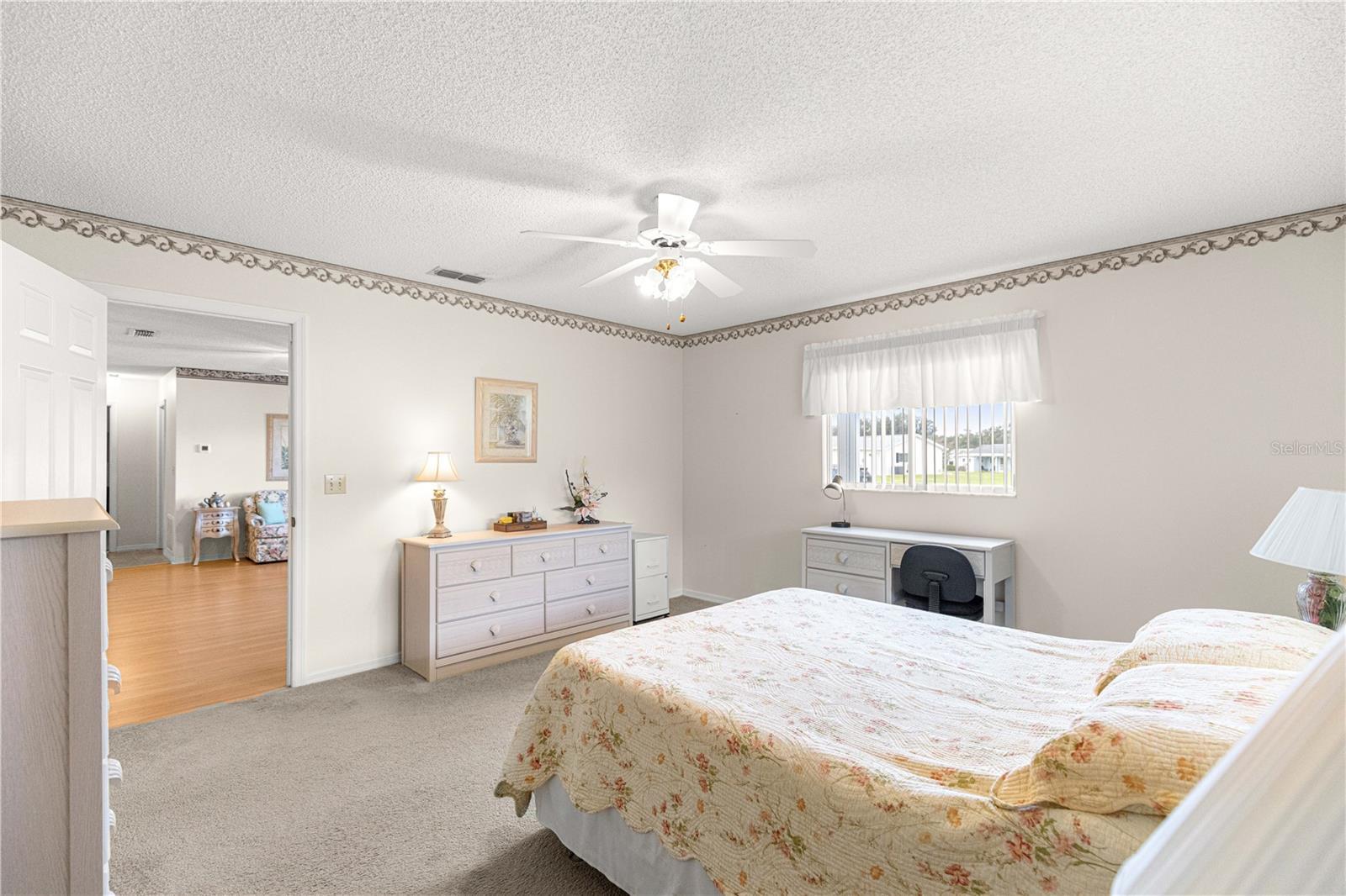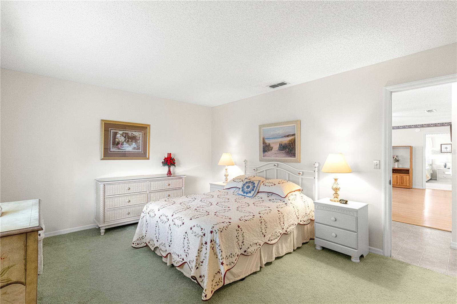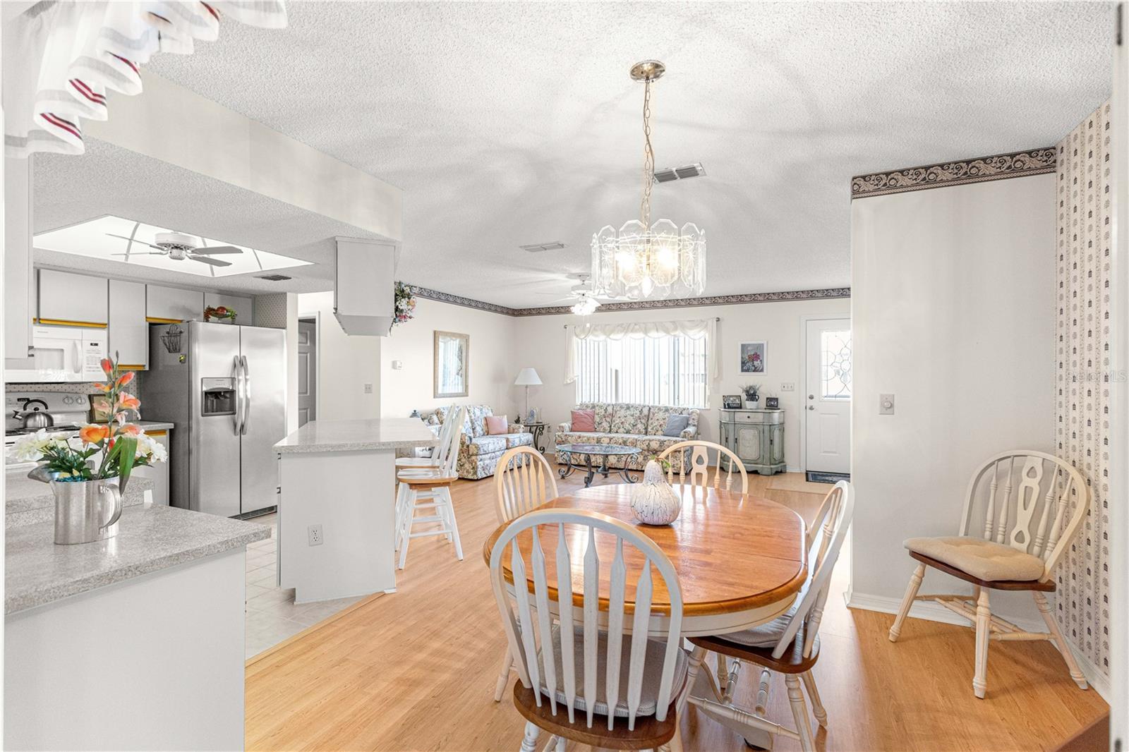Welcome home to this immaculately maintained and sparkling clean expanded Chestnut II floor plan, perfectly situated in the highly sought-after 55-plus golf cart community of Spruce Creek South in the heart of Summerfield, Florida—just minutes from The Villages, shopping, dining, and medical facilities. From the moment you arrive, you’ll appreciate the excellent curb appeal. A welcoming front porch invites you to relax and enjoy your morning coffee or evening conversation with neighbors. The beautifully maintained exterior reflects true pride of ownership, complemented by, low-maintenance landscaping and a convenient deeper driveway. Step inside to find a bright, open floor plan designed for both comfort and entertaining. The living and dining areas flow seamlessly together, creating a spacious atmosphere filled with natural light. The kitchen features a breakfast bar, perfect for casual meals or social gatherings, and opens directly to the main living area for an easy, connected feel. This home offers two living spaces, including a heated and cooled Florida room—ideal for use as a second family room, office, or hobby space. Just beyond, you’ll find an additional enclosed Lanai, offering a tranquil spot to unwind or enjoy indoor-outdoor living year-round. The primary suite is generously sized with a large walk-in closet and a private en-suite bath, providing a relaxing retreat at the end of the day. The guest bedroom and full hall bath are perfect for visitors, offering privacy and comfort. Practicality meets peace of mind with a long list of recent updates, including a new roof (2022), HVAC system (2024), water heater (2025), electrical panel (2025), and a septic system pumped and inspected in 2024. There’s also a whole-house water purifier system, and the indoor laundry room includes a utility sink and extra cabinetry for added storage. The turnkey option means, this home can be move-in ready, allowing you to start enjoying the Spruce Creek South lifestyle immediately—complete with golf, community pool, fitness room, social clubs, and endless activities. This lovingly cared-for home combines thoughtful updates, a versatile floor plan, and inviting spaces both inside and out. Don’t miss your chance to make it yours! PROFESSIONAL PHOTOS COMING SOON!