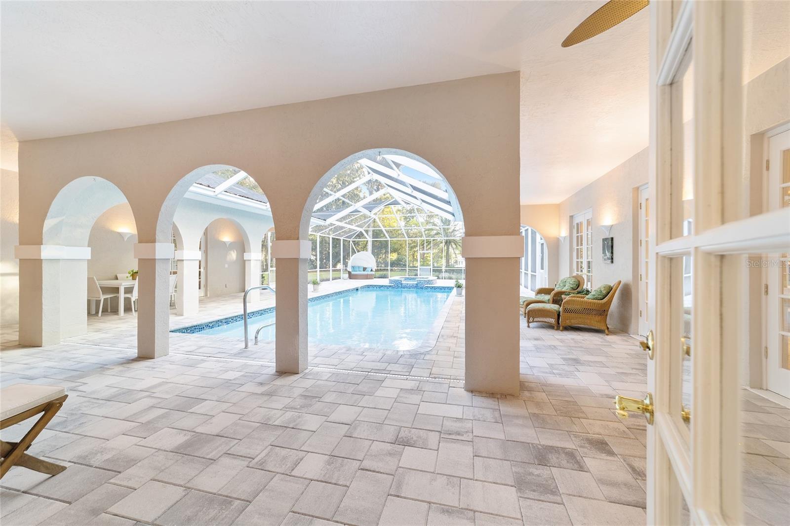 Welcome to this beautifully updated 4 bedroom, 3 bath home in the Country Club of Ocala, which backs up to a peaceful farm offering plenty of privacy. From the moment you pull up, you’ll notice all the care that’s gone into it — fresh exterior paint, new shutters and new pavers that lead from the driveway to the front porch. The backyard is truly the highlight, with a sparkling refinished pool surrounded by new pavers, plenty of covered space to sit and unwind and soft lighting from wall lanterns and ceiling fans that make evenings outside extra cozy. Inside, the home feels warm and welcoming with fresh paint, new blinds and thoughtful touches throughout. The kitchen has been completely updated with new stainless steel appliances (added in 2024), a farmhouse sink, new cabinet doors with stylish hardware, and two glass front cabinets that add just the right amount of charm. The family room and dining room flow together seamlessly, creating one large, open space with cathedral ceilings that make the home feel bright and airy. A wood-burning fireplace sits beautifully between the two areas and has a comfortable sitting area in front of it. The master suite feels like your own little retreat, featuring a gorgeous remodeled bathroom with a brand new shower with new tile, new double vanity, shiplap walls and an added transom window that brings in natural light. Home has split bedroom plan with one bedroom having its own bath and the other 2 bedrooms sharing a jack and bill bath. Both guest bathrooms have also been updated with new tiled showers and modern fixtures, so everything feels fresh and new. Even the practical details have been taken care of: the roof was replaced in 2023, the air conditioning system (including a mini split in the garage) and both water heaters were replaced in 2024 and the 3 car garage now has ceramic tile flooring. Every corner of this home has been given attention, and it truly shows. It’s beautiful, comfortable, and completely move-in ready — a place where you can settle in and start enjoying the good life in one of Ocala’s most desirable communities.