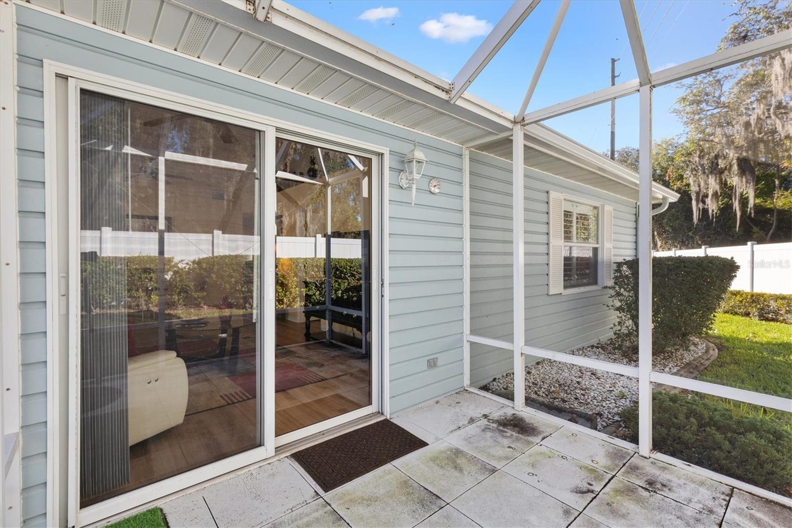 This MAINTENANCE FREE villa is being offered TURNKEY (everything inside) and is one of the largest models available, featuring 1,359 square feet of comfortable living space. The home offers an oversized 1.5 car garage with plenty of room for a vehicle, golf cart, and extra storage. Enjoy your own private outdoor retreat with an 8x9 BIRDCAGE perfect for morning coffee or evening relaxation. Step inside to a spacious eat-in kitchen with TILE flooring, updated countertops, and modern STAINLESS STEEL appliances. The vaulted ceilings in the living and dining areas create a light and airy feel, accented by a decorative plant and display shelf built into the wall. ROOF and HVAC were replaced in 2014. Located in the Beautiful SPRUCE CREEK SOUTH 55+ Gated Golf Community, adjacent to The Villages, Florida, this home offers a perfect blend of comfort, convenience, and active living. Residents enjoy an abundance of amenities, including a heated community pool, and countless social and recreational activities, all within a welcoming, resort-style setting where every day feels like a holiday. Best of all, this is truly maintenance-free living! Your lawn care, shrub and tree trimming, irrigation system maintenance, and trash removal are all included in the monthly association fee, allowing you to spend more time enjoying the Florida lifestyle you deserve. Villas like this rarely become available—and when they do, they sell quickly!