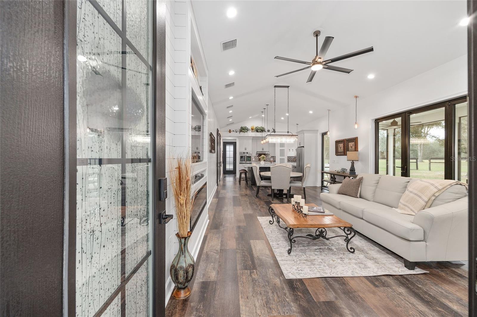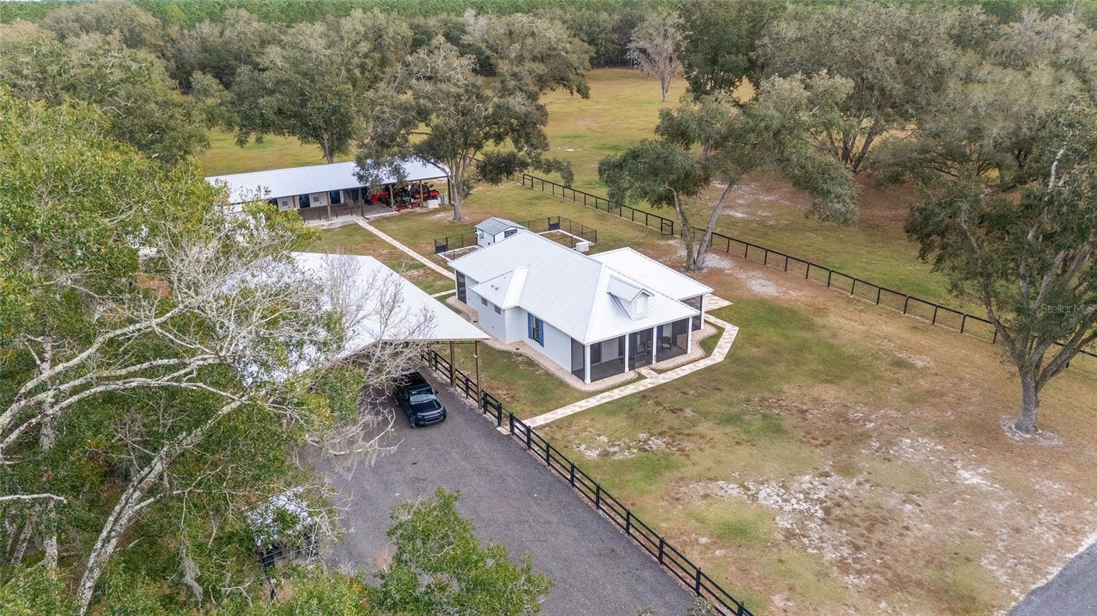 Exceptional 20+ acre luxury farm estate offered as two seperately deeded 10.118-acre AG1 Code 8 parcels sold togeher, providing rare flexibility to build up to three additional residences. Ideal for a luxury equestrian estate, training facility, a multigenerational compound, AirB&B, SniffSpot, investment opportunity, or future resale of one parcel. No HOA and no deed restrictions (all details to be verified by buyer with Marion County). Privately tucked beneath a professionally maintained oak canopy, the property features direct gated access to Ross Prairie State Forest, with miles of protected, non-motorized horseback riding trails connecting directly to the Marjorie Harris Carr Greenway-an unmatched location for equestrians and outdoor enthusiasts. The 2023 custom Southern Living-style concrete block residence showcases timeless design and high-end finishes throughout, including 10-14 ft. ceilings, 8 ft. doors, custom cabinetry leathered double thickness chiseled edge dolomite counters, Cafe' appliances, and luxury LVP flooring. A 12 ft. Nanawall bi-fold door opens the living space to one of three tiled, fanned, screened porches, creating seamless indoor/outdoor living. The primary suite offers a spa-like bath with soaking tub, full-body shower jets, and glass block windows. The second bath also includes full-body shower jets, custom cabinety and glass block windows. Energy efficiency is enhanced by an ultra-quiet Trane mega-split HVAC system with whole-house electrostatic air cleaner. Equestrian amenities include a 40 x 80 concrete block barn with three stalls, automatic waterers, hot/cold wash, insect misters, high-volume fans, sand runs, and a climate-controlled 40 x 12 foot tack room with a utility sink and washer/dryer hookups. Two full 50A RV hookups and two partial hookups under the 40 x 60 foot, 14' high RV/car/boat cover make recreation easy. A fifth power/water RV hookup is nestled behind the barn. A 20 x 12 foot workshop/storage shed and a 40' high cube storage container - both with electrical power - provide ample storage and workshop capacity. Full perimeter fencing, underground utilities, whole property water treatment, a reverse osmosis system and two independent 26k W generator back up systems with an owned 1,000 gallon propane tank complete this truly exceptional offering. All information/measurements pulled from County records.