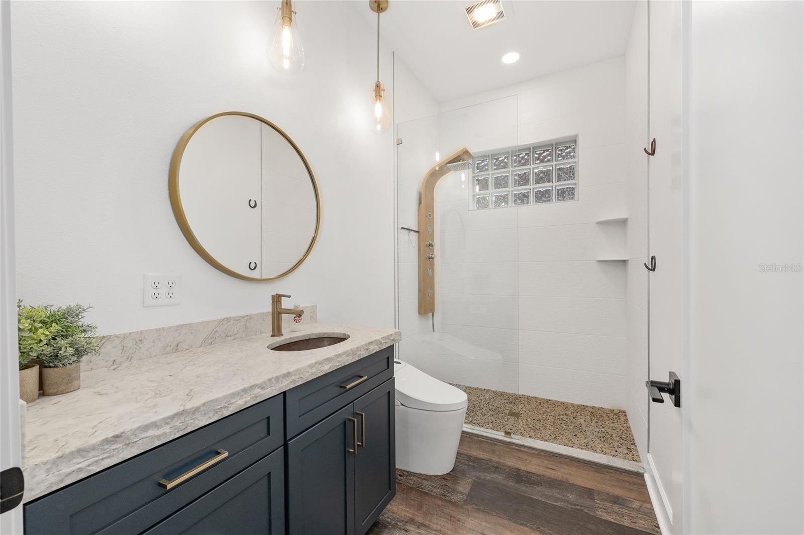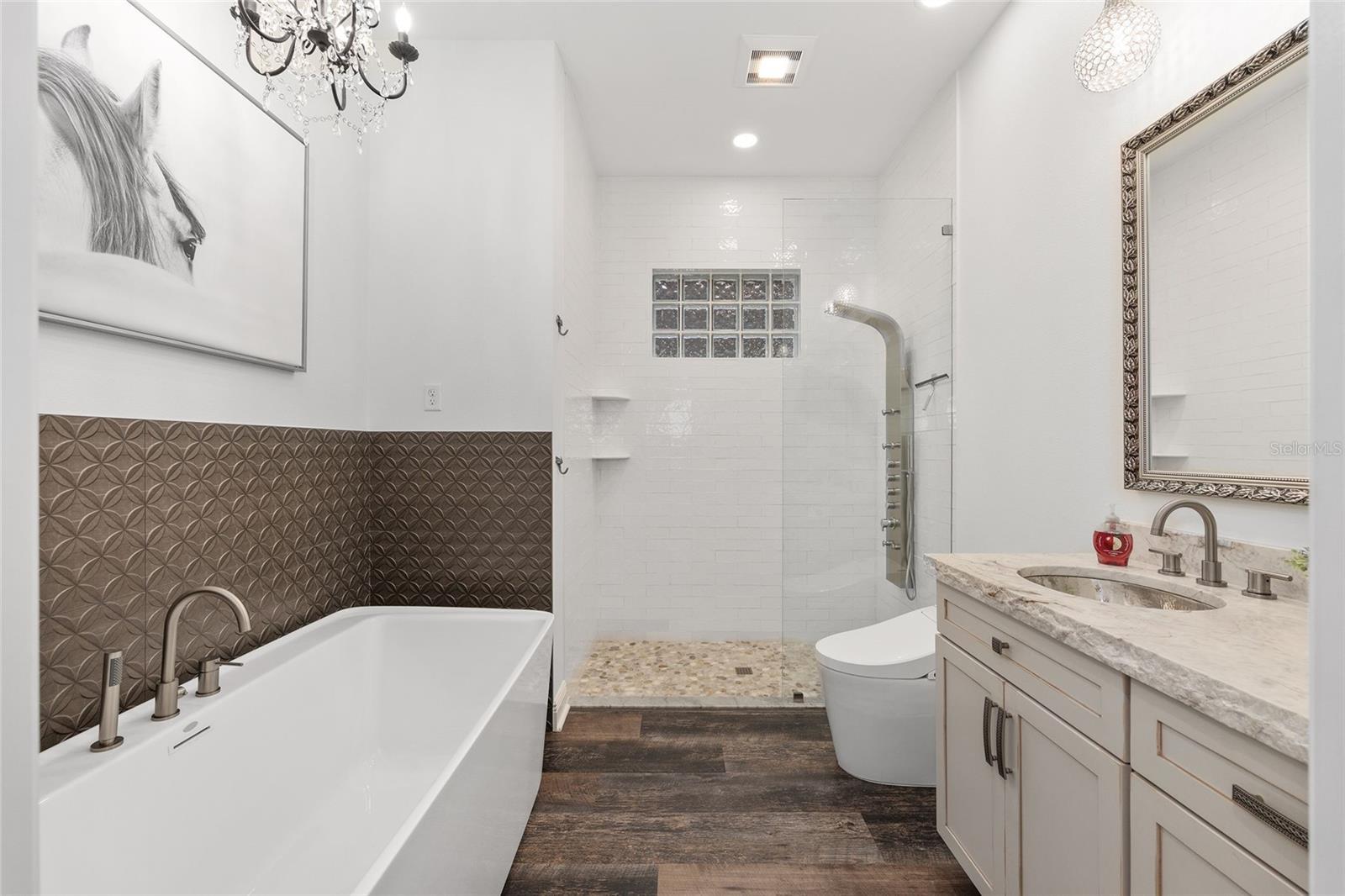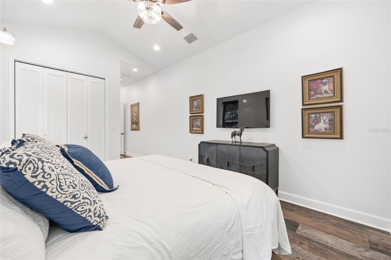 - Built-in Features, Ceiling Fans(s), Eat-in Kitchen, High Ceilings, Kitchen/Family Room Combo, Primary Bedroom Main Floor, Split Bedroom, Stone Counters, Thermostat, Vaulted Ceiling(s)