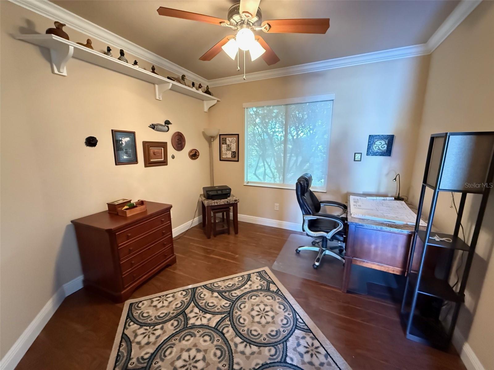 - Ceiling Fans(s), Crown Molding, Eat-in Kitchen, Living Room/Dining Room Combo, Open Floorplan, Primary Bedroom Main Floor, Solid Surface Counters, Walk-In Closet(s), Window Treatments