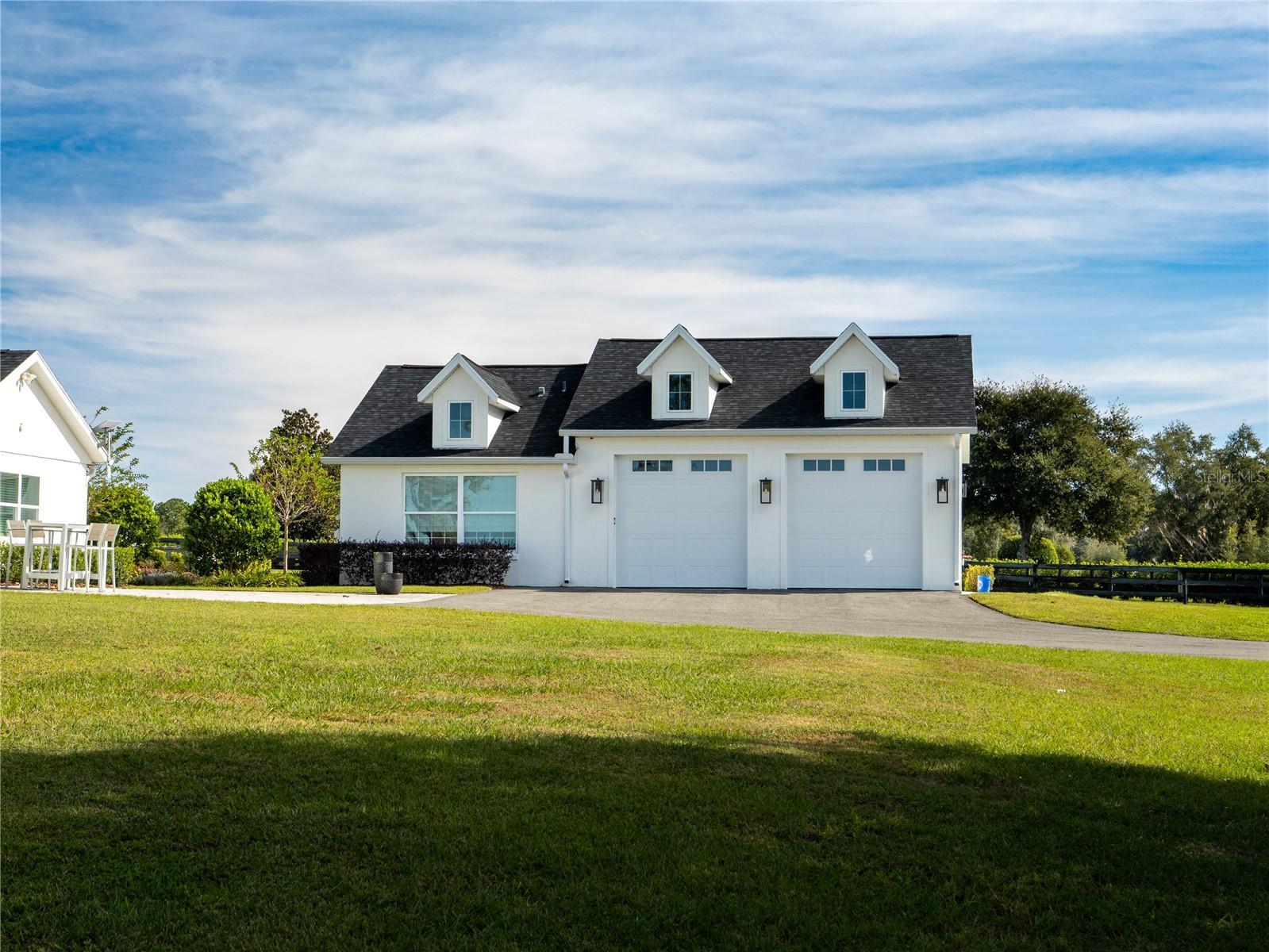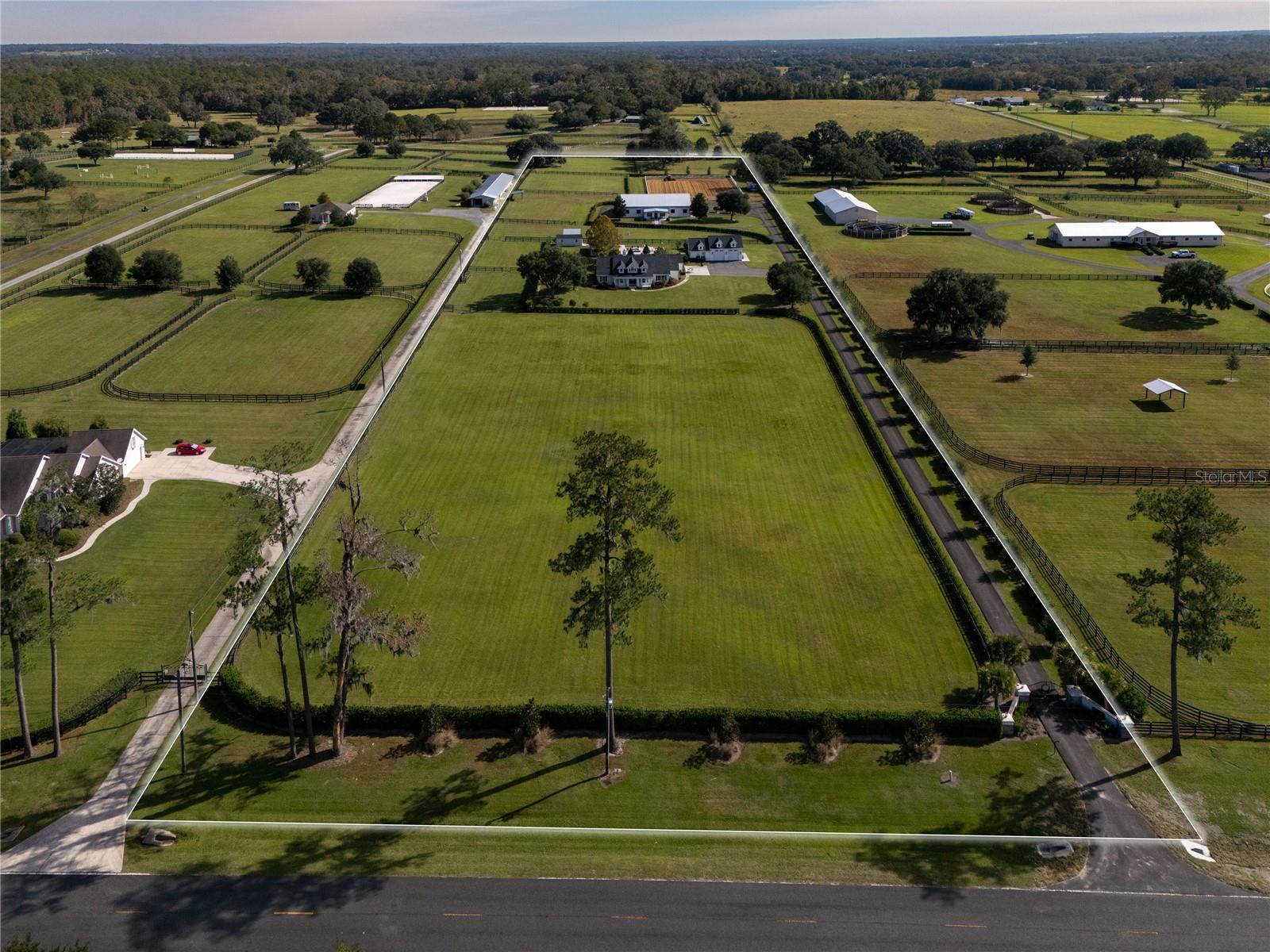 Just minutes from world-class equestrian venues, this 10-acre fully fenced estate offers versatility, charm, and exceptional convenience. Located 10 minutes to the World Equestrian Center and only 5 minutes to Golden Ocala, the property combines an ideal location with thoughtful design and extensive amenities for both homeowners and equestrians. A tree-lined driveway welcomes you onto the property and sets a beautiful tone as you approach the heart of the estate. Toward the back of the acreage sits a spacious 6-stall barn featuring rolling doors, washracks, a tack room, laundry room, bathroom and a comfortable apartment/office area. A separate barn kitchen is centrally located within the barn,ideal for convenience during long days on the property. There is also ample parking space for equipment. Just beyond the barn, riders will appreciate the clay-footing riding arena and surrounding paddocks. The main home offers an inviting layout with 4 bedrooms, 2 full baths, and 1 half bath, and an office. High ceilings and a centrally placed fireplace bring character and warmth to the living space, while select bedrooms feature soft carpeting for added comfort. The kitchen is complete with updated appliances, a butcher block island, and a charming breakfast nook that frames views of the pool. The back porch flows seamlessly to the screened-in saltwater pool, creating an elegant outdoor living space. Outside the pool enclosure, a paved walkway leads to a tranquil outdoor retreat that includes a spa, firepit, seating area, and a covered outdoor kitchen for gatherings and enjoying Florida’s beautiful weather. A small pool house provides convenient storage for outdoor and pool essentials. For added versatility, the property also includes a studio apartment within the garage, complete with a full kitchen,full bathroom, and laundry area, an excellent option for guests, staff, or rental income. Move-in ready and thoughtfully outfitted for equestrian living, this property blends comfort, convenience, and rural elegance in one of Ocala’s most desirable locations.