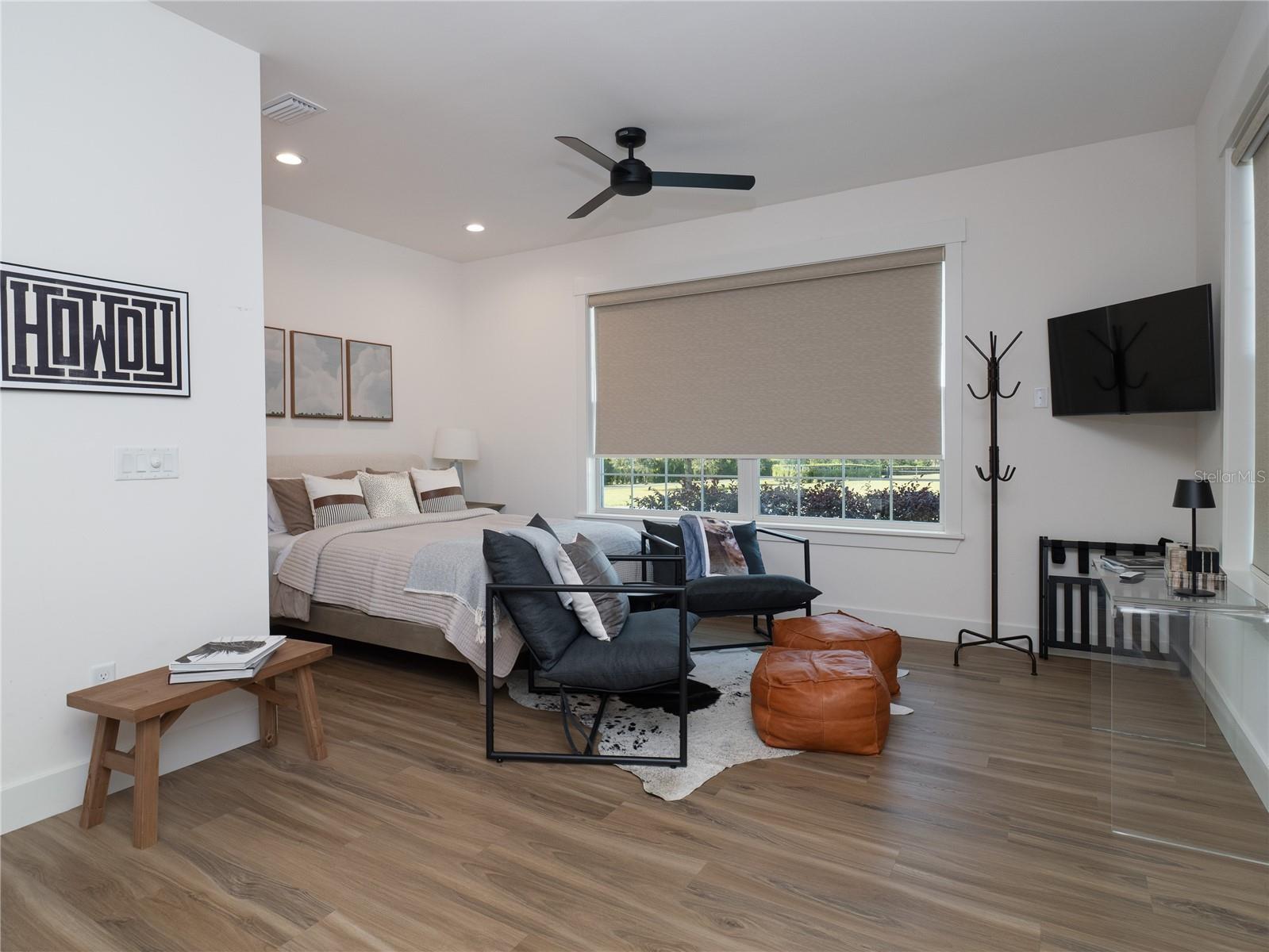 - Ceiling Fans(s), High Ceilings, Open Floorplan, Primary Bedroom Main Floor, Solid Surface Counters, Solid Wood Cabinets, Split Bedroom, Thermostat, Walk-In Closet(s)