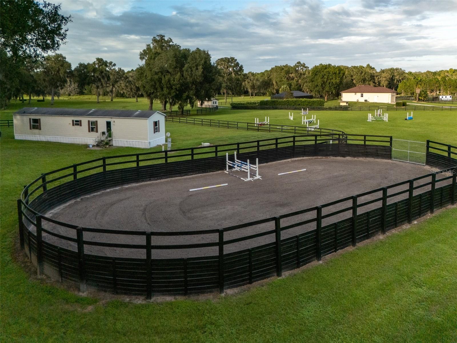 This exceptional 20+ acre equestrian property in the heart of Reddick offers the perfect blend of functionality, comfort, and Florida charm! Thoughtfully designed for the serious horse enthusiast, the farm features 8 beautifully maintained green paddocks and 2 center-aisle barns with a total of 15 stalls, each equipped with fans, lighting, and water spigots. Supporting facilities include a barn office, bathroom, feed room, tack room with washer and dryer, fly spray system, and convenient wash racks. A round pen, extra storage shed, and a separate 2-bedroom, 2-bath mobile home add flexibility, making it ideal for a farm manager, guests, or additional living space. The main residence is warm and inviting, with an open floor plan, vaulted ceilings, and an easy flow between living areas. It includes 3 bedrooms, 2 full bathrooms, a bright Florida room, and a well-appointed kitchen featuring solid wood cabinets and beautiful countertops. A 2-car attached garage provides convenient space for vehicles or equipment. Just steps from the home, a screened-in saltwater pool and spa with a heater offer the perfect place to unwind, complete with a tiki bar outfitted with a sink and mini fridge, ideal for entertaining or enjoying peaceful Florida evenings. This property offers the ideal blend of comfortable living and well-equipped equestrian facilities in a peaceful and private countryside setting.