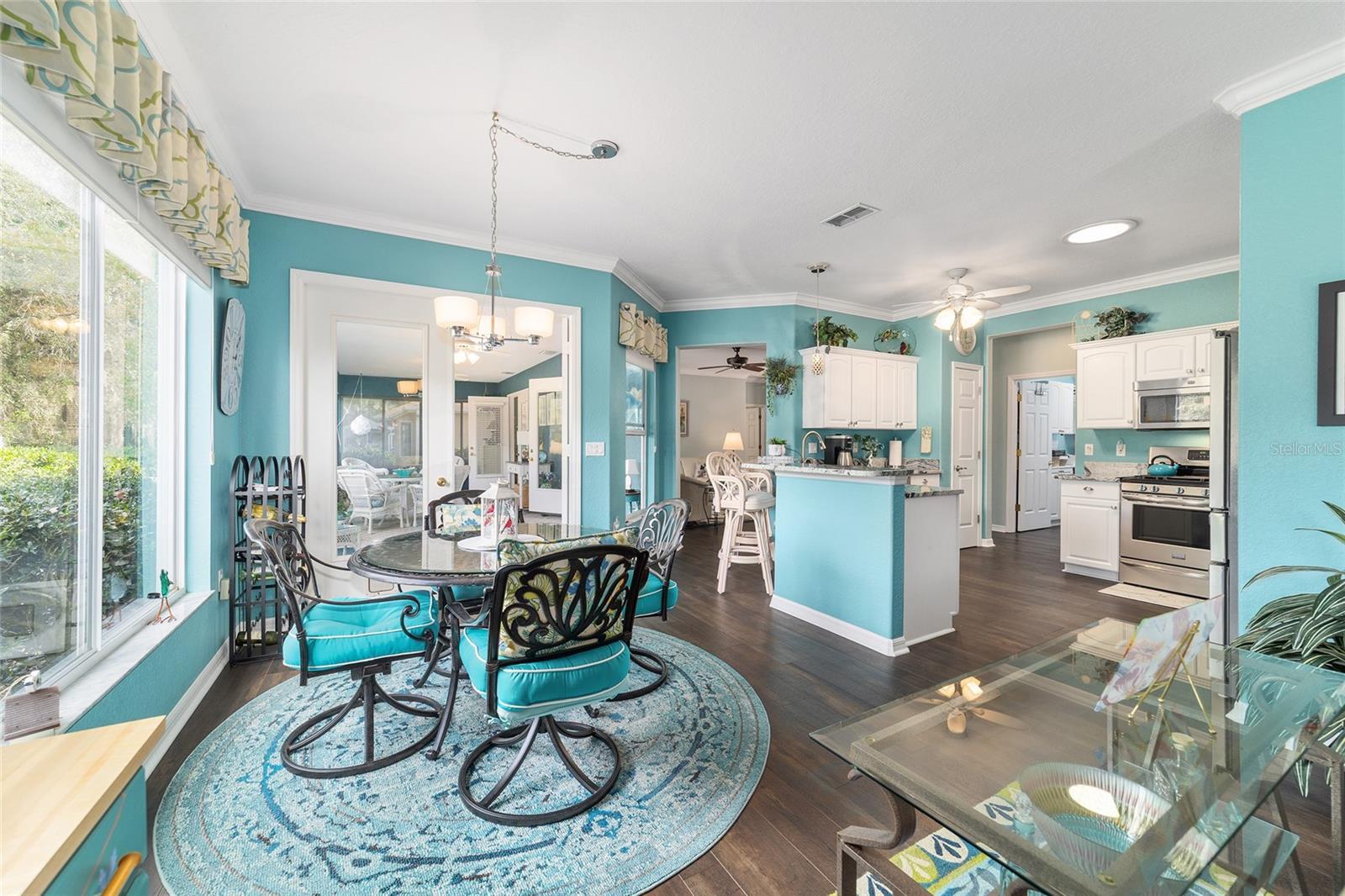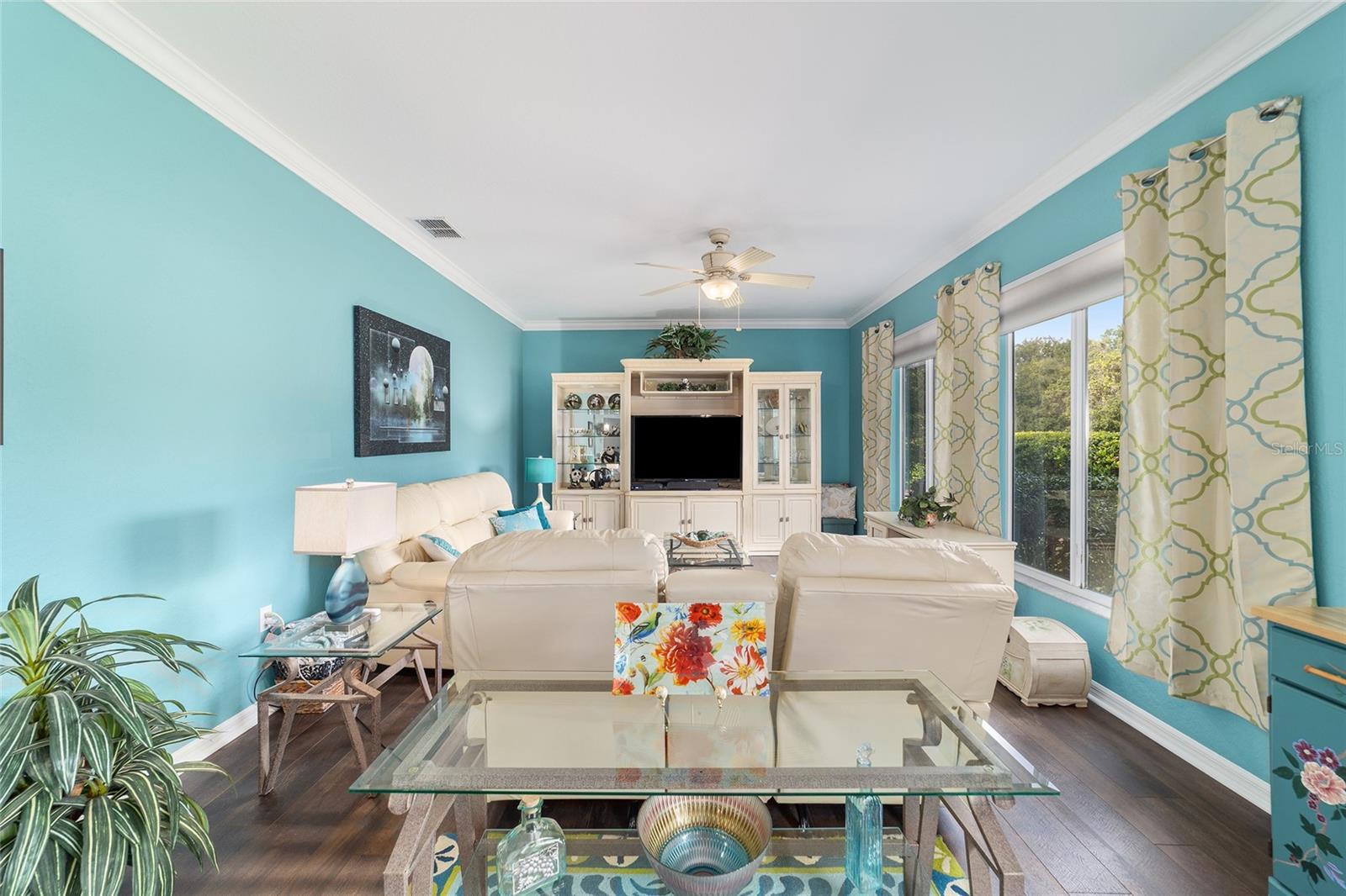 Galleria model with 3 bedrooms, 2 baths, and a full-size 3-car garage located on a natural preserve. Features luxury vinyl plank flooring, granite kitchen counters, Pull outs, stainless steel appliances, instent hot water in kitchen ,recessed lighting, 4 solar tubes, crown molding, dual closets in the master, double quartz vanities, walk-in shower, water closet , and tile in the master bath. Guest rooms are carpeted. The climate-controlled, glass-enclosed lanai has a remote awning and overlooks the preserve, plus there's a spacious patio with a gas line for grilling. The garage includes cabinets, epoxy flooring, attic storage with drop-down stairs, Additional amenities: well for irrigation, whole-house water filtration, fans and lights throughout.
