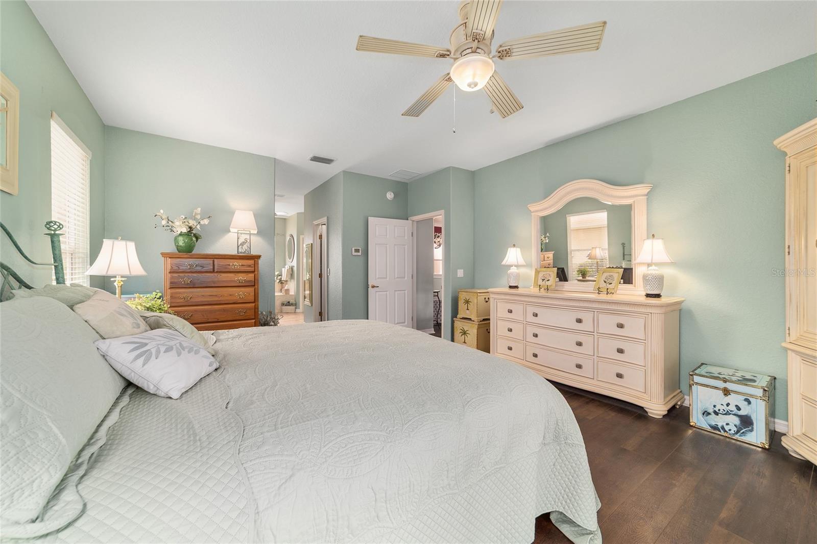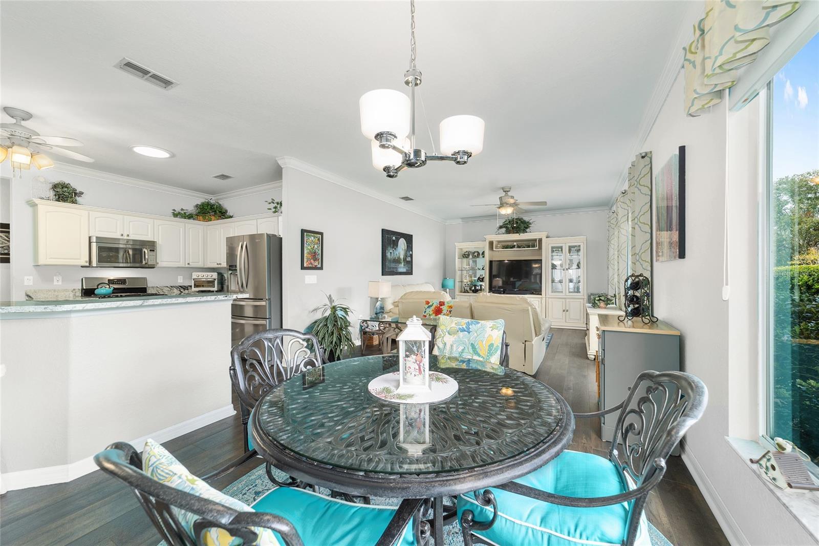 - Ceiling Fans(s), Crown Molding, High Ceilings, Living Room/Dining Room Combo, Primary Bedroom Main Floor, Thermostat, Walk-In Closet(s)