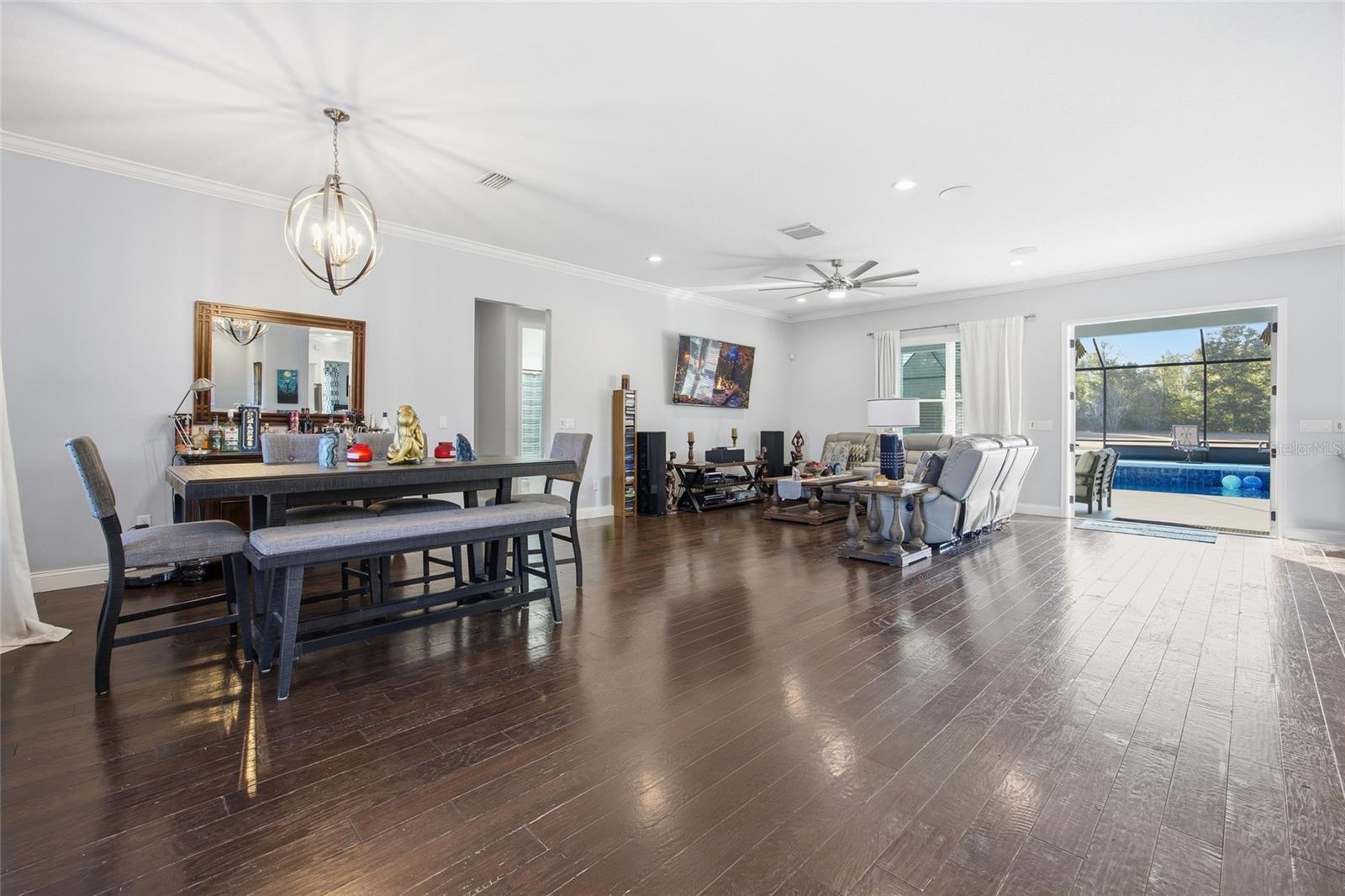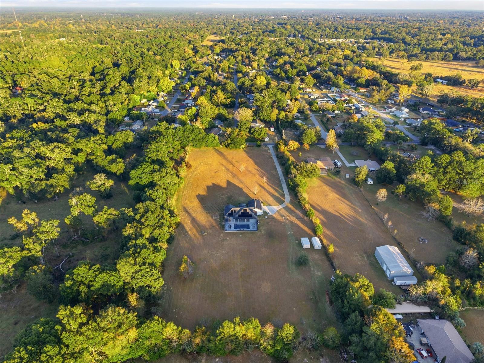 Experience refined country living at its finest in this beautifully maintained 2,400+ sq ft custom estate, perfectly positioned on 5+ pristine, fully fenced acres with an impressive automatic gated entry. From the moment you arrive, the property radiates privacy, sophistication, and pride of ownership. Inside, the home welcomes you with an open-concept design, soaring 10-ft crown-molded ceilings, and an abundance of natural light that fills the spacious living areas. The bright, airy layout is ideal for both relaxed everyday living and effortless entertaining. At the heart of the home, the chef’s kitchen shines with marble countertops, a generous sit-in island with built-in storage, double wall ovens, and premium finishes, all enhanced by built-in surround sound that carries through the main living spaces. The primary suite is a luxurious escape featuring dual walk-in closets, a 6-ft soaking tub, a beautifully tiled walk-in shower, and a dual-sink vanity designed for comfort and style. The finished garage stands out with custom cabinetry, shelving, and tiled flooring—offering exceptional storage, organization, and workspace for hobbies, vehicles, or equipment. Step outside to a true resort-style oasis. The 16x32 heated in-ground pool, spa-inspired hot tub, and expansive patio invite year-round relaxation and outdoor living. Whether you’re enjoying quiet mornings by the water or hosting weekend gatherings, this space elevates everyday life. Energy-efficient upgrades—including solar panels and a tankless water heater—provide modern convenience and long-term savings. The open acreage offers endless possibilities: bring your horses, create recreational spaces, or plan future expansions tailored to your lifestyle. All of this is ideally located just 15 minutes from downtown Ocala and under 30 minutes from the World Equestrian Center—close enough for convenience, yet far enough to enjoy the tranquility of private estate living. Seller is offering the option to purchase fully furnished, making this a rare turnkey property that effortlessly combines luxury, comfort, and unmatched privacy. Properties like this simply don’t come along often. Schedule your tour TODAY!