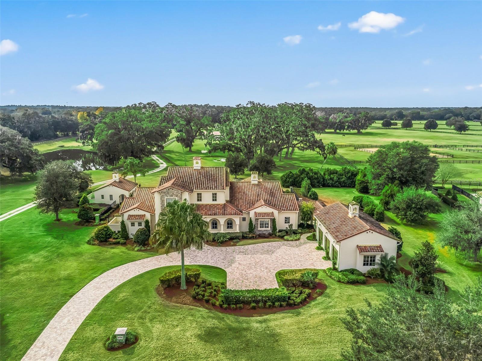 Elegant 19+ acre estate style farm in the gated Equestrian Community of Bel Lago, well located close the World Equestrian Center & shopping. This gorgeous horse farm boasts a custom built 6200+ sq ft pool home with a guest casita, 4-stall center aisle barn, large grass paddocks & nearby riding trails. The resort-style pool area overlooks the acreage & oak trees & has travertine decking & a large screened-in lanai with summer kitchen & fireplace. The home boasts luxurious high-end finishes throughout & has 4 bedrooms, 5 bathrooms plus two offices. Each bedroom has an en-suite bathroom for privacy. The gourmet kitchen has an enormous island overlooking the family room & lanai with plenty of space to entertain. The expansive primary suite is located on the main floor with 2 large walk in closets & a spa-like en suite bathroom. The home also has a large open loft area on the second floor with a balcony overlooking the grounds, in addition to the two guest bedrooms with bathrooms. Enjoy the Florida lifestyle by the beautiful pool and outdoor living area complete with a summer kitchen and fireplace. The private casita is located by the pool & is perfect for guests or a mother-in-law suite. There is a 3 car garage with additional washer & dryer & partially finished loft area above the garage for storage. Bring your horses & move right in to this elegant 19+ acre estate!