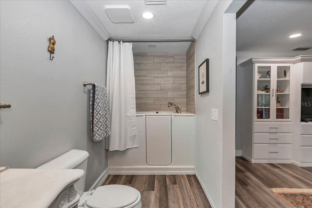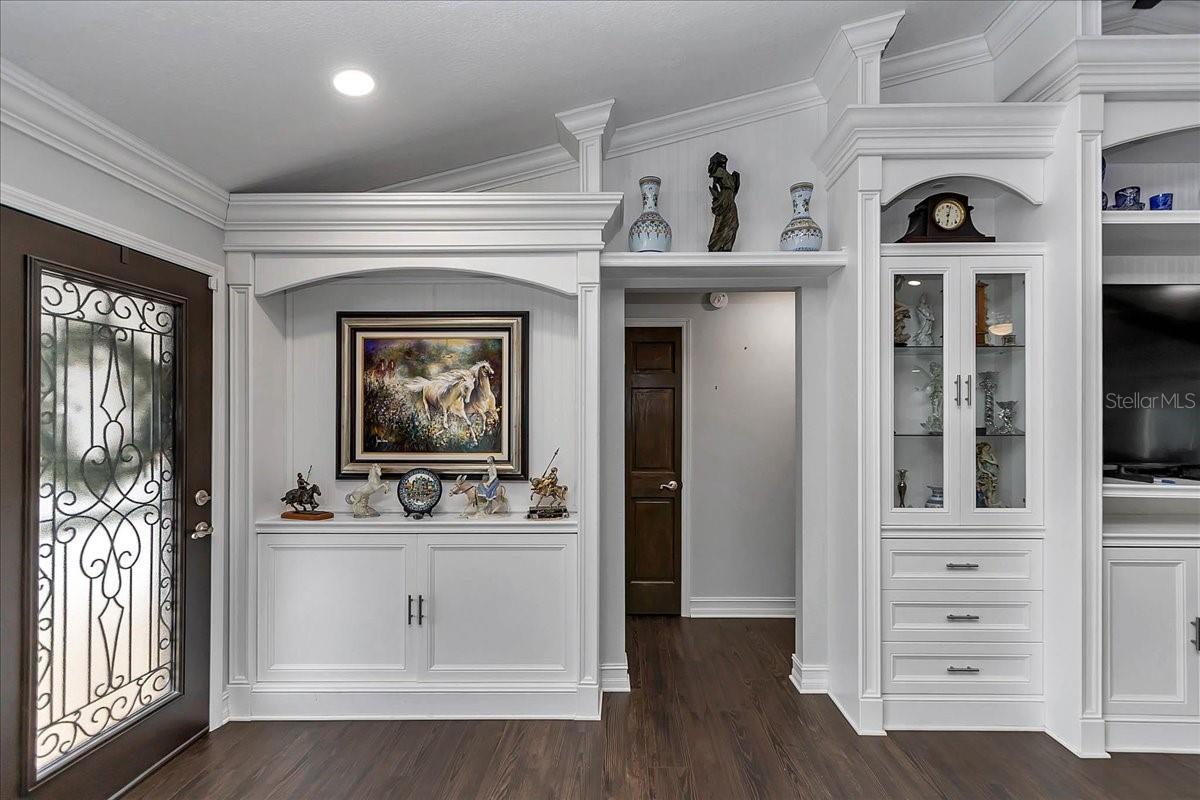 - Solid Wood Cabinets, Built-in Features, Cathedral Ceiling(s), Ceiling Fans(s), Crown Molding, Eat-in Kitchen, High Ceilings, Living Room/Dining Room Combo, Primary Bedroom Main Floor, Open Floorplan, Split Bedroom, Stone Counters, Thermostat, Walk-In Closet(s)