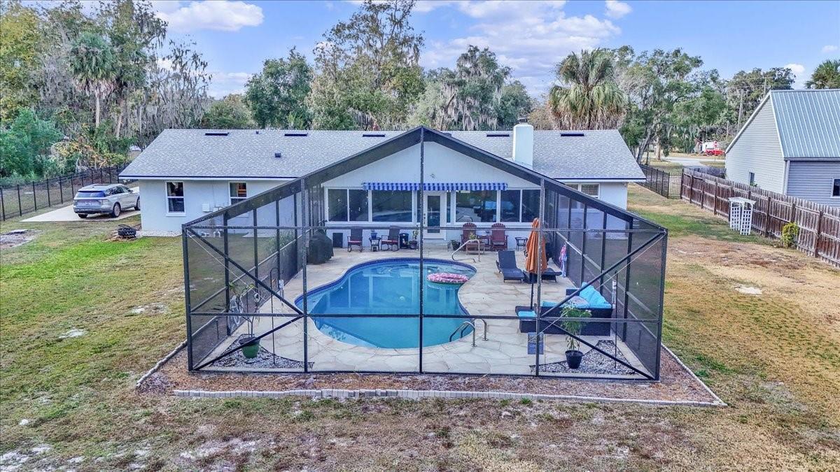 Completely Updated Saltwater Pool Home on the Tsala Apopka Chain of Lakes!!! Welcome to your dream retreat—an exquisitely updated saltwater pool home nestled on just under an acre of fully fenced, gated property along the stunning Tsala Apopka chain of lakes. Property boasts 3 bedrooms, 3 bathrooms and over 2700 square feet of living space. This beautiful home blends modern upgrades with timeless charm, offering both privacy and waterfront living at its finest. Step inside to an inviting open floor plan featuring luxury vinyl plank flooring throughout, warm wood-beamed ceilings and a cozy fireplace that sets the perfect tone for relaxed Florida living. Abundant windows with plantation shutters fill the home with natural light and frame tranquil views of the surrounding landscape. The chef’s kitchen is truly the heart of the home—showcasing solid wood cabinetry, granite countertops, double built-in ovens, a farmhouse-style sink, along with a center island with cooktop and pot filler. Whether you’re entertaining or preparing everyday meals, this kitchen is designed to impress. The spacious primary suite offers a peaceful escape with its en-suite bathroom, walk-in closet, and a custom built-in dresser with TV space for added convenience and style. A split bedroom layout provides two generously sized guest rooms—ideal for visitors, family or a home office setup. The sun room and extra dining area overlook the sparkling saltwater pool and have incredible lake views, creating seamless indoor–outdoor living and perfect flow for gatherings. Outdoors, enjoy the Florida lifestyle with plenty of room to roam, play or relax. This acre property is adorned with two orange trees, a lemon tree, a banana tree, two fig trees, a peach tree and an Argentina grape tree! With nearly an acre of land, a secure gated entry, and access to the iconic Tsala Apopka lakes, this home delivers a rare combination of comfort, luxury and adventure! Property is less than 5 minutes from historic downtown Inverness Liberty Park, nature trails, farmer's markets, resaurants, medical offices & MORE!