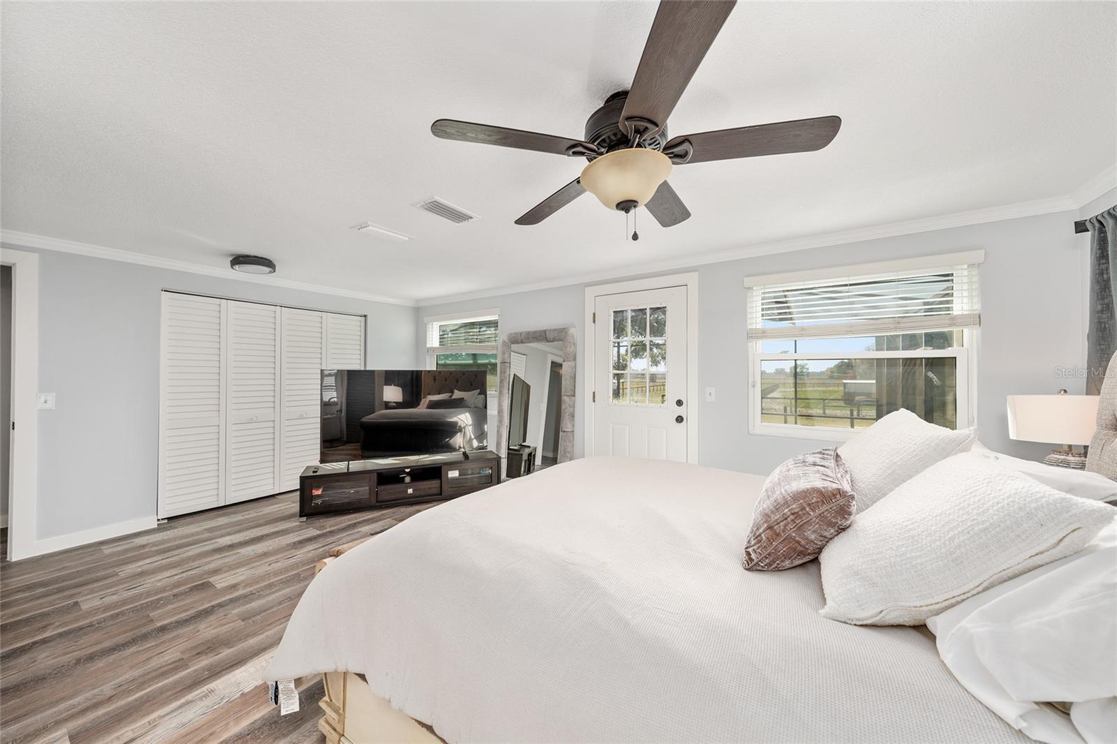 - Ceiling Fans(s), Eat-in Kitchen, High Ceilings, Kitchen/Family Room Combo, Open Floorplan, Pest Guard System, Solid Surface Counters, Solid Wood Cabinets, Walk-In Closet(s)