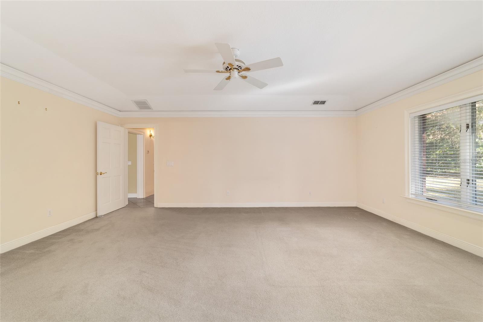Welcome to this charming two-story red brick home tucked along the back of the driving range in the sought after Country Club of Ocala, offering unmatched views straight down to the clubhouse. If you love golf or have golfers in the family, having a driving range and full practice center right in your backyard is an incredible bonus! Inside, the home offers a comfortable and well-designed layout with 4 bedrooms and 3.5 bathrooms, along with a 3 car garage. The spacious primary suite is located downstairs and features an attached den/office, perfect for working from home or enjoying a quiet reading space. A second bedroom with its own full bath is also conveniently located on the main floor. Large picture windows throughout the main living areas fill the home with beautiful natural light and capture peaceful views of the oversized backyard and golf practice area beyond. The kitchen includes a center island and a cozy breakfast nook overlooking the grounds, while the formal living room with a gas fireplace and separate dining room offer wonderful spaces for hosting. Situated on almost 2 acres, this property provides a great backyard. Upstairs, a generous family room with built-in cabinetry and an additional room with its own bar both open to a lovely balcony, an inviting spot to soak in the panoramic golf views. Two additional bedrooms share a Jack-and-Jill bath, creating a perfect layout for family or visiting guests. Whether you're raising a family or a true golf enthusiast seeking the ideal setting, this has an unbeatable location. Roof was replaced in 2019, a/c unit in master in 2015 and main unit in 2016 and hot water heaters replaced in 2017 and 2019.