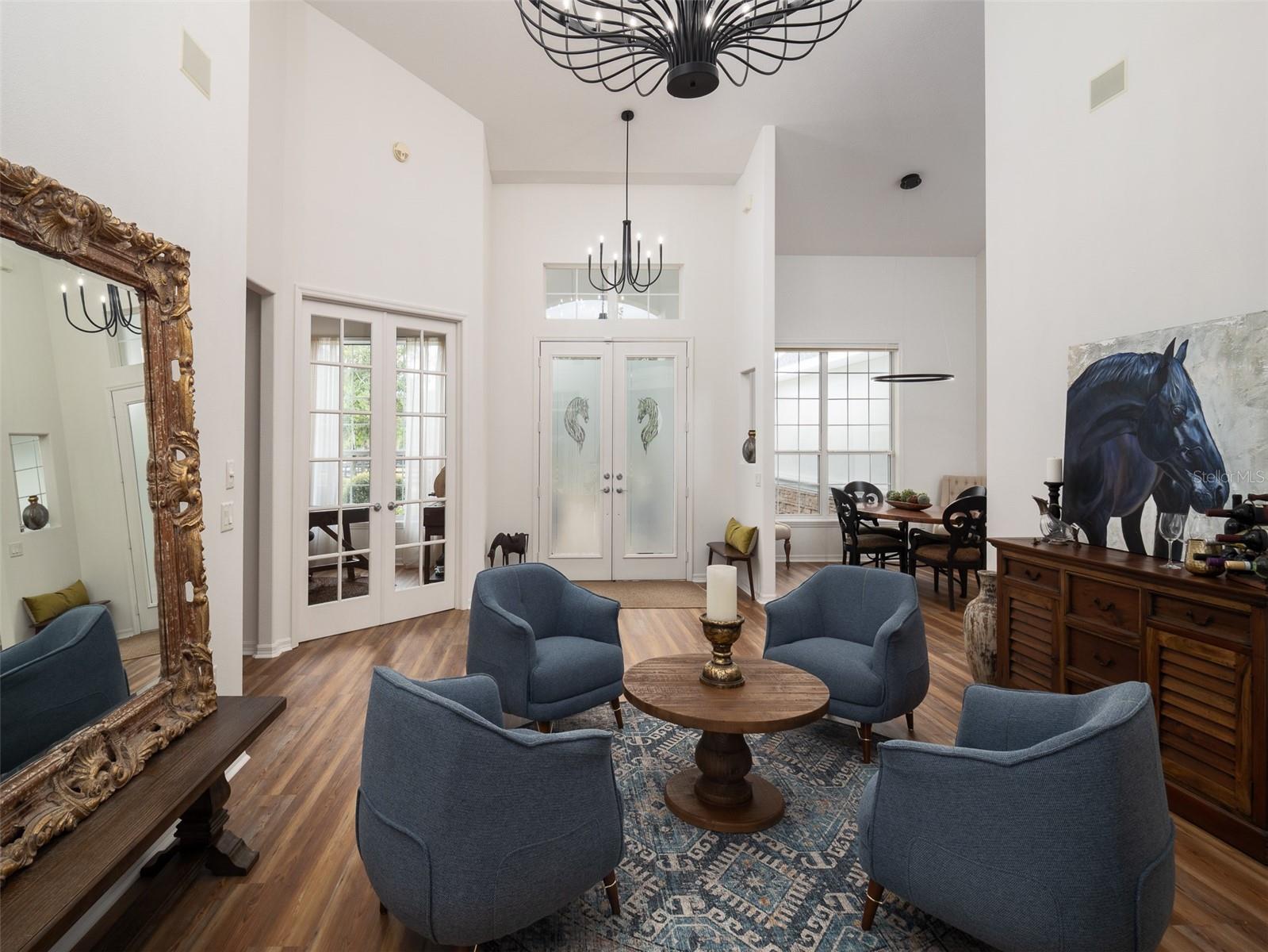 Nestled just off Highway 441 in Citra, this exceptional 11+ acre farm offers a seamless mix of practical features, inviting spaces, and classic Florida appeal! This fully fenced property is ideal for any equestrian operation and is thoughtfully laid out with seven paddocks, a round pen, and an arena with sand and clay footing. The barn includes five stalls, a tack room, feed room, wash rack with hot water, ample equipment storage, and even a convenient 1-bedroom, 1-bathroom apartment complete with a kitchen. The main home is warm and welcoming, designed with both comfort and style in mind. It features 3 bedrooms, 3 bathrooms, an office, a formal living room, and a great room filled with natural light from large windows and enhanced by high ceilings that create an open, airy feel. The cozy kitchen, equipped with updated appliances, offers an inviting space for everyday meals or weekend gatherings. The beautifully renovated master suite feels like a private retreat with its walk-in shower, large soaking tub, and walk-in closets, providing a peaceful escape at the end of the day. French doors lead from the living area to the back porch, where a screened-in inground pool with a soothing waterfall feature sets the tone for relaxation. Just outside the screen enclosure, the porch transitions to a covered outdoor kitchen and bar, perfect for entertaining friends and family, while a separate paver patio creates a dedicated space for unwinding around the firepit. Additional conveniences include a 2-car garage that offers plenty of room for vehicles and storage. Altogether, this property provides an inviting, well-designed haven ready to support both everyday living and your equestrian lifestyle!