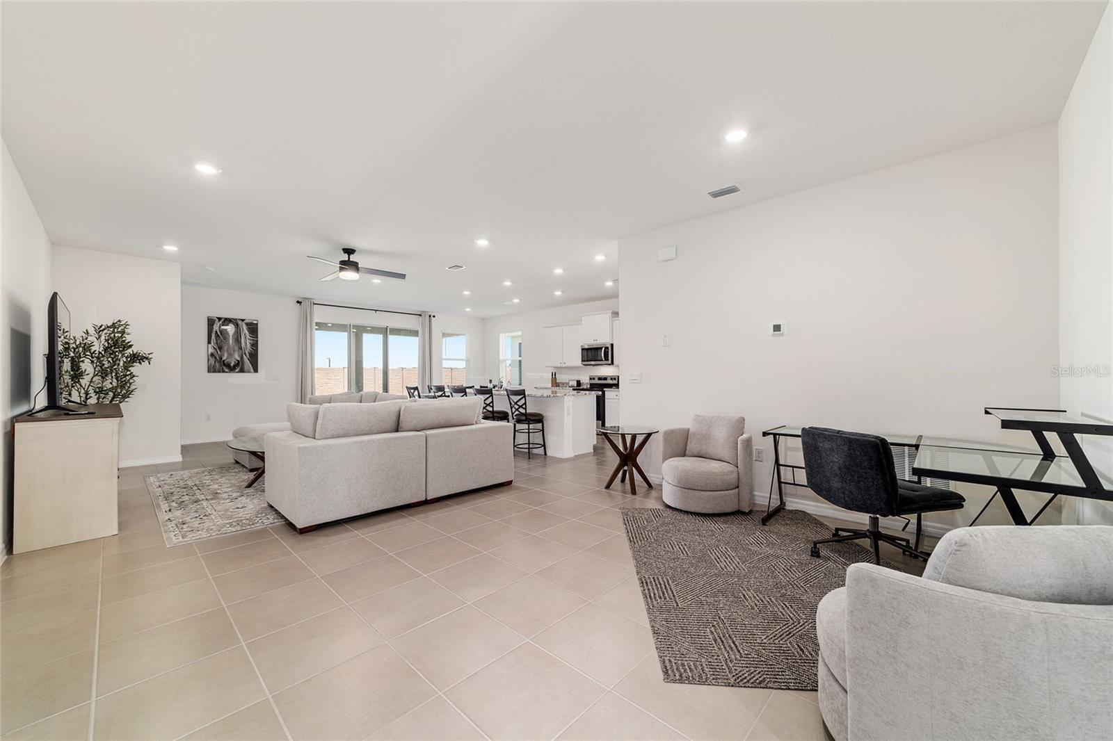 WINTER LEASE NOW AVAIALABLE! Welcome to this Brand New Construction FULLY FURNISHED 3 bedroom, 2 Bath Laurel model home nestled in the prestigious, gated community Ocala Preserve. Located just 6 minutes from the World Equestrian Center! This immaculate and thoughtfully designed home offers an open-concept layout with soaring ceilings and abundant natural light, creating a warm and inviting atmosphere. The oversized great room and open floor plan is the perfect place to entertain family and friends. The modern kitchen is a chef’s dream, complete with granite countertops, ample cabinetry, and upgraded stainless steel LG smart appliances, equipped with everything you need! Each room includes remote-controlled ceiling fans for year-round comfort and ease. The spacious primary suite is a true retreat, featuring a large king bed, comfortable linens, large windows open to the beautiful backyard views and an elegant ensuite bathroom with dual sinks and a generous walk-in closet. The two additional bedrooms feature plush carpeting, tasteful decor and furnishings and are ready for you and your guests to enjoy! Step outside to enjoy a FULLY FENCED backyard—ideal for your fur babies—and a covered back patio that’s perfect for relaxing or entertaining. Tasteful decor, high-end furniture, and upgraded finishes create an elegant ambiance throughout the home. A premium lot with upgraded landscaping further enhances the outdoor experience. The deep 2-car garage offers ample storage and is even golf cart ready! High-speed internet, utilities, and all community amenities are included in the rental rate. Enjoy access to golf, resort-style pools, tennis courts, dog park, 21 miles of serene walking trails, pickleball courts, a day spa, a fitness center, and more! Schedule your private tour today and discover your perfect family getaway at Ocala Preserve! AVAILABLE FOR WINTER SEASON FEBRUARY-APRIL AT $4500- ALL INCLUSIVE!