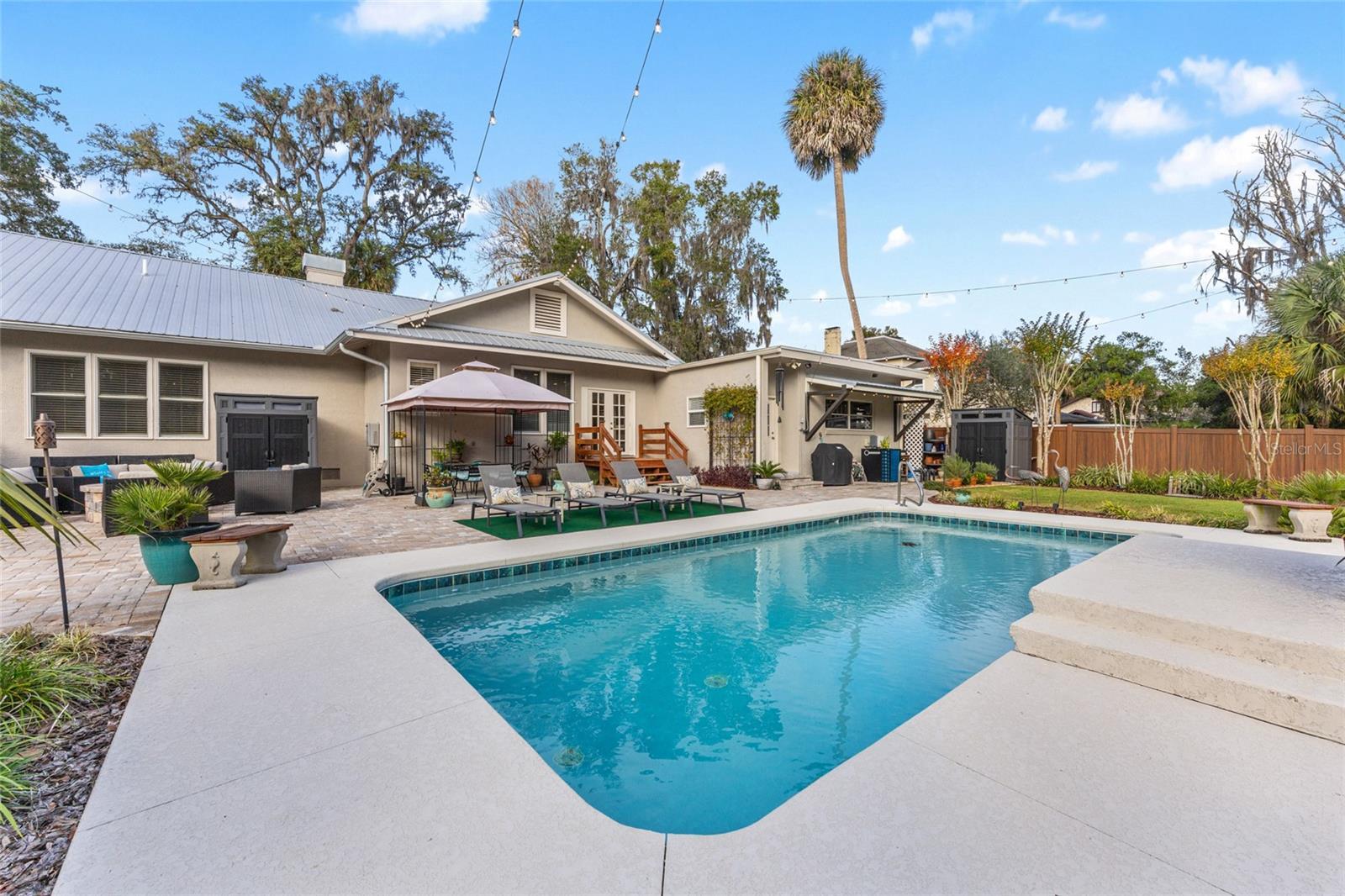 Located in a highly sought-after SE neighborhood just minutes from downtown, this exceptional 1955 completely updated residence is a rare opportunity to own a truly distinctive home. Timeless details abound, including original red oak floors, bold crown molding, elegant wainscoting, and plantation shutters throughout. The welcoming foyer features built-in bookcases and leads to a spacious family room and a sun-filled office/sunroom offering beautiful natural light. The main level hosts three bedrooms and two and a half baths, including an oversized primary suite with a sitting area overlooking the lush backyard. The open kitchen is designed for both function and style with dual sinks (one with reverse osmosis), a butler’s pantry area, oversized pantry, and a bright breakfast room, all complemented by a formal dining space ideal for entertaining. Upstairs, you’ll find a spacious fourth bedroom with a full bath that also serves perfectly as a bonus or theater room.Step outside to your private backyard oasis—sip coffee or enjoy dinner while listening to the waterfall in the saltwater pool. With a newly installed pool heater and chiller, it’s ready for year-round enjoyment. Evenings are magical around the gas fireplace, surrounded by lush landscaping, market lights, and total serenity. Filled with timeless charm and architectural distinction, this remarkable home offers a rare blend of character, comfort, and location. Opportunities like this are seldom available—this is truly a must-see property that won’t last long.