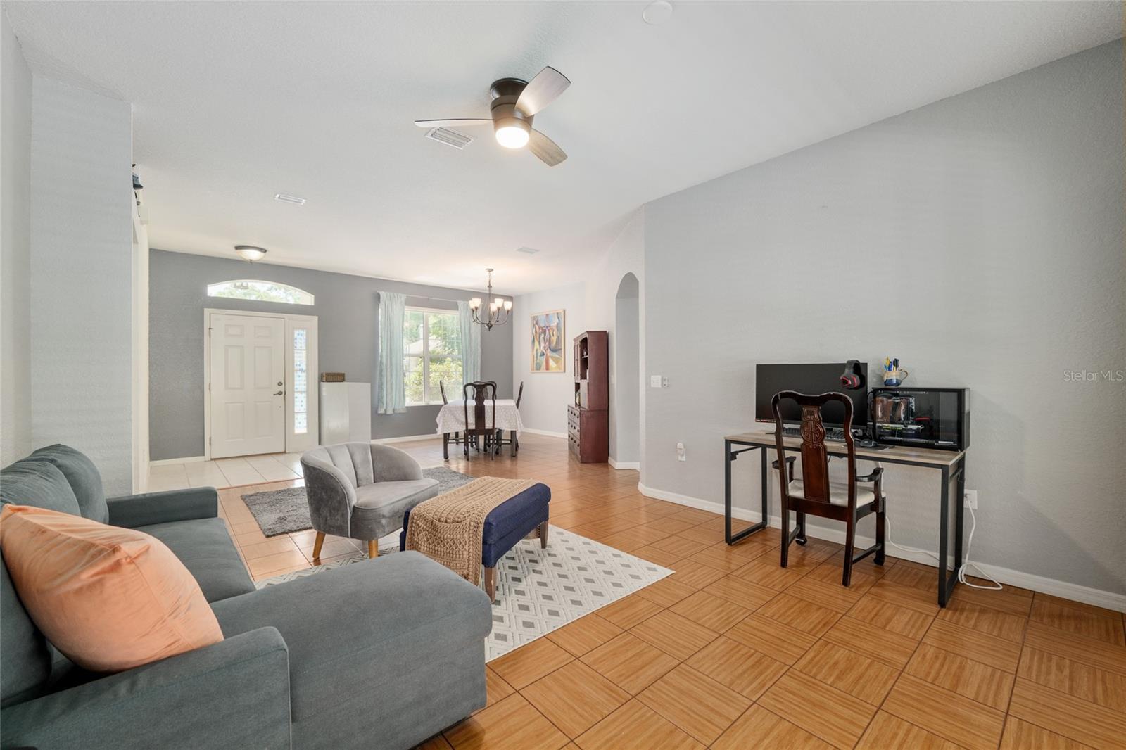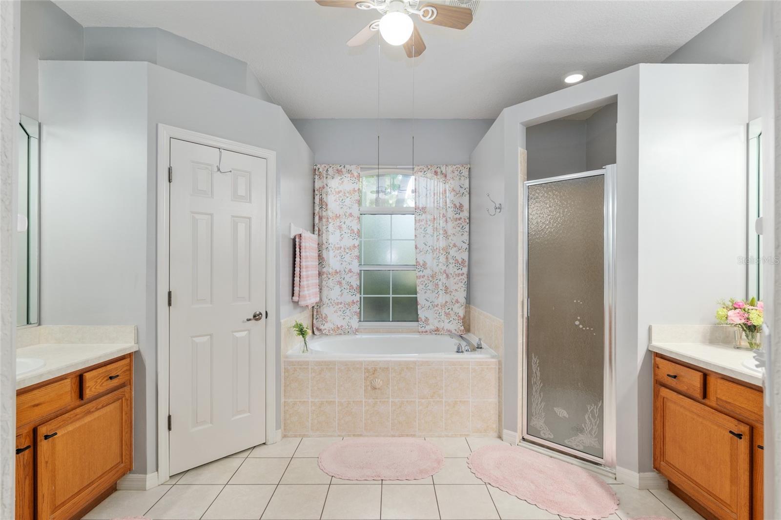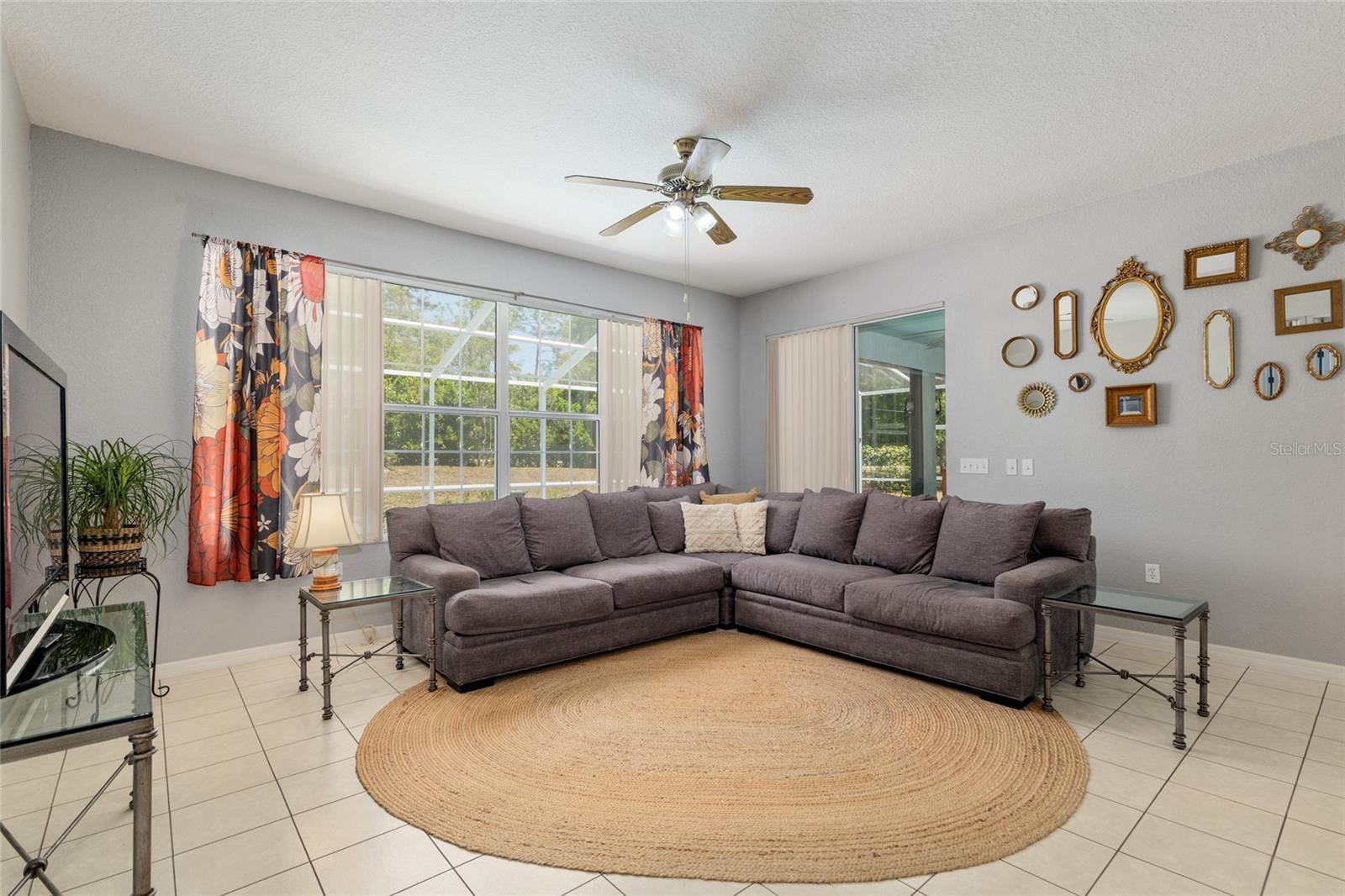 - Ceiling Fans(s), Eat-in Kitchen, High Ceilings, L Dining, Primary Bedroom Main Floor, Split Bedroom, Window Treatments