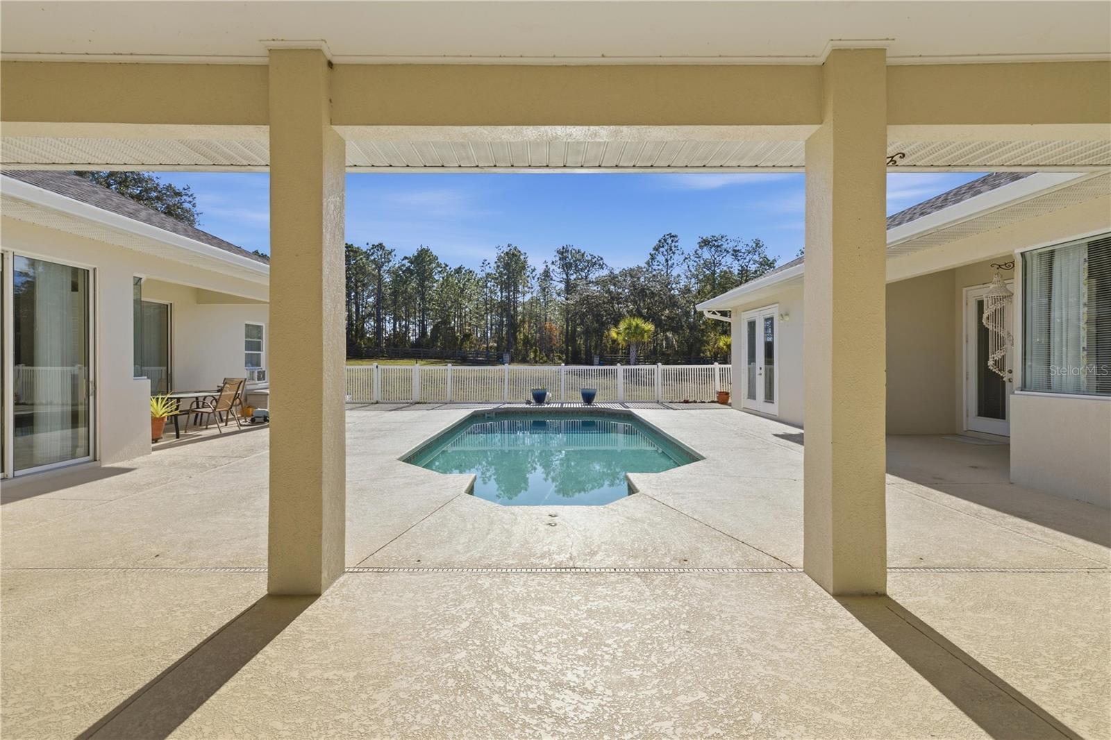 One or more photo(s) has been virtually staged. 7 acre pool estate with workshop, RV hookup, and room for animals—just minutes from boating and the Gulf. This solid concrete block 4-bedroom, 4-bath home on approximately 7 fully fenced acres offers privacy, flexibility, and true rural living with modern upgrades. A 40x44 metal building/workshop provides excellent space for equipment, RV or boat storage, hobbies, or a home-based business. The property includes RV electrical hookup, wide-open usable land, and extensive road frontage on a 400’ x 753’ lot. The home features a brand-new roof (2025), two newer A/C units, and a split floor plan with multiple living areas. Built with poured solid concrete block walls, the attic is spray-foam insulated and air-conditioned for improved energy efficiency. Additional updates include exterior paint (2021), added garage insulation, and mature palm trees enhancing curb appeal. Enjoy Florida outdoor living with a screened pool and large courtyard, great for relaxing or entertaining. The acreage offers space for pasture, livestock, gardening, or expansion (buyer to verify use). Located approximately 20 miles from the Gulf of Mexico, 8 miles to a Gulf-access boat ramp and Lake Rousseau, and about 25 miles to equestrian facilities. A rare opportunity to own a pool home on acreage with workshop, RV access, and room to live the lifestyle.