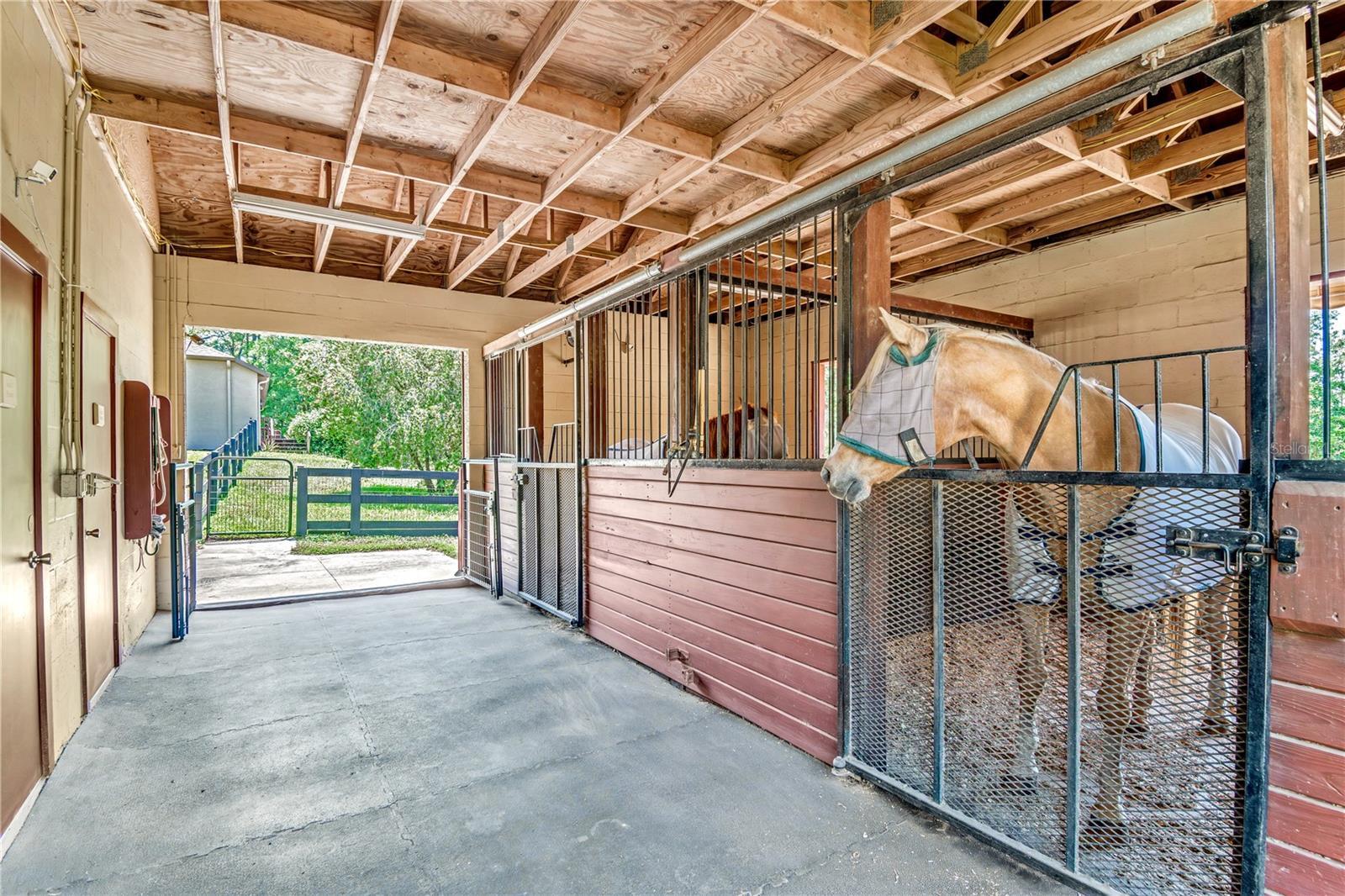 Discover a rare blend of refined living and outdoor beauty, tucked within the desirable Pine Ridge Equestrian Estates community of Beverly Hills. Set back from the road on 5.54 acres, this inviting property is framed by mature trees that provide privacy and gentle shade, creating a peaceful, welcoming environment. The 3-bedroom, 2-bath home offers a spacious open floor plan, complete with high ceilings, crown molding, and elegant detail-oriented finishes. Light and bright, the home features abundant natural light from large windows, skylights in the living room, and sliding glass doors out to the rear patio. At the heart of the home is the thoughtfully designed kitchen, which features granite countertops, stainless steel appliances, a large breakfast bar, and pantry. Enjoy casual mornings in the breakfast nook overlooking the rear porch, host gatherings in the formal dining room, or work comfortably in the dedicated home office. The primary suite serves as a true retreat, offering two walk-in closets and a luxurious en-suite bath with dual vanities, jacuzzi tub, and a large walk-in shower. Outdoor living is equally impressive, with a screen-enclosed patio featuring ceiling fans and plenty of seating space, leading to a raised wood deck surrounded by flowering jasmine. An attached three-car garage and a full security system add everyday convenience and peace of mind. Designed with equestrian enthusiasts in mind, the property features a center-aisle barn complete with 2-stalls that could be converted into a 4-stall barn, hot water, a wash rack, a feed room, a tack room/office with a half-bath. Eight fenced paddocks provide ample turnout space, while the two-story barn includes a large attic for storage or future expansion and customization. Residents of Pine Ridge enjoy access to a wealth of amenities, including 28 miles of scenic riding trails, a community clubhouse, stabling facilities, and recreational courts. Plus, the property is located just a short drive from the sparkling Gulf Coast and a growing array of shopping, dining, and entertainment options in the vibrant, developing Beverly Hills area. Ocala is just a short drive away, opening up even more opportunities to compete, train, and experience the finest equestrian venues in Central Florida. This is your opportunity to own a property where privacy, comfort, and equestrian excellence come together seamlessly!