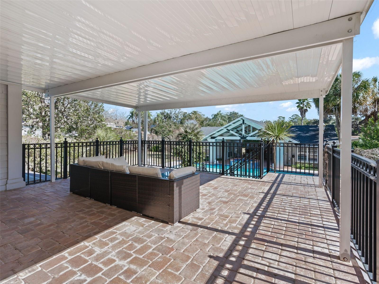 Resting in the heart of Southeast Ocala, this one-of-a-kind estate blends timeless architecture, rich local history, and thoughtful updates. Originally built as the Ocala Country Club in 1912, the property offers a rare opportunity to own a truly special residence without historic registry restrictions - allowing flexibility to enjoy, enhance, or personalize the home and gardens. The main residence features beautifully refinished original oak and heart-of-pine flooring, four fireplaces, and two full kitchens - making the property ideal for multi-generational living, extended guests, or entertaining on any scale. The upper level includes living, kitchen and dining spaces, the primary suite, additional bedroom with adjacent bathroom, a light & bright study with fireplace overlooking the park, plus an upstairs covered patio overlooking the pool and courtyard. The lower level offers a secondary living area with its own kitchen, two en-suite bedrooms, full laundry room and additional full bathroom. Designed with entertaining in mind, the outdoor living space offers your very own private country club retreat. The expansive paver deck surrounding the sizable pool and spa leads to a covered area with summer kitchen complete with wet bar. The living spaces on each side offer additional functionality with a bedroom, full bathroom, and spacious gym or rec. room. Additional updates and features: new roof on main residence and pool home in 2020/2021, a whole home generator, and an irrigation well for the mature landscaping - featured in the 2023 HOPS Garden Tour. Ideally located just minutes from downtown Ocala, within the golf cart district - minutes to shopping, dining, and entertainment. This fully-furnished estate offers grandeur, convenience, and character - best appreciated in person. Please enjoy the attached interactive 3D tour.