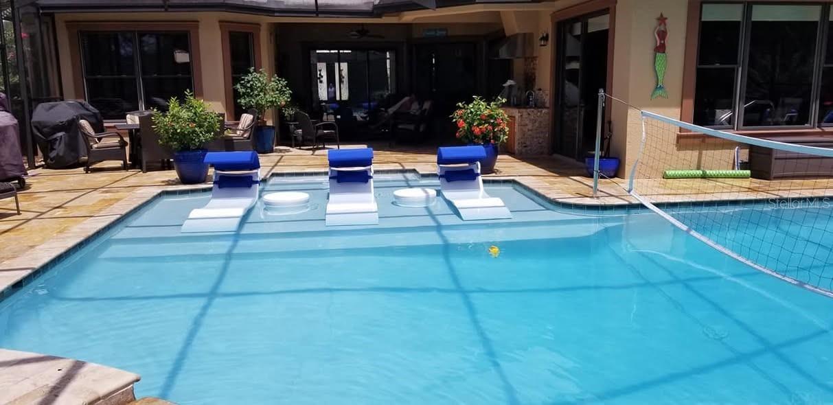 Welcome to this 4-bedroom, 3-bath home offering 3,250 square feet of thoughtfully designed living space, a home office and complete with a 3-car garage, in the highly sought-after Juliette Falls Golf Community. This elegant home features an open-concept floor plan with soaring ceilings and abundant natural light, creating a bright and inviting atmosphere throughout. The gourmet kitchen is an entertainer’s dream, showcasing granite countertops, custom cabinetry, premium Viking appliances, and a spacious center island that seamlessly connects to the living and dining areas. Multiple sliding glass doors open to a covered lanai and a screen-enclosed pool and jacuzzi surrounded by brick pavers. The outdoor space is complete with a built-in summer kitchen, making it perfect for enjoying Florida’s year-round outdoor lifestyle. The owner’s suite is a private retreat, featuring tray ceilings, dual walk-in closets, and a spa tub in bath with a soaking tub and walk-in shower. Situated on a scenic lot with no rear neighbors, this home offers both privacy and tranquil views. The 3-car garage provides ample space for vehicles, storage, or a golf cart. Residents of Juliette Falls enjoy resort-style amenities including a championship golf course, clubhouse, dining options, walking trails, and low HOA fees. Conveniently located minutes from shopping and dining, close to Rainbow Springs State Park, and a short drive to Ocala, this exceptional home offers the perfect blend of luxury, comfort, and location in one of Dunnellon’s premier communities.
