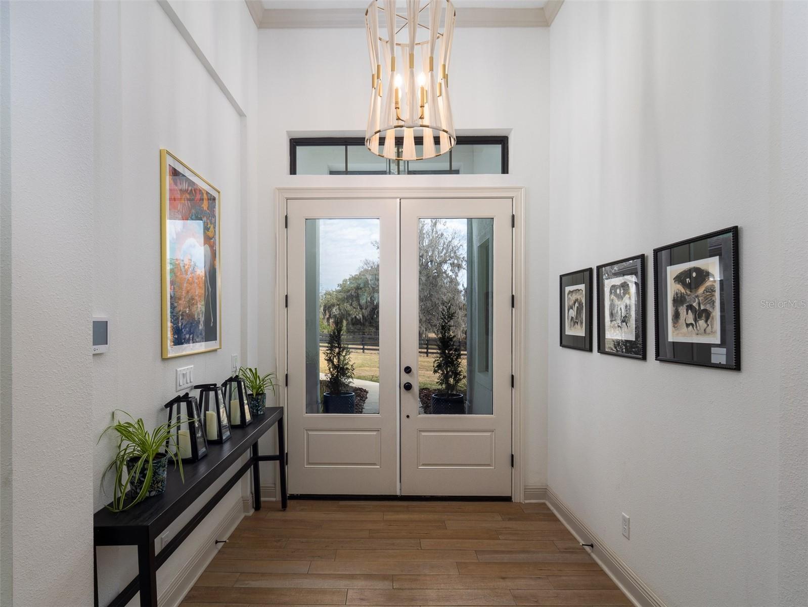 Located in the Via Paradisus subdivision, just 8 minutes from the Florida Horse Park, this exceptional property spans just over 26 acres of fully fenced land, thoughtfully divided into two large pastures and one paddock. The property features a long paved driveway and a small pond, with expansive acreage offering ample space to build a barn and arena, creating the ideal setting for a dream farm or equestrian estate. Built in 2023, the thoughtfully designed home offers 4 bedrooms and 3.5 bathrooms, highlighted by a primary suite with a large walk-in shower, soaking tub, and beautifully finished cabinetry. The gourmet kitchen features updated appliances, a large island ideal for both preparation and entertaining, abundant storage, custom cabinetry, and a beverage refrigerator. High tray ceilings, porcelain tile flooring, walk-in closets, a dedicated office, a 3-car garage, and a spacious laundry room complete the home’s refined interior. Sliding doors from the living room lead to a private backyard retreat with a screened-in pool reaching depths of up to 7 feet, enhanced by a sun shelf and water features. A covered porch with lounge area, outdoor kitchen, and fireplace creates an ideal setting for outdoor living, while expansive windows throughout the home flood the interior with natural light and showcase its elegant design. This property seamlessly blends modern luxury with exceptional equestrian potential, offering a rare opportunity to create a truly remarkable farm estate.