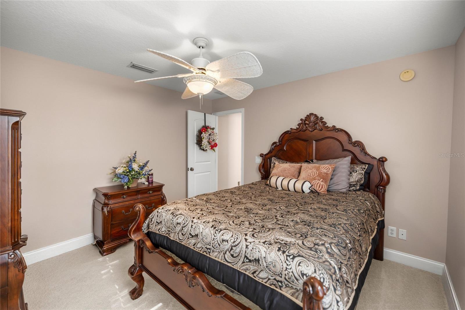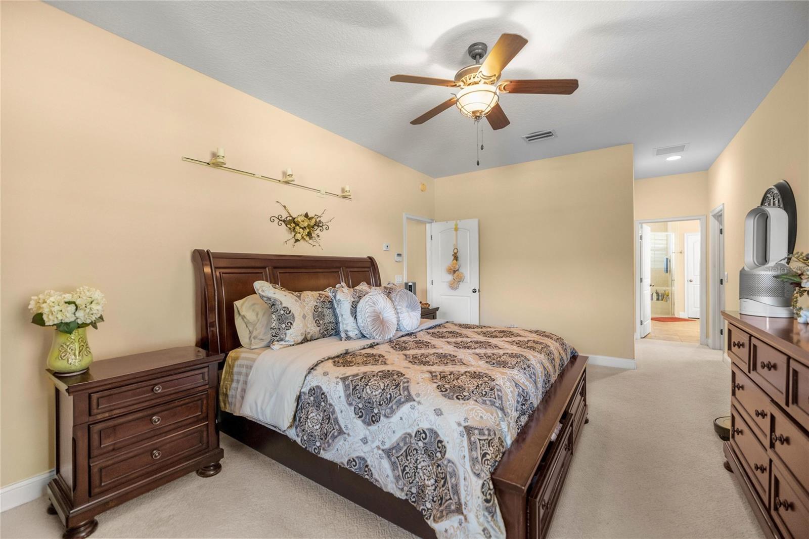 - Ceiling Fans(s), Crown Molding, High Ceilings, Primary Bedroom Main Floor, Split Bedroom, Stone Counters, Thermostat, Walk-In Closet(s)