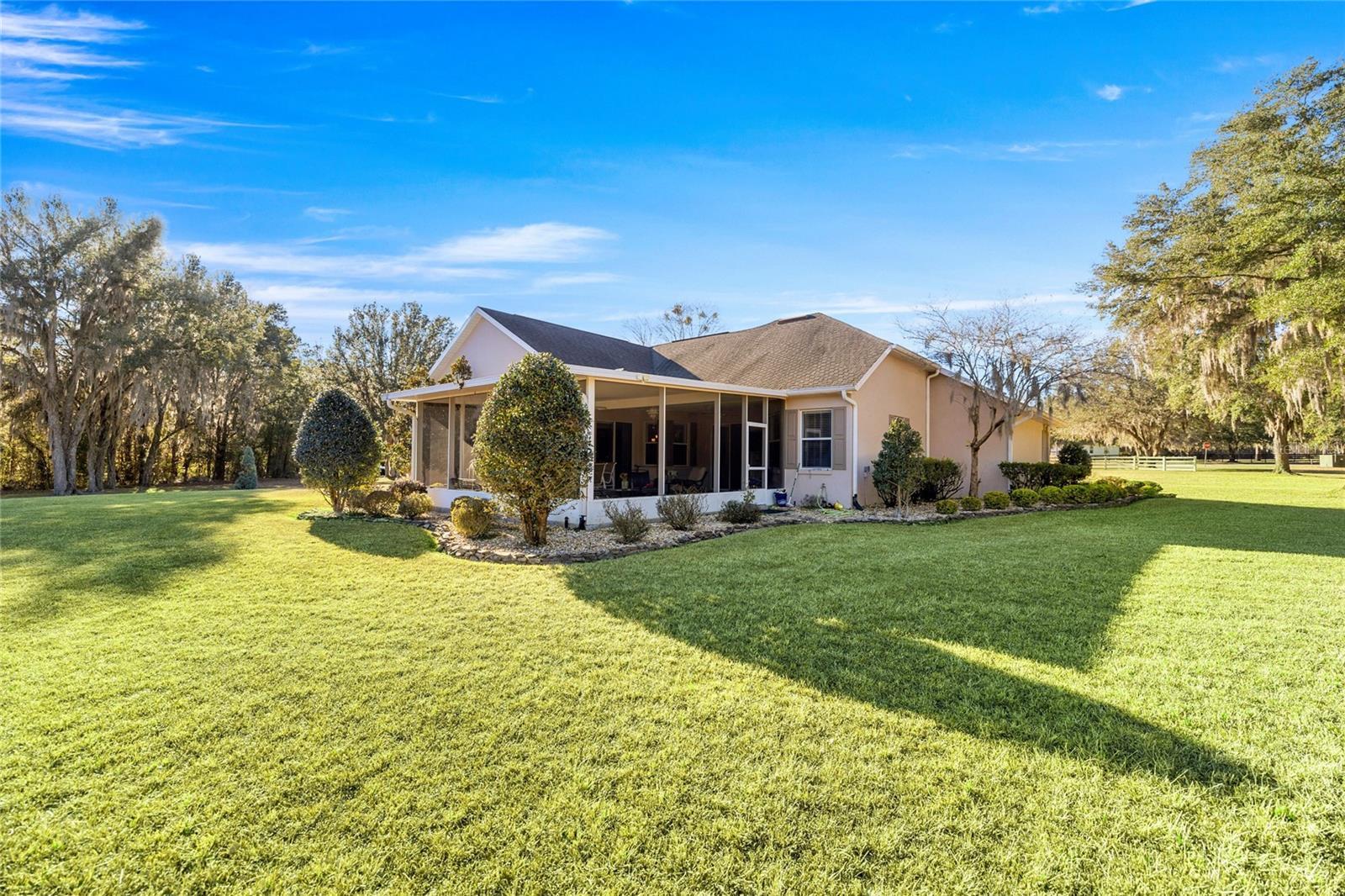 Exceptionally maintained by its current owners, this 3-bedroom, 2-bath home is located in the desirable Village at Hidden Lakes, a gated and deed-restricted equine community. Situated on a corner lot, the property offers added privacy and curb appeal, featuring stone accent upgrades on the front elevation and PVC 4-board fencing. The interior is well laid out and filled with natural light, offering comfortable living and dining spaces that flow seamlessly for everyday living or entertaining. Sliding glass doors open to a large, tiled screened lanai, providing the perfect space to relax and enjoy the peaceful surroundings. The primary suite is spacious and functional, complete with a walk-in closet and ensuite bath, while the additional bedrooms offer flexibility for guests or a home office. Additional features include an indoor laundry room, ample storage, and a 2-car garage. Conveniently located near Williston, Ocala, and major equestrian venues, this home offers a balance of space, privacy, and location.