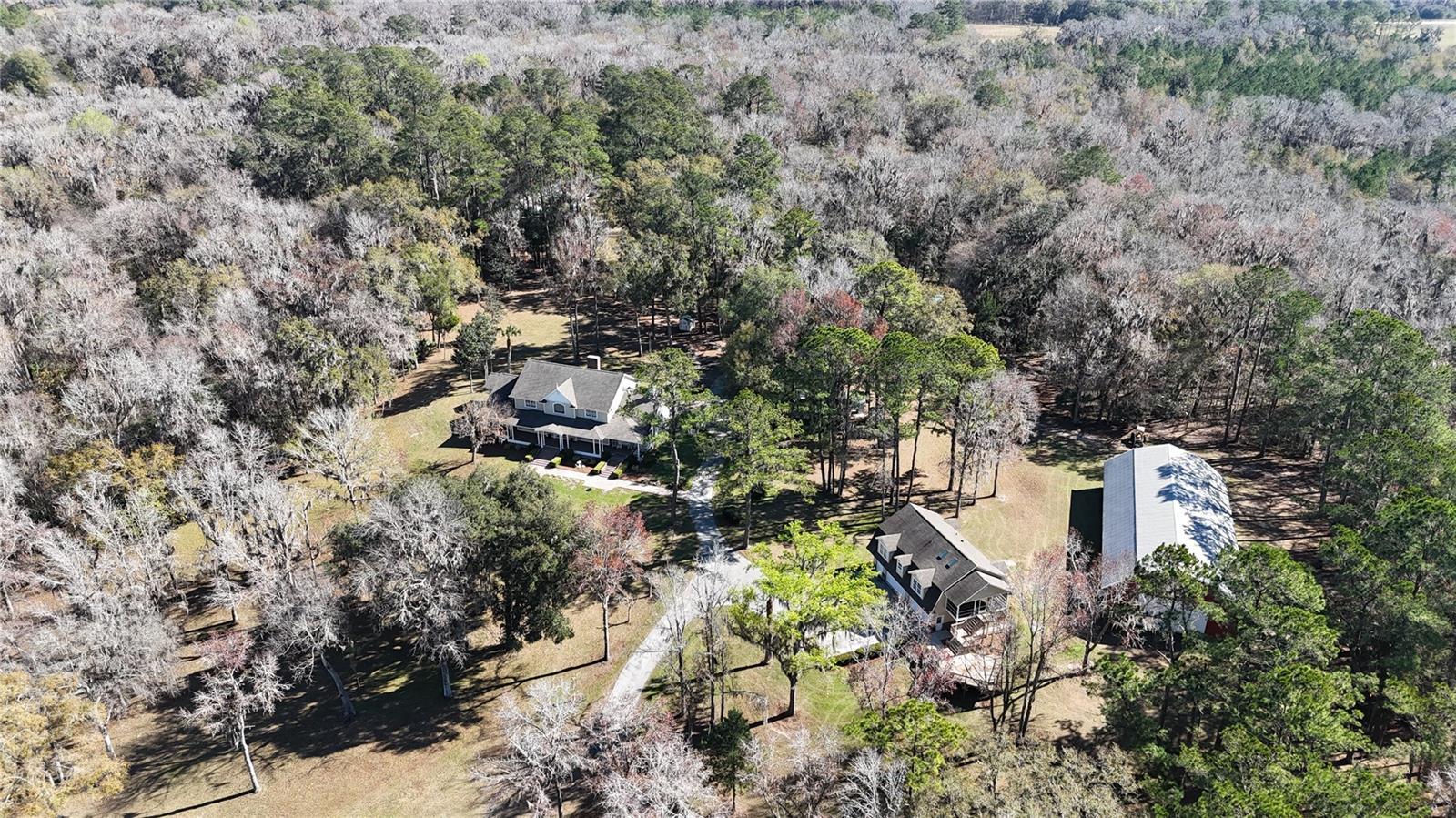 Located along HWY 225 in one of the most desirable equestrian corridors in NW Marion County, this remarkable 109.29+/-acre estate offers a rare blend of high elevation, craftsmanship, and versatility. The two-story residence commands serene views of a picturesque, stocked pond and rolling acreage, creating a setting that feels both private and enduring. This estate features 5 bedrooms and 3.5 baths, with the first floor being the heart of the home, providing a spacious 2-story ceiling height, with a grand central sitting gathering room, fireplace, and well-appointed bar, making it an exceptional space for hosting, entertaining, or enjoying game days with family and friends. The primary suite is designed as a true retreat. The suite offers a fireplace and a luxurious bath. The formal living space is perfect as an office or sitting room, and the formal dining room adds timeless elegance and flexibility for both everyday living and entertaining. Throughout the home, custom woodwork sets this residence apart, with handcrafted moldings, doors, and detailed finishes personally created on-site by the owner, a master carpenter, giving the residence a level of character, quality, and authenticity. A detached three-car garage and a fully equipped 2-bedroom, 2-bathroom guest house provide ideal accommodations for extended family, guests, or staff. The property is further enhanced by three large equipment buildings, well-suited for equestrian operations, agricultural use, a business owner, corporate investor, car enthusiast, or simply seeking a serene retreat with all the amenities. This property offers endless opportunities. Whether your passion is horses or cattle, the farm offers room to ride, train, and raise horses or cattle. The property is perimeter-fenced, providing ample parking for horse trailers, recreational vehicles, or a car enthusiast's collection. With its exceptional acreage, prime highway frontage, elevated setting, and proximity to Ocala’s world-renowned equestrian destinations, 13 miles to The World Equestrian Center, and 13 miles to HITS, this estate represents a legacy opportunity in the heart of horse country, perfectly suited for a private retreat, equestrian enterprise, or investment holding. Don’t miss out on this unique chance to own a piece of paradise!