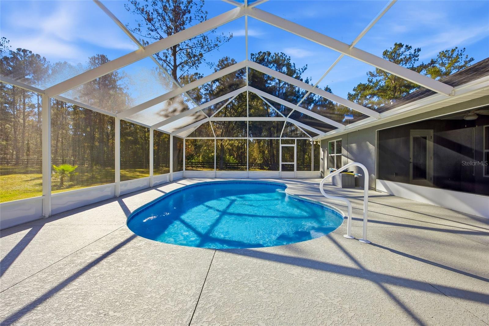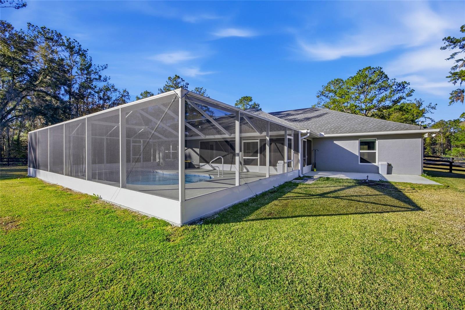 Welcome to your almost new 4-bedroom 3-bath custom home built by Triple Crown on 3.3 acres, partially fenced with an inground covered pool, high-end finishes, and built-ins. Located in the equestrian neighborhood of The Village of Hidden Lakes, minutes to WEC and HITS, and conveniently located between Gainesville and Ocala. You don't have to sacrifice square footage for acreage on this over 2600 sq ft home. Nature is truly in your backyard, with deer and turkey roaming the neighborhood, which has riding trails throughout. This home is truly one to see, fully ready with Starlink internet that can be transferred with the home, and non-permanent cameras throughout for anyone wanting to be a snowbird.
