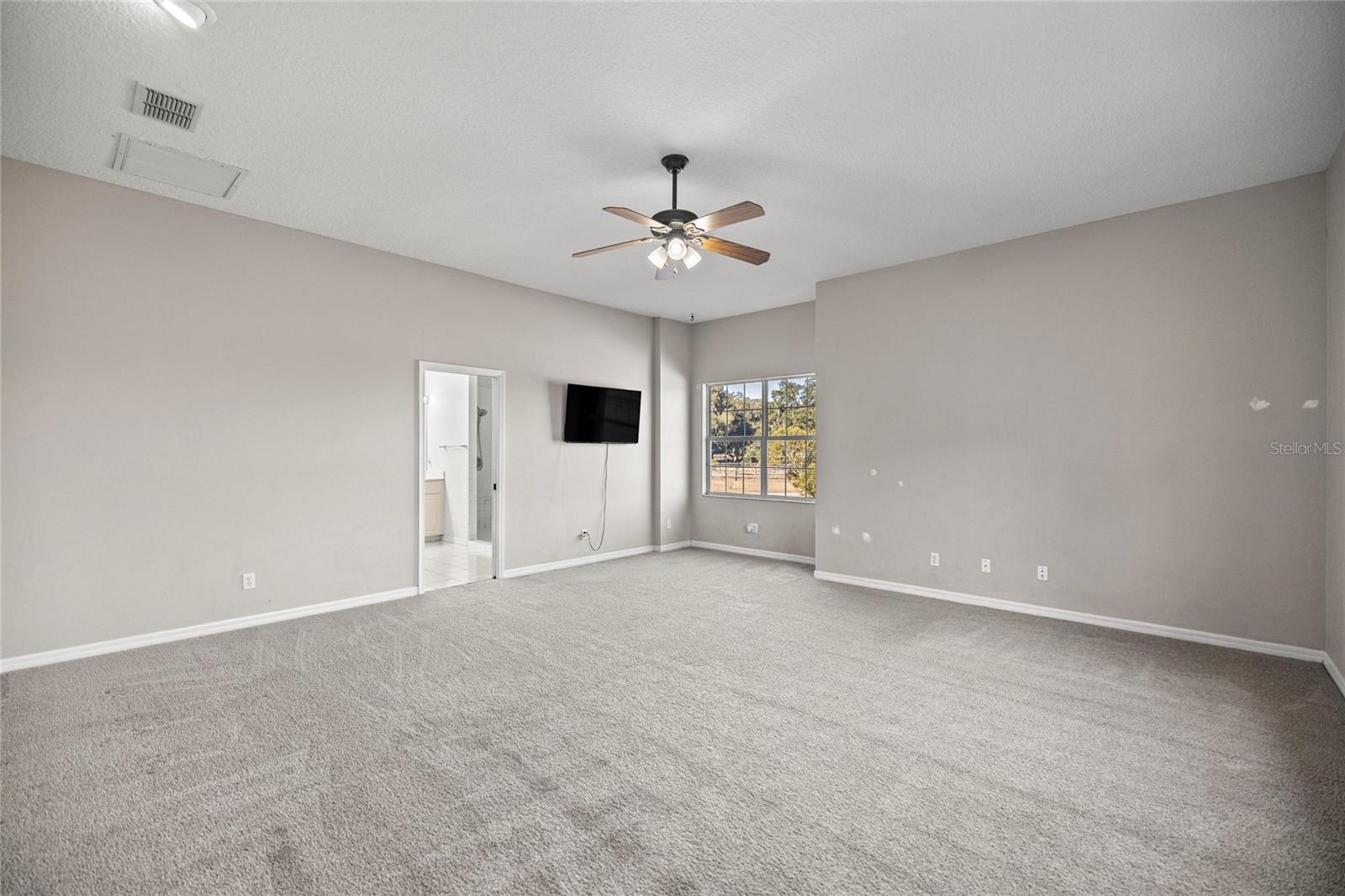 - Built-in Features, Ceiling Fans(s), Crown Molding, Eat-in Kitchen, Primary Bedroom Main Floor, Split Bedroom, Thermostat, Walk-In Closet(s), Window Treatments
