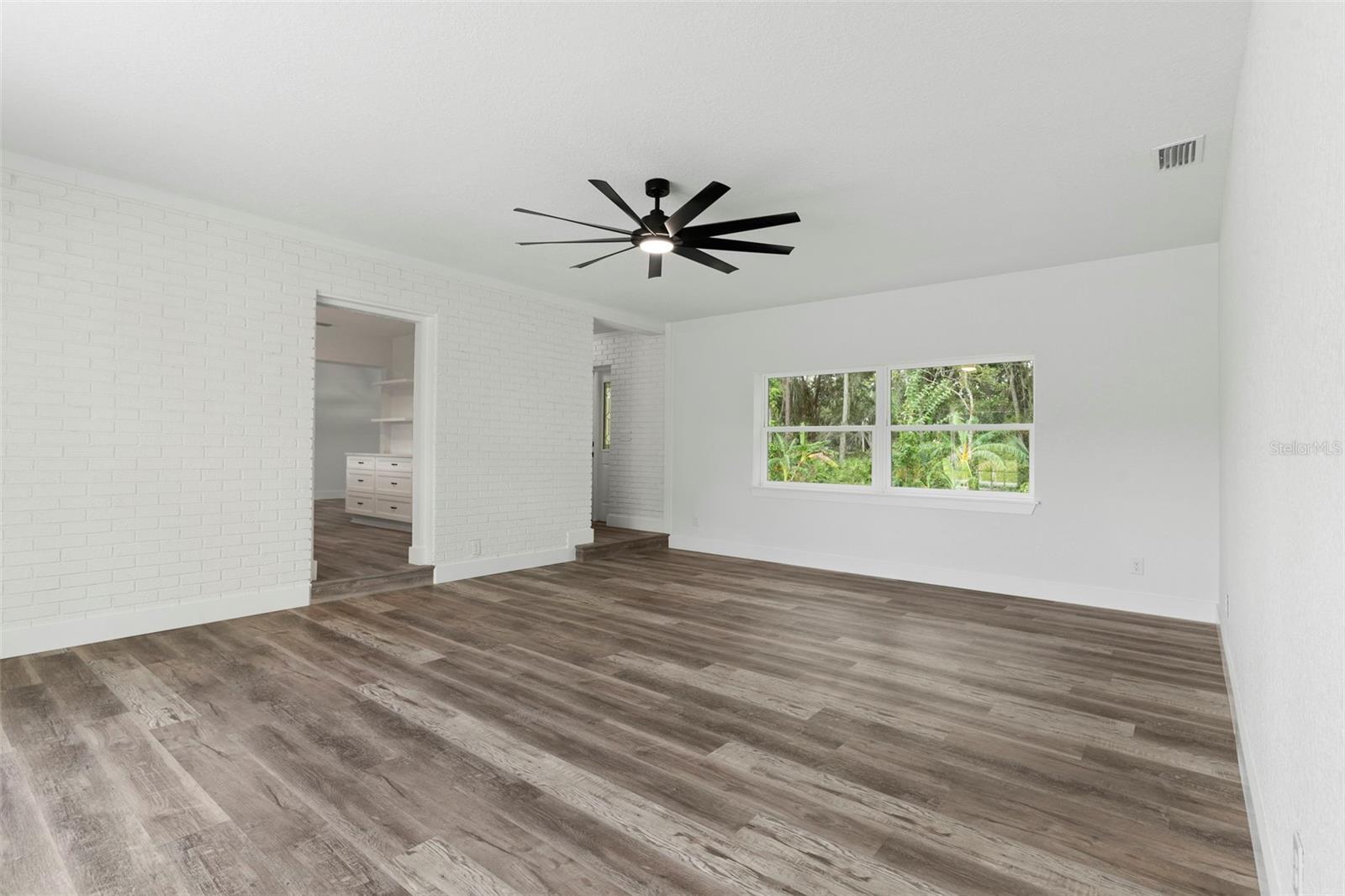 - Ceiling Fans(s), Eat-in Kitchen, Living Room/Dining Room Combo, Primary Bedroom Main Floor, Solid Surface Counters, Solid Wood Cabinets