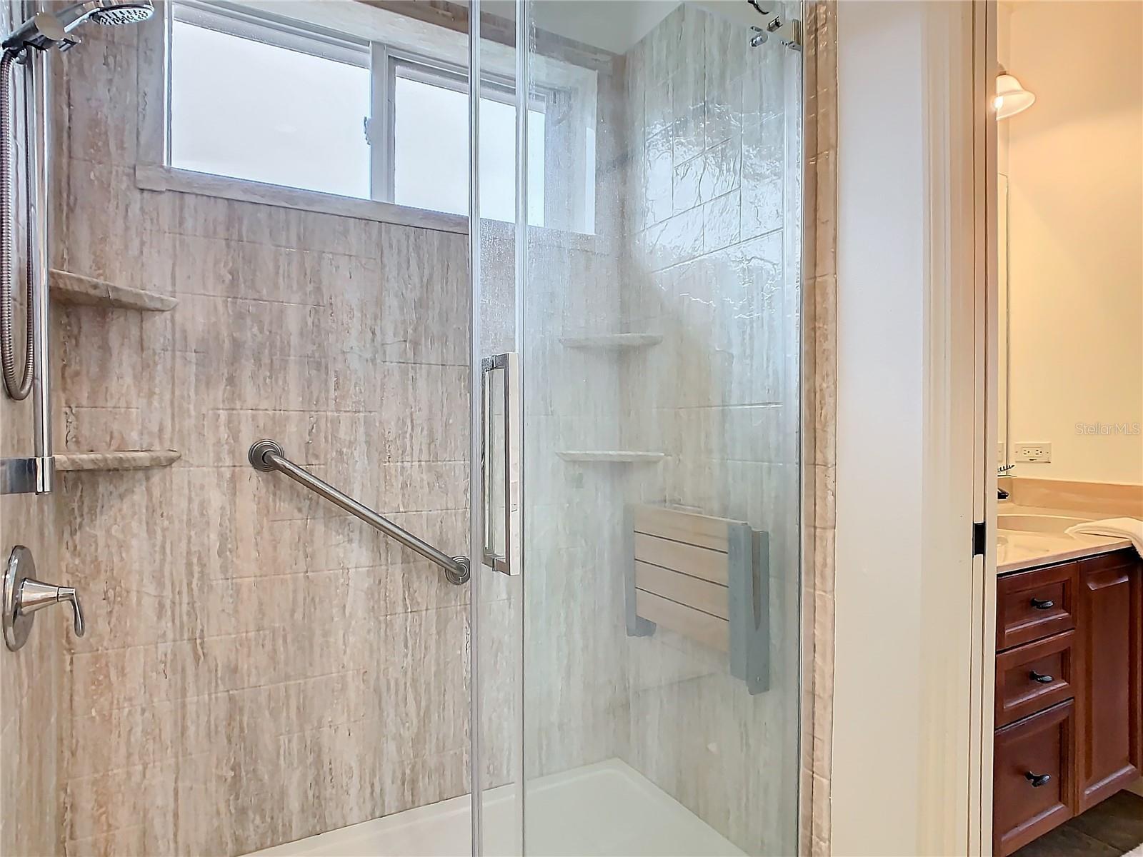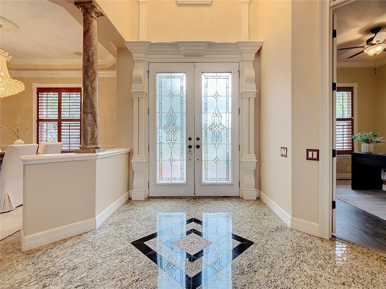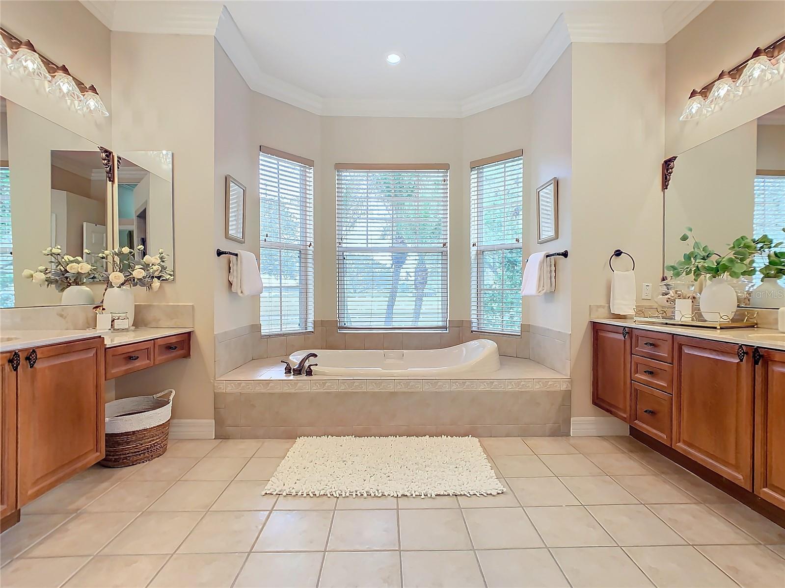 - Built-in Features, Ceiling Fans(s), Crown Molding, High Ceilings, Solid Wood Cabinets, Stone Counters, Thermostat, Walk-In Closet(s), Window Treatments