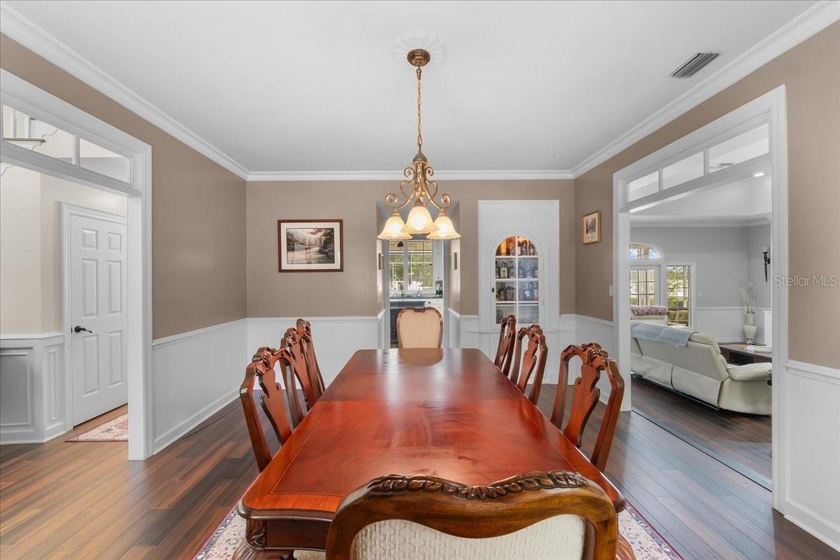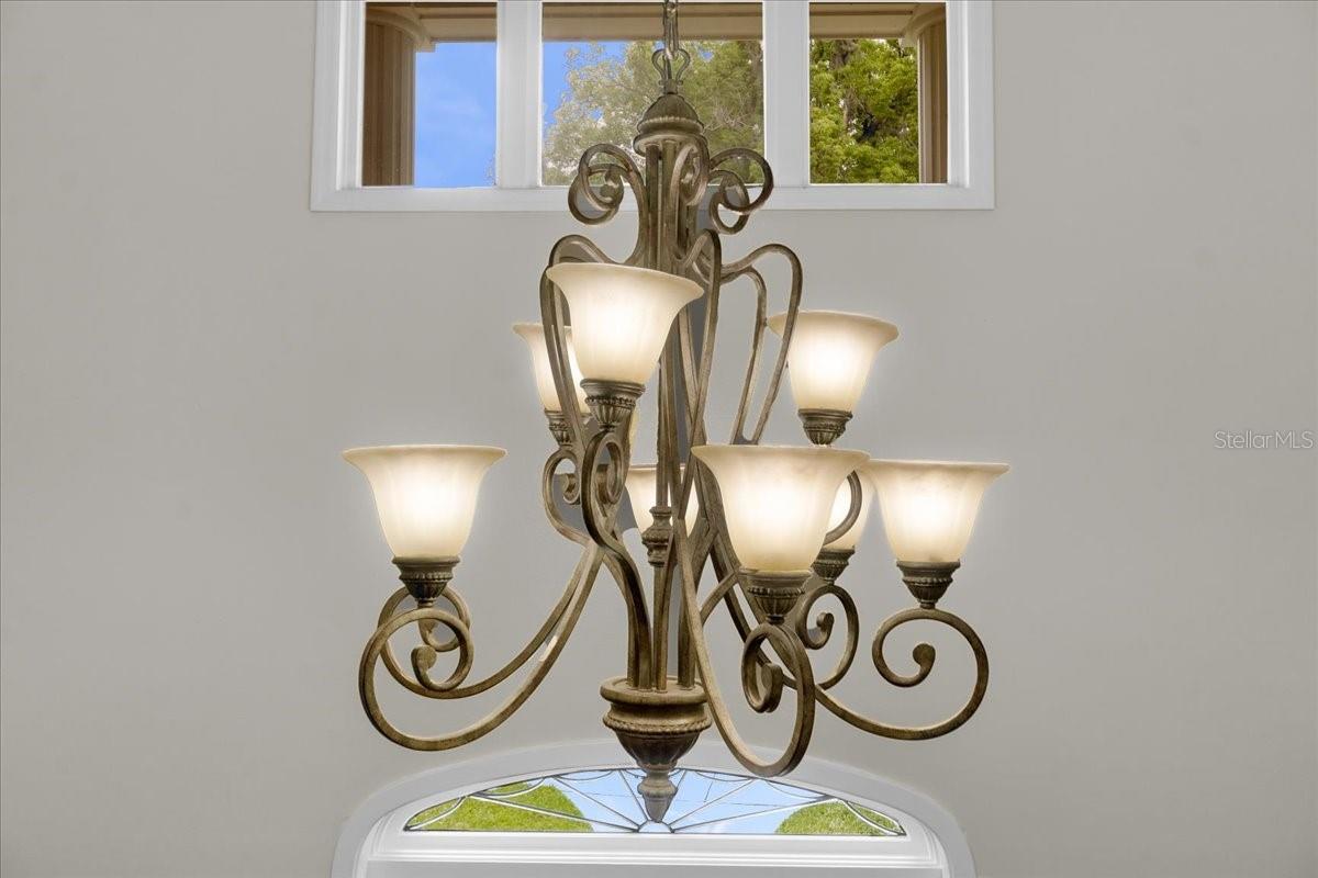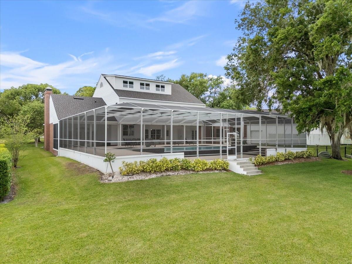 Winter Haven Chain-of-Lakes Executive Home on 1.86 Acres with Lake Eloise Frontage! Welcome to this elegant two-story home nestled on nearly 2 acres in a serene, park-like setting on Lake Eloise. From the moment you step into the grand foyer—with its sweeping curved oak staircase, wainscoting, and a stunning Palladian window—you'll appreciate the timeless craftsmanship throughout. The spacious living room centers around a large fireplace with a custom-designed Georgian mantel and matching built-in bookcases. In the formal dining room, you’ll find exquisite built-in cabinets, while the private library features rich, custom cherry wood bookcases. The gourmet kitchen is a chef’s dream, complete with a Jenn-Air double ovens, built-in breadbox, appliance garage, and cutting boards—all seamlessly integrated. The kitchen and breakfast area with an expansive 15x31 feet of space, ideal for both cooking and entertaining. Additional features include insulated Anderson casement windows, a dramatic two-story Greek Revival front portico, and wide 4-foot hallways throughout. Thoughtful details such as keystone window headers, dentil molding under the eaves, and decorative quoins on the brick front elevation add architectural charm. Enjoy your heated Infinity saltwater Pool with stunning views of the shaded backyard and Lake Eloise. Practical touches abound, including an underground dog fence, irrigation system, deep well with water conditioning, dual hot water heaters (including one with a heat recovery unit), and a dual-zone A/C system. The interior also boasts a well-equipped laundry room with cabinets, a built-in ironing board, and a laundry chute. Storage is plentiful, with easily accessible closets and attic spaces. Architectural features continue indoors with transom windows above the archways in the dining and living rooms, and a beautiful sunburst elliptical window with sidelights welcoming guests at the front door.