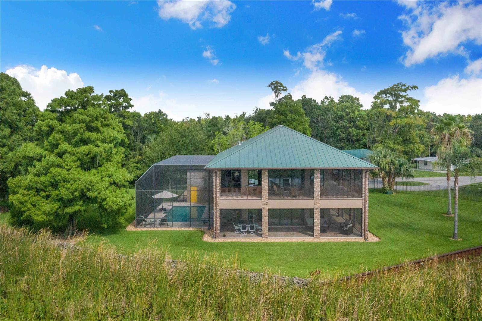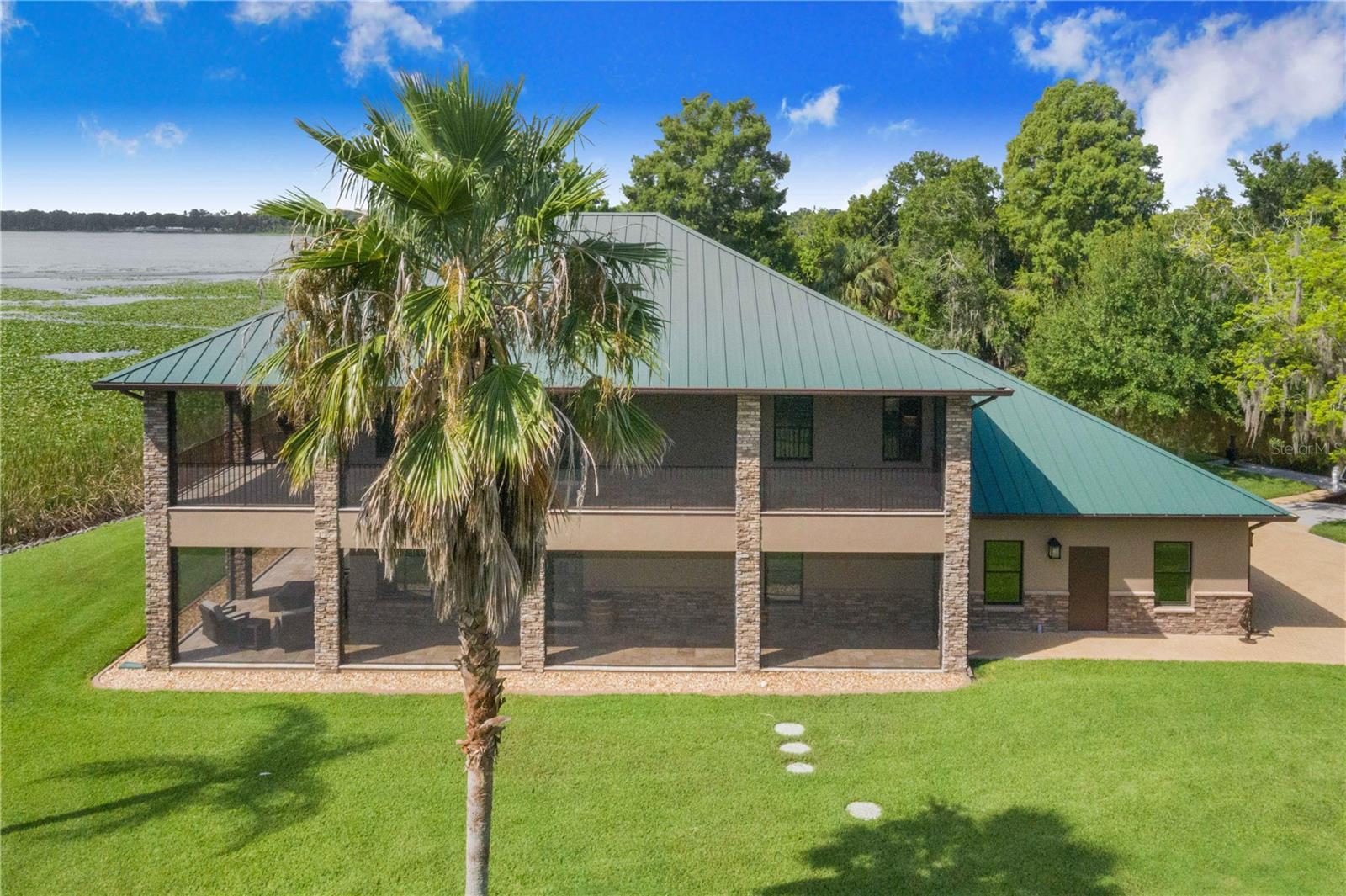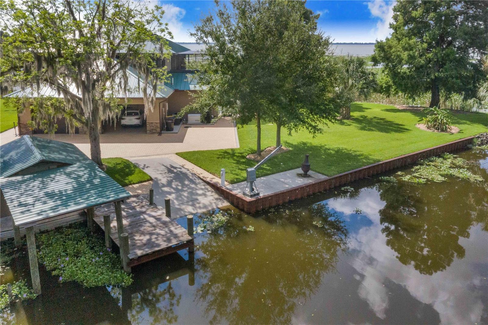 One-of-a-Kind Lakefront Oasis on Lake Pierce! This custom-built 3-bedroom, 2 full bath, 2 half bath pool home is truly one of a kind, offering unmatched views of Lake Pierce from every corner of the property. Featuring both upstairs and downstairs fully equipped living spaces—including kitchens, living rooms, bedrooms, dinettes, and laundry rooms—this home is ideal for multi-generational living or a private in-law suite. Access between levels is made easy with a built-in elevator. Enjoy resort-style living with a heated saltwater pool surrounded by beautiful lighting, a convenient half bath near the pool area, and a dedicated pool equipment storage room. Entertain effortlessly with a full Bluetooth-enabled sound system featuring six outdoor speakers, plus separate Bluetooth sound systems and speaker setups for both upstairs and downstairs living areas. The wraparound porches on both levels are finished in rich Pecky Cypress, offering the perfect place to relax and take in the scenery. This lakefront paradise also includes a private boat ramp, boathouse with lift, and a matching metal-roofed pole barn with four stalls and two 50-amp RV hookups. Decorative pavers tie the look together seamlessly. Additional features include a whole-house Generac generator powered by an in-ground 500-gallon propane tank, custom insulated Hunter Douglas blackout blinds, elegant travertine flooring throughout, and a spacious three-car garage with a separate storage area. Every inch of this property has been thoughtfully designed with comfort, luxury, and functionality in mind. With too many upgrades to list, this is a must-see in person. Schedule your private tour today! THIS HOME IS SOLD WITH 2 PARCELS .65 ACRES TOGETHER