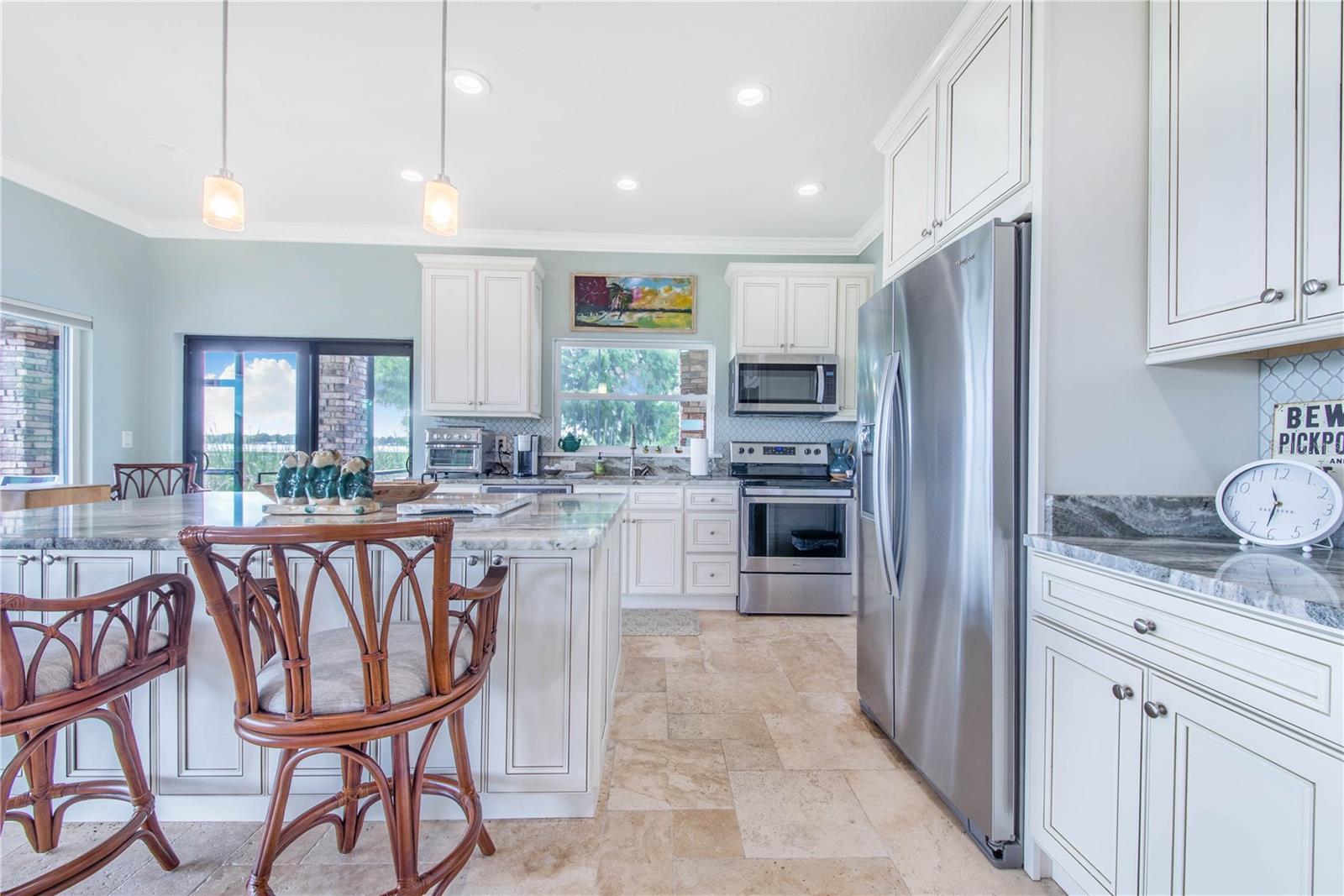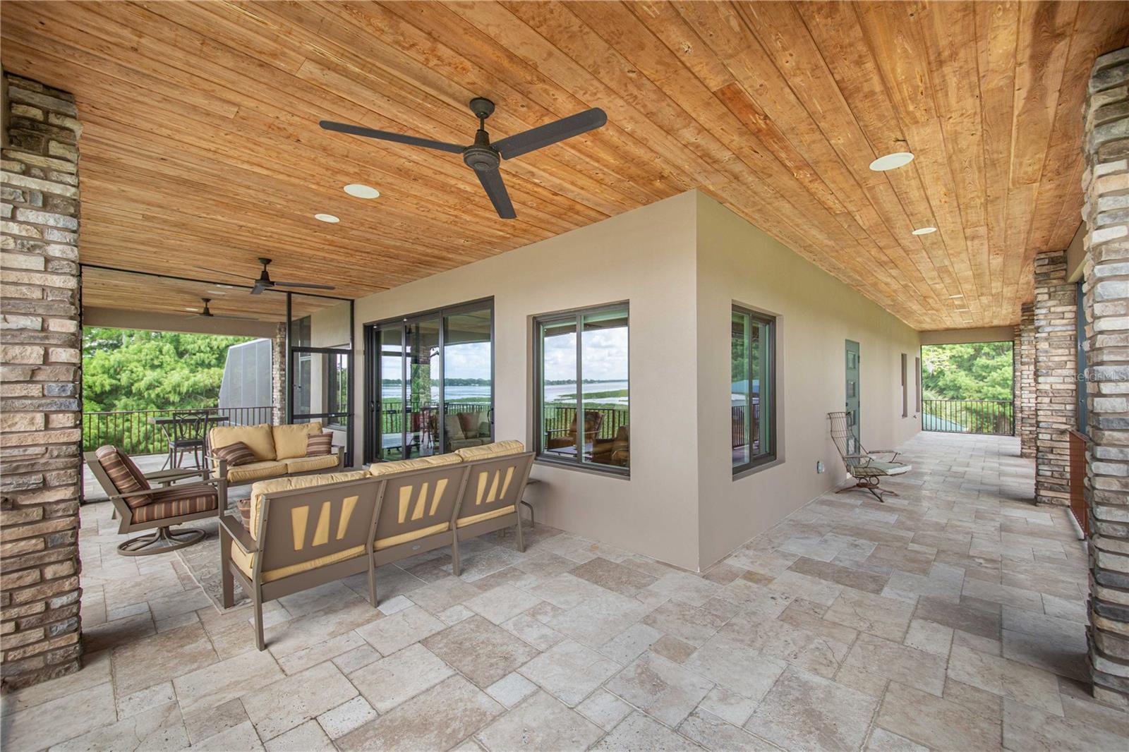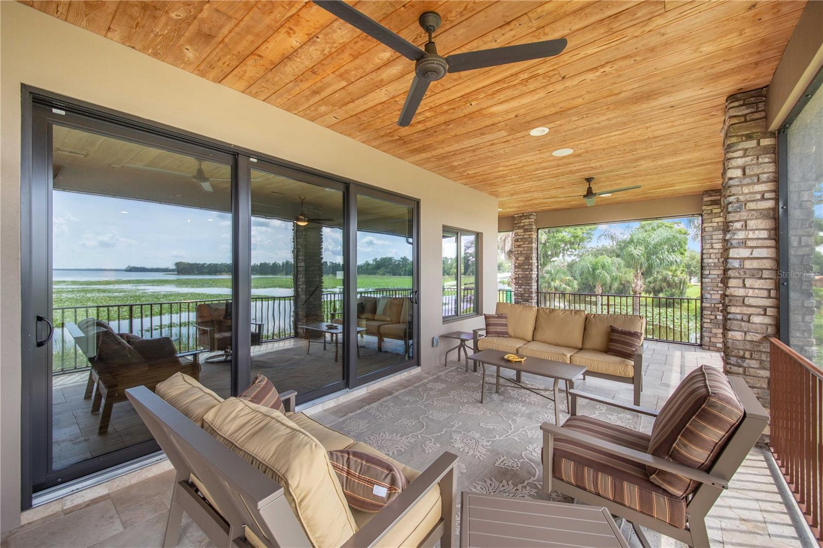 One-of-a-Kind Lakefront Oasis on Lake Pierce! This custom-built 3-bedroom, 2 full bath, 2 half bath pool home is truly one of a kind, offering unmatched views of Lake Pierce from every corner of the property. Featuring both upstairs and downstairs fully equipped living spaces—including kitchens, living rooms, bedrooms, dinettes, and laundry rooms—this home is ideal for multi-generational living or a private in-law suite. Access between levels is made easy with a built-in elevator. Enjoy resort-style living with a heated saltwater pool surrounded by beautiful lighting, a convenient half bath near the pool area, and a dedicated pool equipment storage room. Entertain effortlessly with a full Bluetooth-enabled sound system featuring six outdoor speakers, plus separate Bluetooth sound systems and speaker setups for both upstairs and downstairs living areas. The wraparound porches on both levels are finished in rich Pecky Cypress, offering the perfect place to relax and take in the scenery. This lakefront paradise also includes a private boat ramp, boathouse with lift, and a matching metal-roofed pole barn with four stalls and two 50-amp RV hookups. Decorative pavers tie the look together seamlessly. Additional features include a whole-house Generac generator powered by an in-ground 500-gallon propane tank, custom insulated Hunter Douglas blackout blinds, elegant travertine flooring throughout, and a spacious three-car garage with a separate storage area. Every inch of this property has been thoughtfully designed with comfort, luxury, and functionality in mind. With too many upgrades to list, this is a must-see in person. Schedule your private tour today! THIS HOME IS SOLD WITH 2 PARCELS .65 ACRES TOGETHER