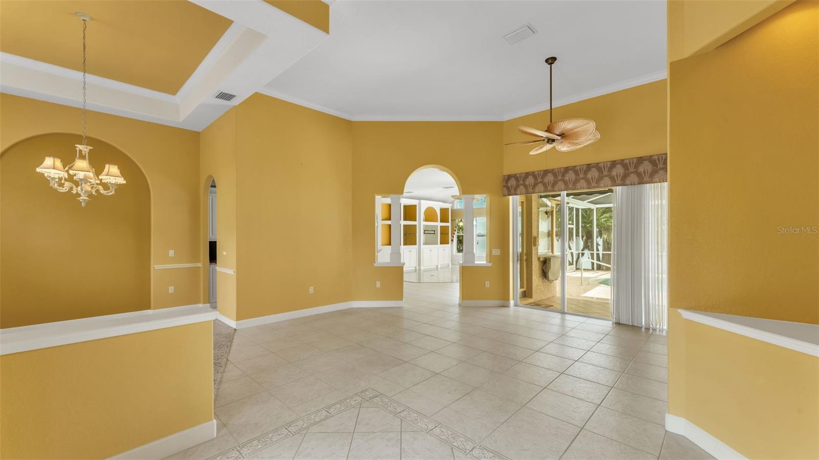 Welcome to this stunning 3 bedroom, 3 bathroom lake front pool home offering gorgeous views of Lake Ruby. Set on a prime waterfront lot, the property includes an oversized 3-car garage and a private boat dock complete with an automated boat lift, making it ideal for boating and lakefront living. Designed with entertaining in mind, the open layout seamlessly blends indoor and outdoor spaces. Sliding glass pocket doors open to a spacious lanai with a screened-in pool and spa, while a remote-controlled awning provides extra shade for relaxing afternoons or gatherings with friends and family. The master suite is a true retreat, featuring a luxurious bathroom with dual sinks, stone countertops, a garden tub, and a walk-in shower. The kitchen is equally impressive with granite countertops, a breakfast bar, and newer appliances. Additional features throughout the home include vaulted ceilings, crown molding, custom window treatments, and blinds that add style and sophistication. This home combines comfort, elegance, and waterfront living all in one.