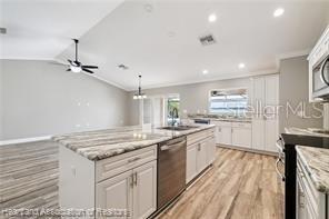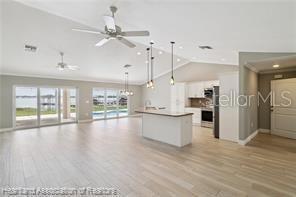 - Cathedral Ceiling(s), Ceiling Fans(s), Crown Molding, Kitchen/Family Room Combo, Open Floorplan, Solid Surface Counters, Split Bedroom, Thermostat, Walk-In Closet(s)
