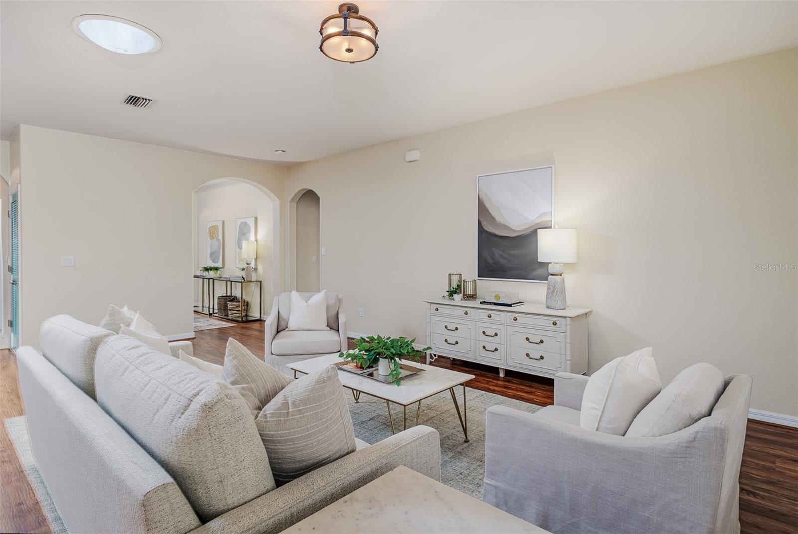 COME SEE THIS BEAUTIFUL POOL HOME IN THE HEART OF CENTRAL FLORIDA! Gently meander through the charming gated community of Hampton Cove to this residence that offers a well-designed floorplan with a perfect blend of open-concept living areas and defined spaces. This spacious 4-bedroom, 3-bathroom home presents an inviting screened lanai entrance into the 2,720 SqFt of modern luxury living. The impressive foyer leads into the great room that truly has it all, with the living room, dining area, kitchen and sliding glass doors to the lanai and pool, all working in harmony for everyday living and when entertaining. A kitchen island links the areas and provides seating for casual meals or for serving space. Gorgeous granite counters, pendant lighting and smart backsplash compliment the beautiful cabinetry. A bonus room stands by the foyer and is perfect for a formal living room, office or den, allowing for a dedicated workspace or flex space to suit your needs. The home's split floorplan ensures privacy for the luxurious master suite, complete with extra space for seating, a large walk-in closet and an en-suite bathroom featuring a soaking tub, dual vanities and a walk-in shower. Three additional bedrooms plus two more bathrooms provide ample space for a growing family or house guests. All bedrooms have brand new neutral tone carpeted floors, while the living areas have attractive wood-look laminate flooring and the wet areas all have tile floors. Paver bricks cover the lanai, pool deck, the driveway and sidewalk. The screened lanai overlooks the privacy fenced backyard for relaxing in your outdoor space in peace; it's the ideal spot for barbecues, gatherings and enjoying a dip in the pool. This location is convenient to US Hwy 27, all of Winter Haven for shopping, schools, restaurants, medical and churches. It’s a short drive to I-4 for Orlando, Tampa, Gulf or Ocean Beaches; a great Central Florida location! Call today, schedule your private viewing of this fabulous pool home!