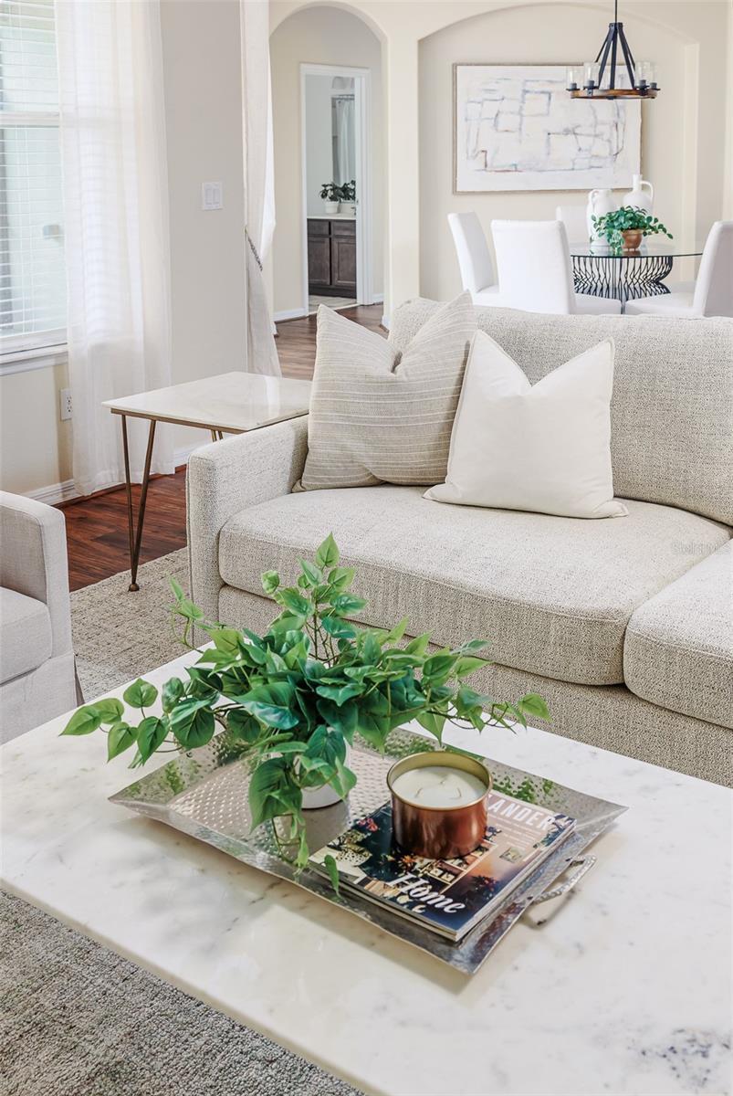 - Ceiling Fans(s), Eat-in Kitchen, Kitchen/Family Room Combo, Living Room/Dining Room Combo, Open Floorplan, Solid Wood Cabinets, Split Bedroom, Stone Counters, Vaulted Ceiling(s), Walk-In Closet(s), Window Treatments