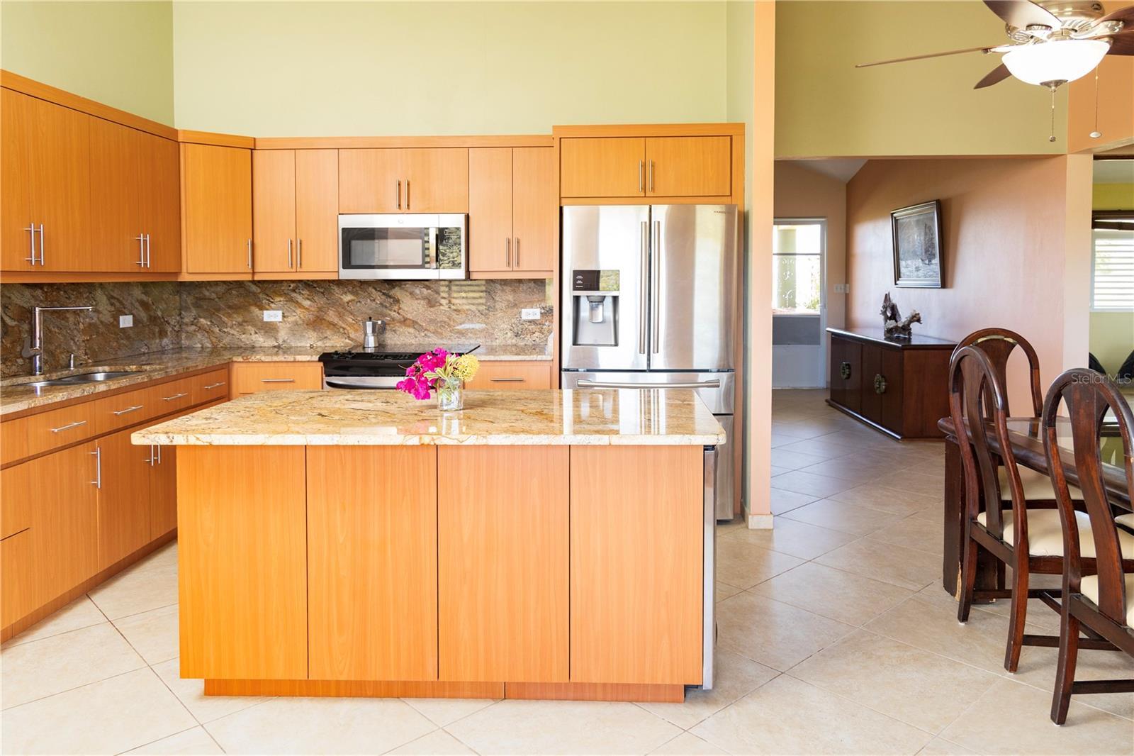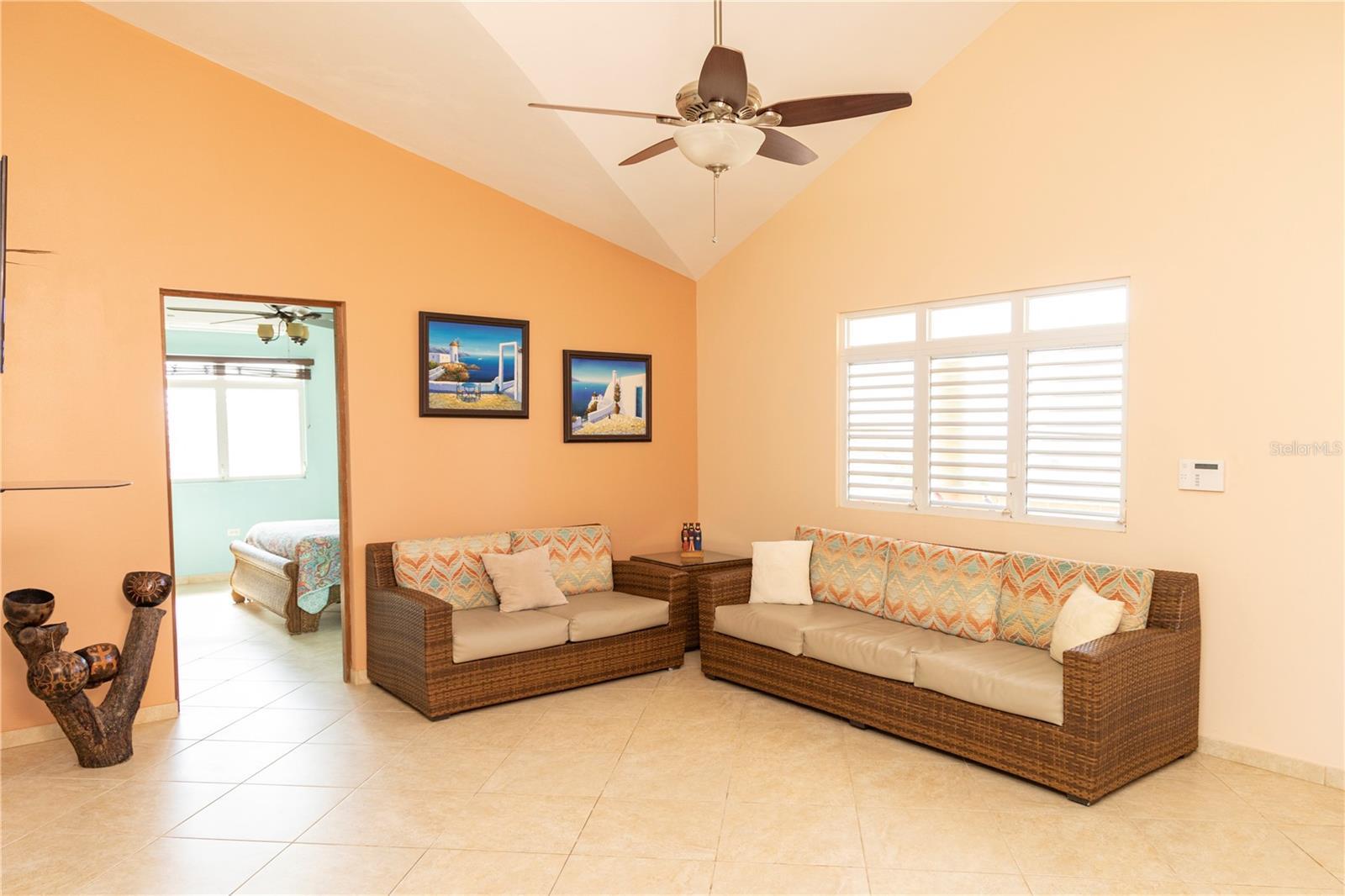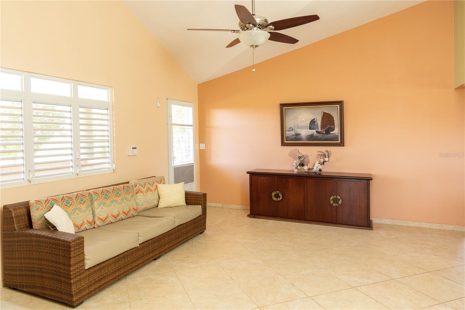 From its grand entrance in the bucolic neighborhood of Puerto Real to its vaulted interiors, this family owned residence has a stately appearance. The elegant home is set back on a hilltop and surrounded by cool trade winds, majestic views of the Caribbean, and tranquil rolling hills and meadows. The property has 1.6 acres of privacy, the land is scattered with a myriad of fruit trees, including breadfruit, mango, pigeon peas, soursop, gooseberry, lemon, and a variety of plantains and bananas. Built to withstand, the sturdy structure of poured concrete is comfortably designed, appointed, and spacious. The property features an open and generously sized living room and dining room with granite countertops, three bedrooms, two bathrooms and a separate two bed, one bath guest bungalow. Well fenced and fully equipped with a security system, air conditioning, solar system, generator, a dual chamber cistern that holds a rain water and public water supply, and a separate two car garage. The large garage has high ceilings and can hold a second story and be easily converted into an additional unit. Easily accessible from the airport and at just five minutes from Esperanza, Playa Negra and the Playa Grande reserve, this home has all the comforts one could ask for. Previously sold with 2 adjacent lots that have now been sold, price changes reflect the selling off of the 2 adjacent lots.