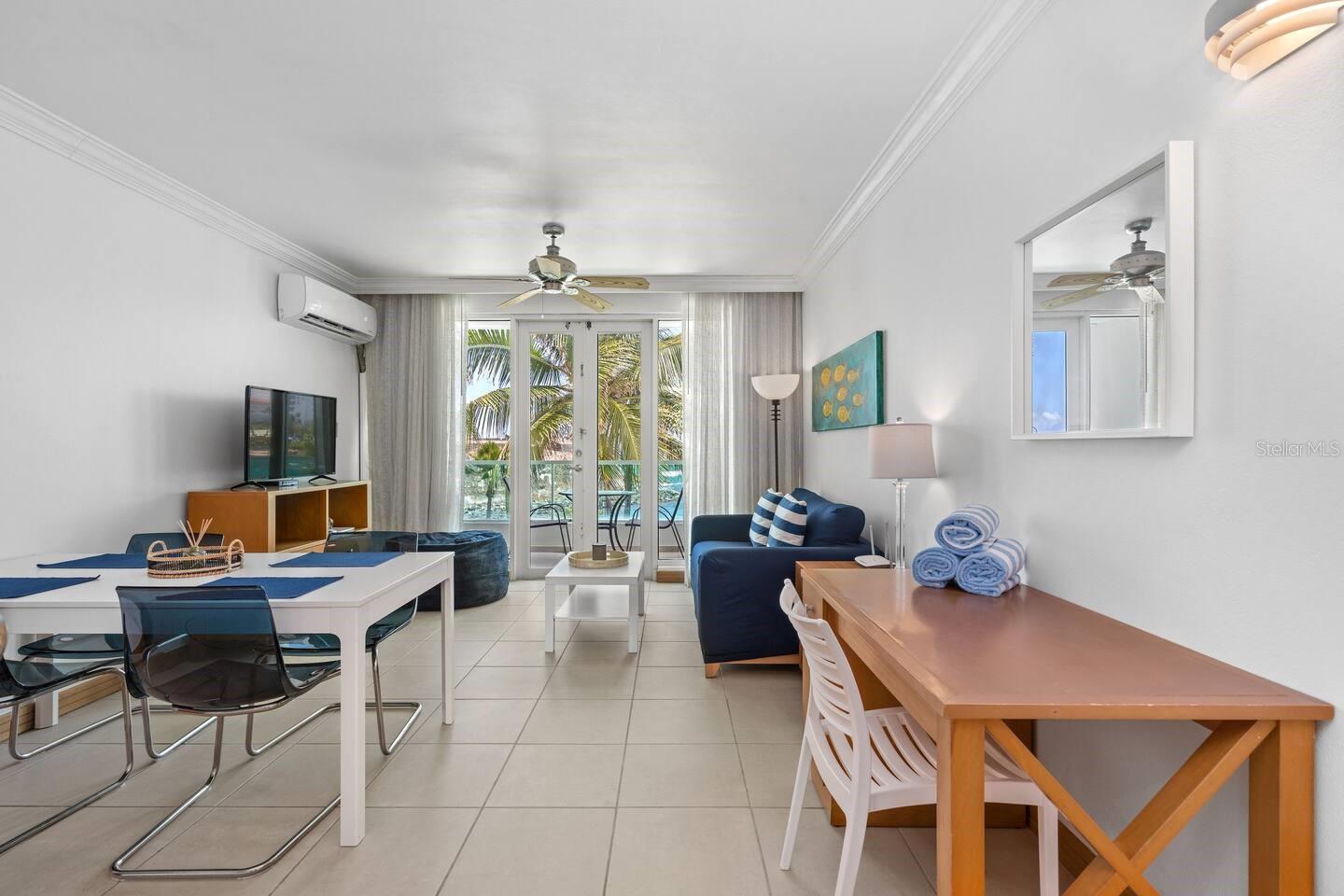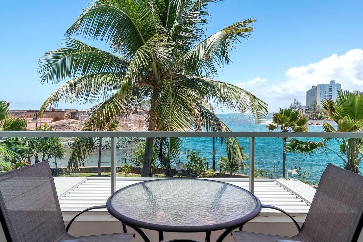 Condo?Hotel private units by ownership the Villas may be rent short or long term. Besides Caribe Hilton and San Geronimo Fort, historic place and US. National Register., built in 1791. Balcony in front of the Atlantic Ocean, Dos Hermanos Bridge and acroos other Hotels and public beach in Ashford Avenue. There is a big pool and heated jacuzzy..It have 2 different studios, you can rent individually or together. Very good inversion or for your relax leaving. Have Concierge and Security Service 24/7. Lives in Condado, Puerta de Tierra area. Besides Parque Munoz Rivera, huge for walking, reading, meeting friends. Pet friendly.