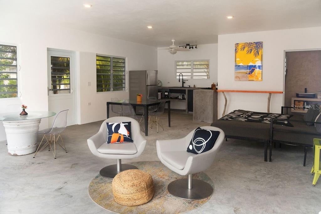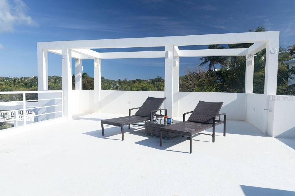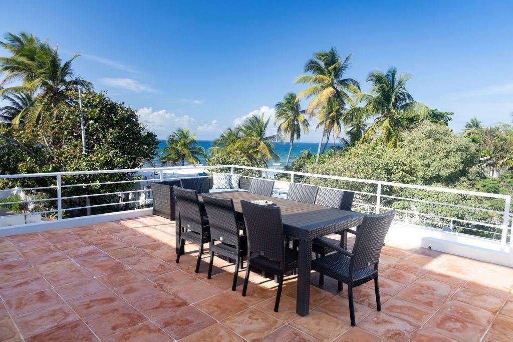Casa Solsticio is a gem situated just steps away from La Chata beach in Bravos de Boston. Inside, the ocean’s presence and refreshing cross breeze can be felt from every corner. Each space masterfully interconnects with an outdoor balcony or terrace, doubling the size of the living quarters and allowing natural light to flood the interiors. With it’s clean geometric lines and saltillo tiles, the principal structure’s architecture has a western mediterranean look, similar to that of the Bealearic Islands. The first level has an ample commercial style kitchen, dining room, and living room with a street-side porch, spacious enough for a outdoor seating and lounging. The principal bedroom has an ensuite bathroom with an outdoor shower and is adjoined to a private solarium terrace that has a solar powered lap pool shaded from the afternoon sun. On the second level is a full private loft with an open concept living room, bedroom, private bathroom, and a generous walk-in closet. The loft has both a balcony and a spacious terrace with a full outdoor kitchen and dining area. Above, a rooftop promenade has amazing views of the turquoise waters. Electricity connections are also available to light up the space and add music for rooftop cocktail parties. Adjacent to the principal house is a separate studio apartment with a full kitchen, bathroom dining, living, and bedroom spaces. The studio also has it’s own rooftop terrace so guests can enjoy soaking up the rays or the starry nights. Located in a quiet residential street that is just a five minute drive to the ferry and downtown. The home is tastefully furnished, is equipped with AC in all the spaces, and has a laundry area. With two carports that have space for up to five cars, this is the perfect home for living and hosting.