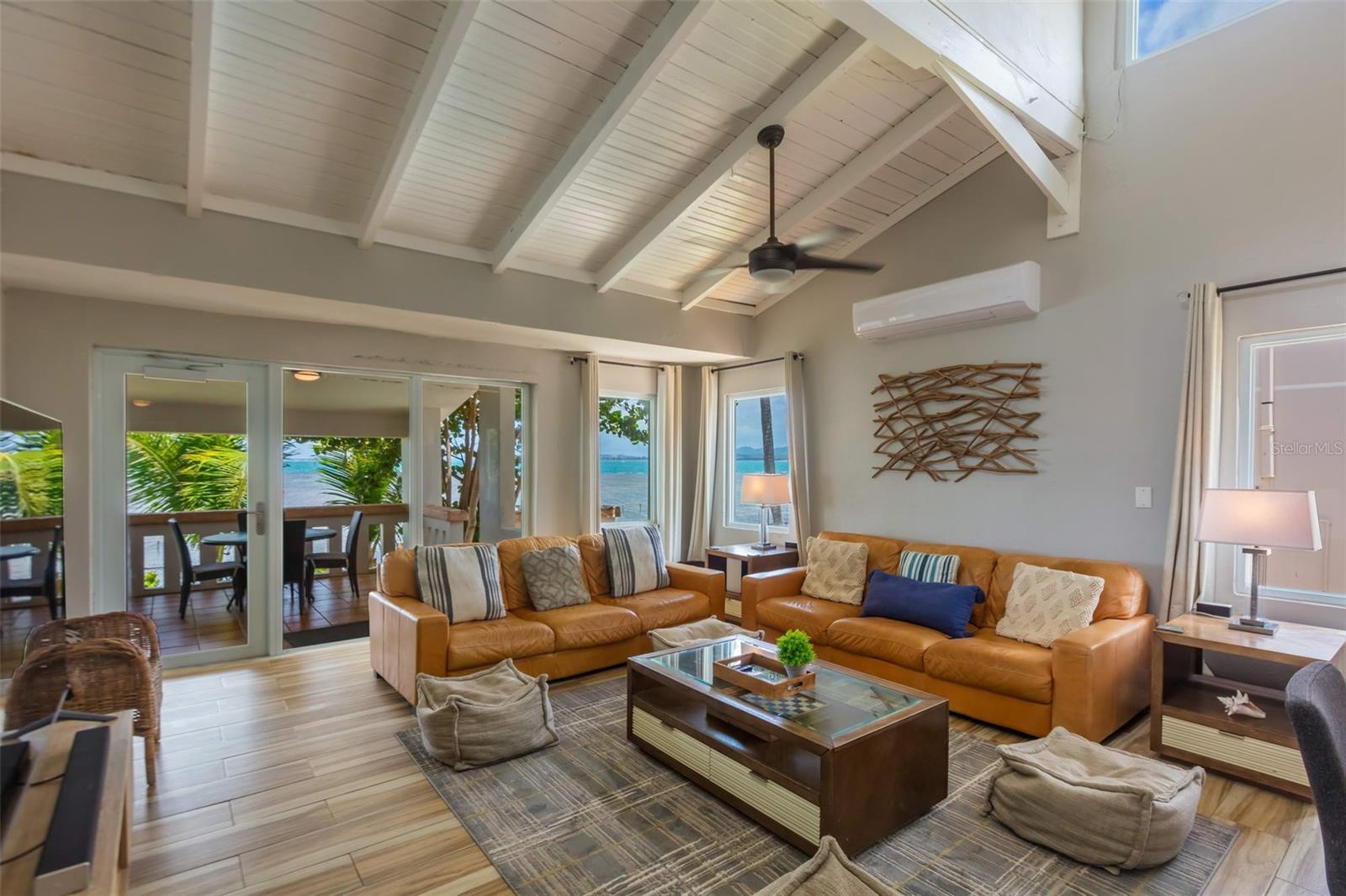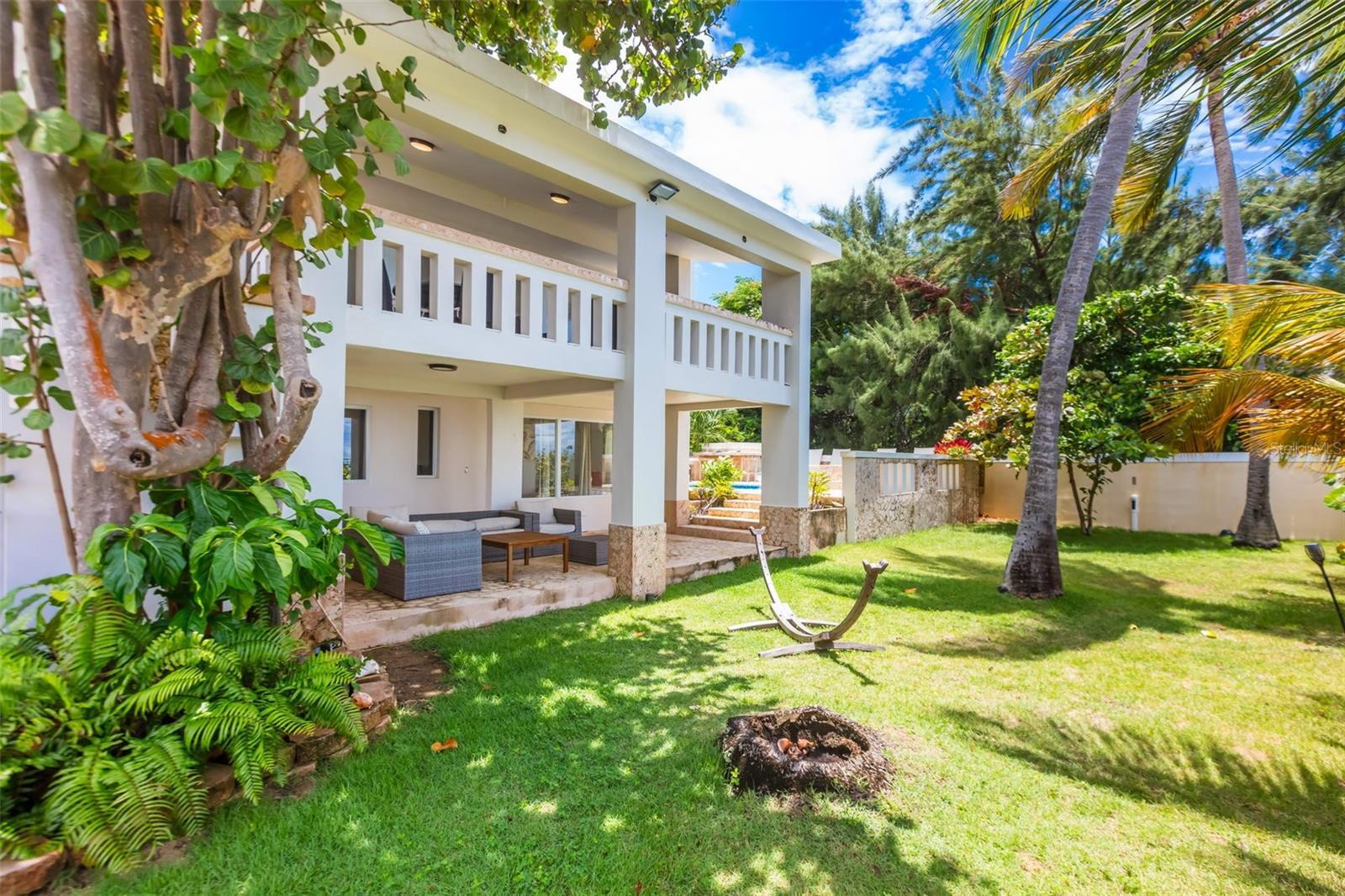Paradise found in this oceanfront sanctuary, where contemporary elegance meets Caribbean charm. This 4,316 Sq. Ft. villa, set on a 1,017 Sq. Mt. lot, offers 8 bedrooms and 6.5 bathrooms, designed for those appreciate the essence of coastal living. The main house: The first-floor features 2 bedrooms, living and dining area with a kitchenette, and a full bathroom. The living room opens directly to the patio and pool, offering easy access to the beach via a staircase. The second floor features 2 bedrooms, each with their private balconies, 2 full bathrooms, a fully equipped kitchen, and a bright living room with a balcony showcasing panoramic ocean views. The third floor provides a tranquil retreat with a bedroom, living room, full bathroom, and a large roof deck with a staircase from the oceanside balcony that descends to the beach, inviting you to relax in the turquoise waters or embark on a kayaking or paddleboarding adventure. The property includes a separate guest house with 3 bedrooms, 2 full bathrooms, and two private entrances—one serving the 2-bedroom and the other for the 1-bedroom. This setup provides flexibility for extended family stays or rental opportunities, including its current use for Airbnb. The property's design offers the option for private use or (4) four independent rentals, presenting an exceptional investment opportunity for both short-term and long-term stays. This compound features a well-appointed outdoor kitchen, perfect for entertaining by the pool and jacuzzi. It also offers three covered terraces, carport, a 20 KW power generator, and a 500-gallon water cistern. Located in the vibrant Río Grande area, this coastal haven is just 35-40 minutes from San Juan Airport. It’s a short drive from the renowned Río Mar Wyndham Resort, which offers a championship golf course and stunning beach. Nearby, the Kioskos de Luquillo provide a taste of exquisite local cuisine, while the El Yunque National Forest offers adventures amidst lush rainforests. Boating enthusiasts will appreciate the proximity to marinas, and attractions in Luquillo, Fajardo, Carolina, and San Juan are easily accessible.