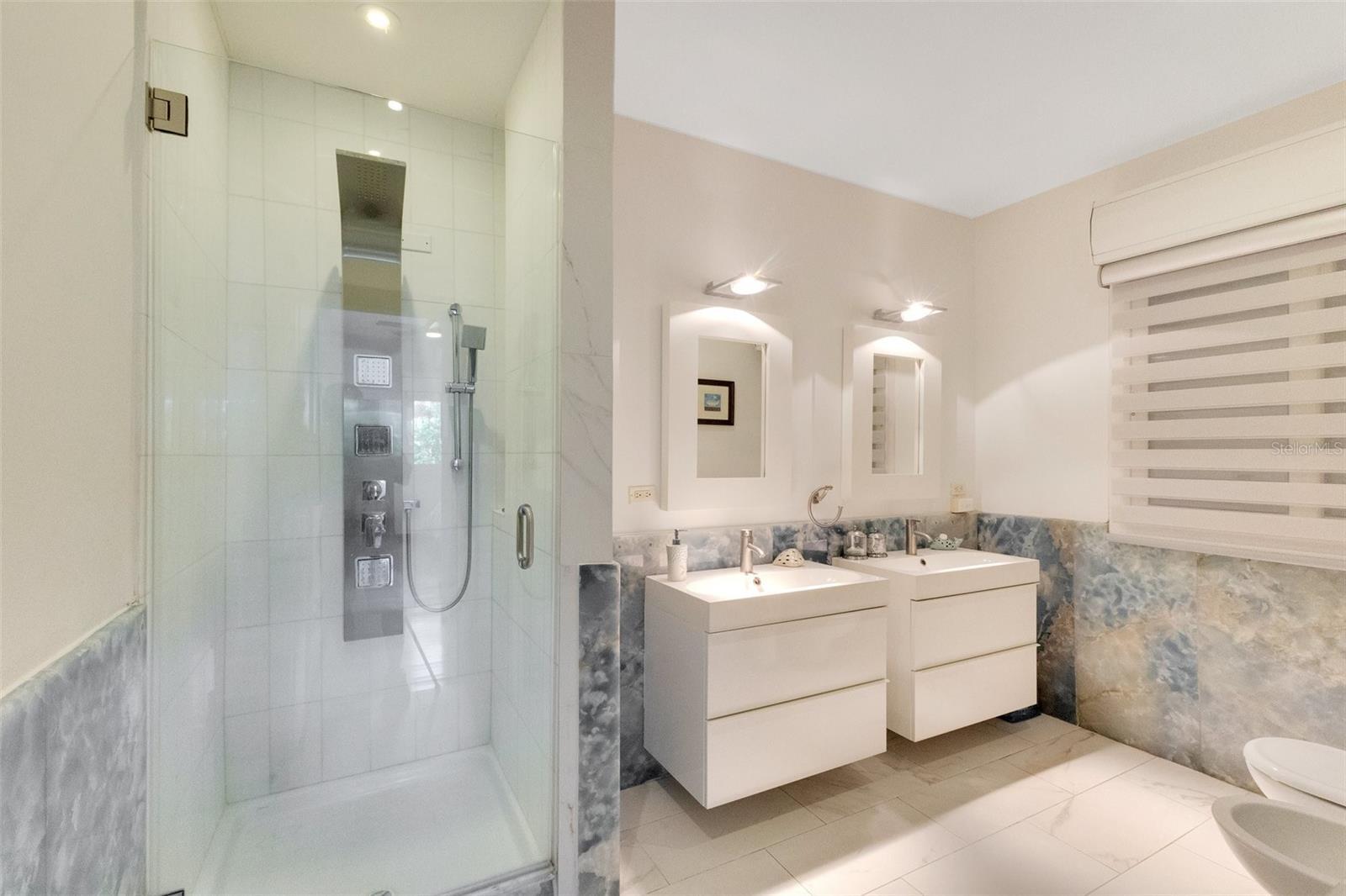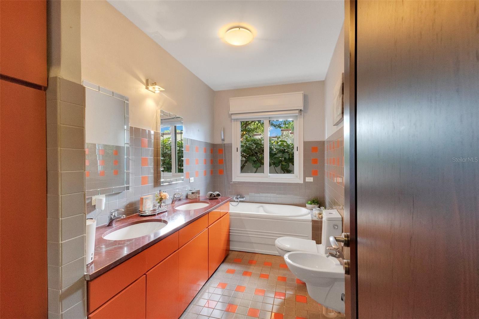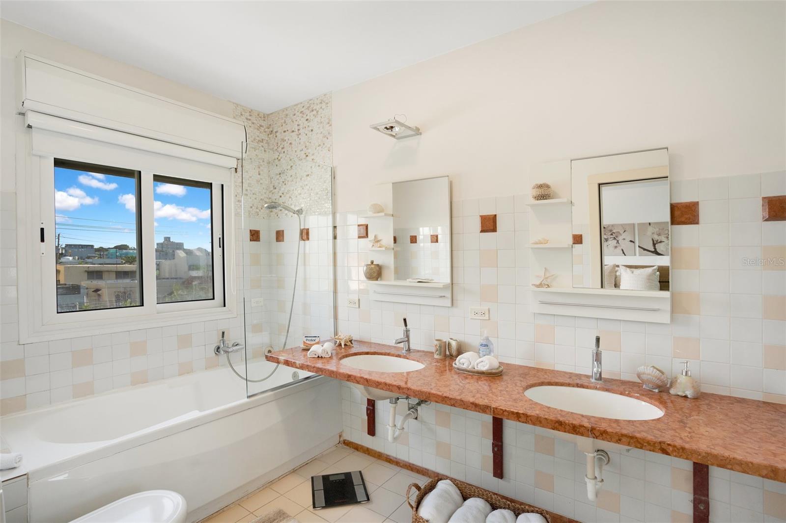 Experience luxury living just steps away from the most stunning beach in San Juan. This exceptional Ocean Park Beach House with 5-bedroom, 4.5-bathroom residence is nestled in the coveted Ocean Park neighborhood, only 100 meters from the pristine shores and a short walk to the vibrant Condado District and trendy Loiza Street, offering a variety of restaurants, boutiques, and top-notch amenities like private schools and hospitals. Designed by a renowned Italian architect, this modern two-level home boasts 3,300 square feet of living space, ideal for a large family or two families. The first level features two spacious bedrooms, two full bathrooms, a powder room, an open-concept living-dining area, family room, and a sleek kitchen, complete with a laundry room for convenience. The second level offers three additional bedrooms, two full bathrooms, a second living-dining area, kitchen, laundry room, and an expansive terrace perfect for relaxing or entertaining.